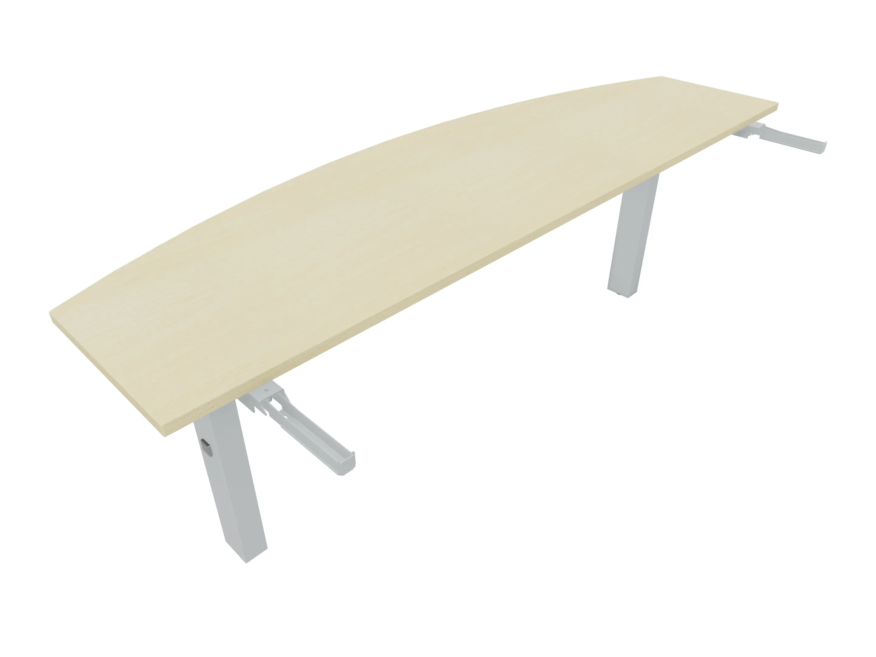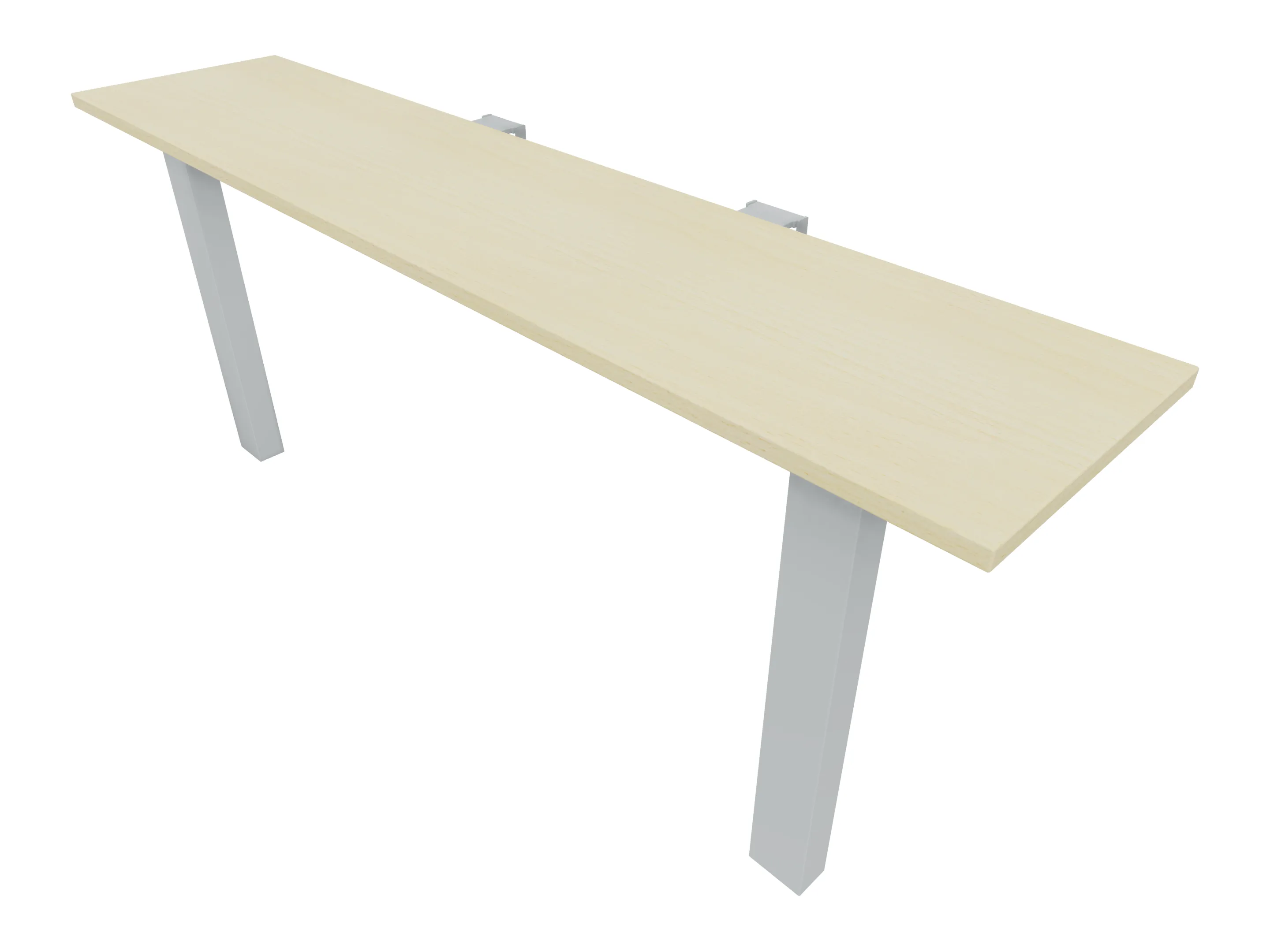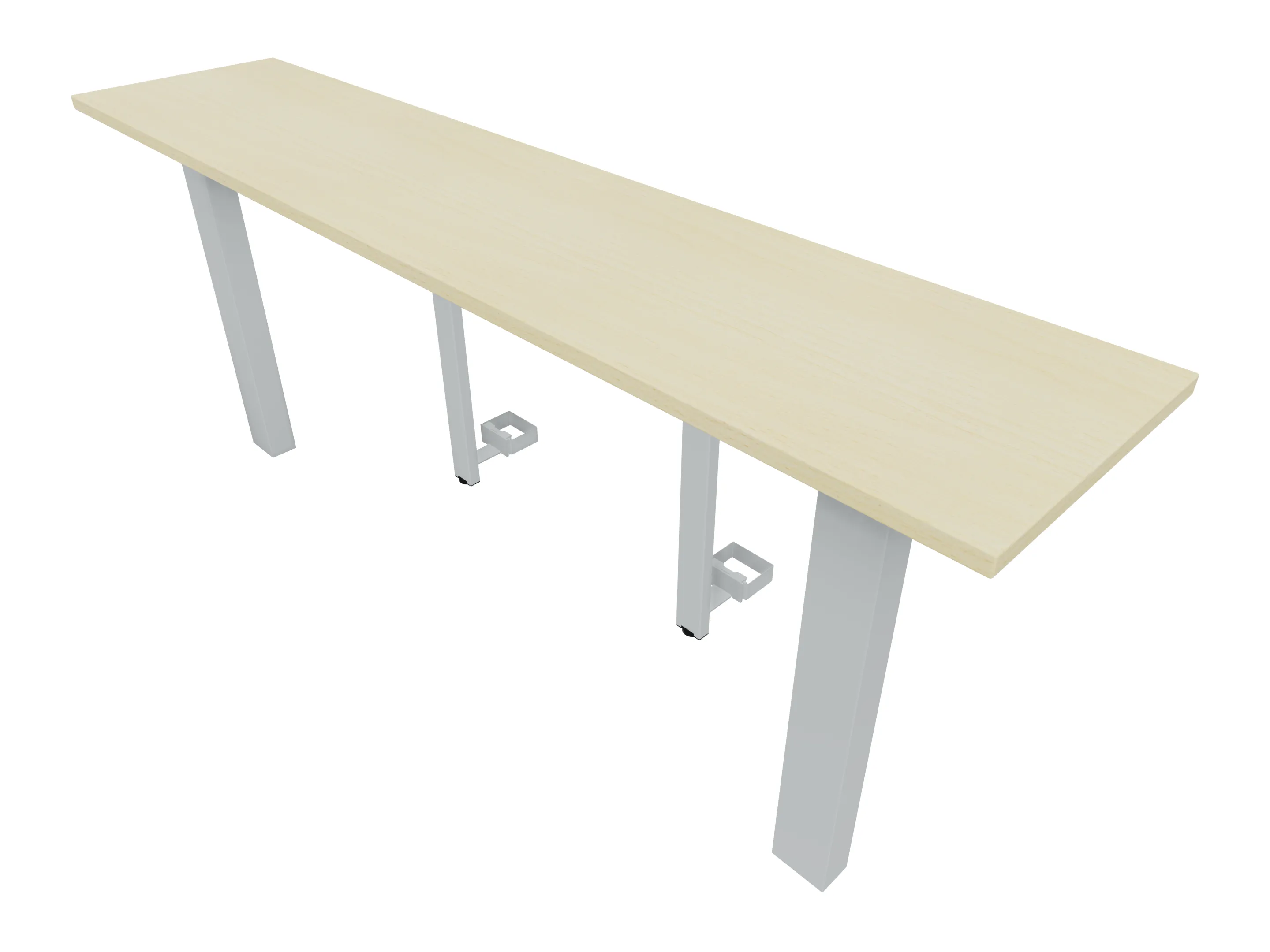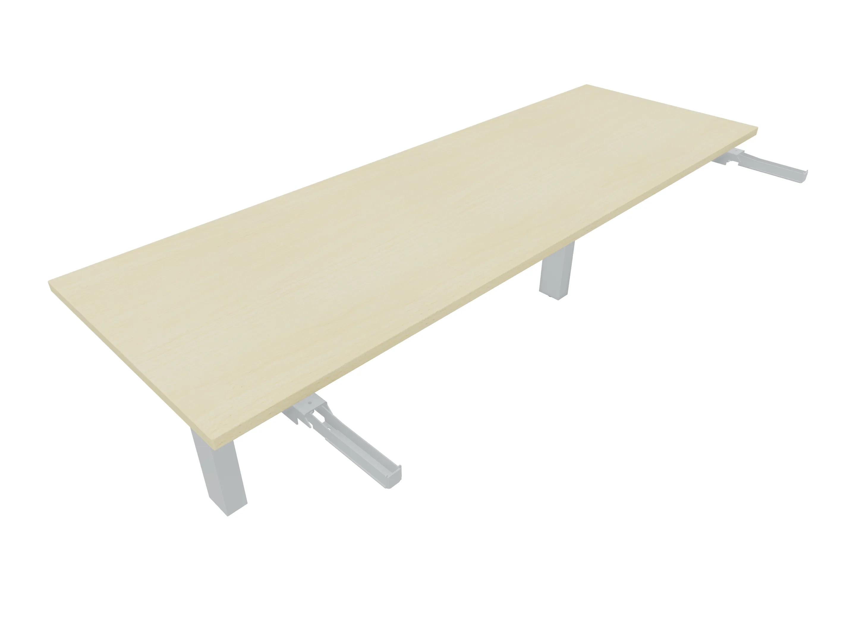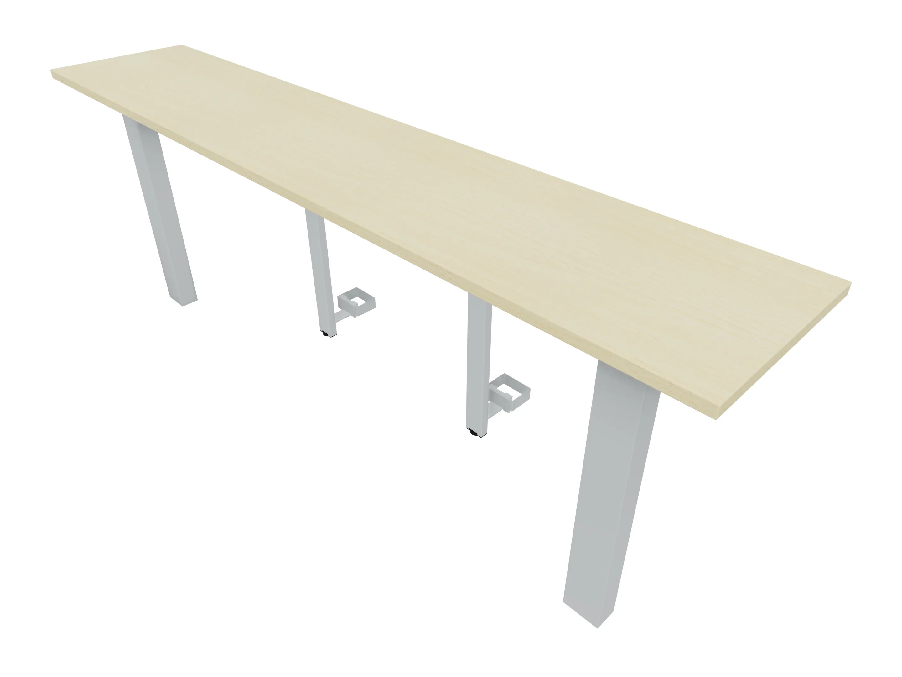Aanbouwelement voor plaatsing aan zit-sta bureaus, van 2025mm breed en 400mm diep, voor koppeling aan poten. Inclusief twee koppel-steunpoten zonder hoogte verstelling.