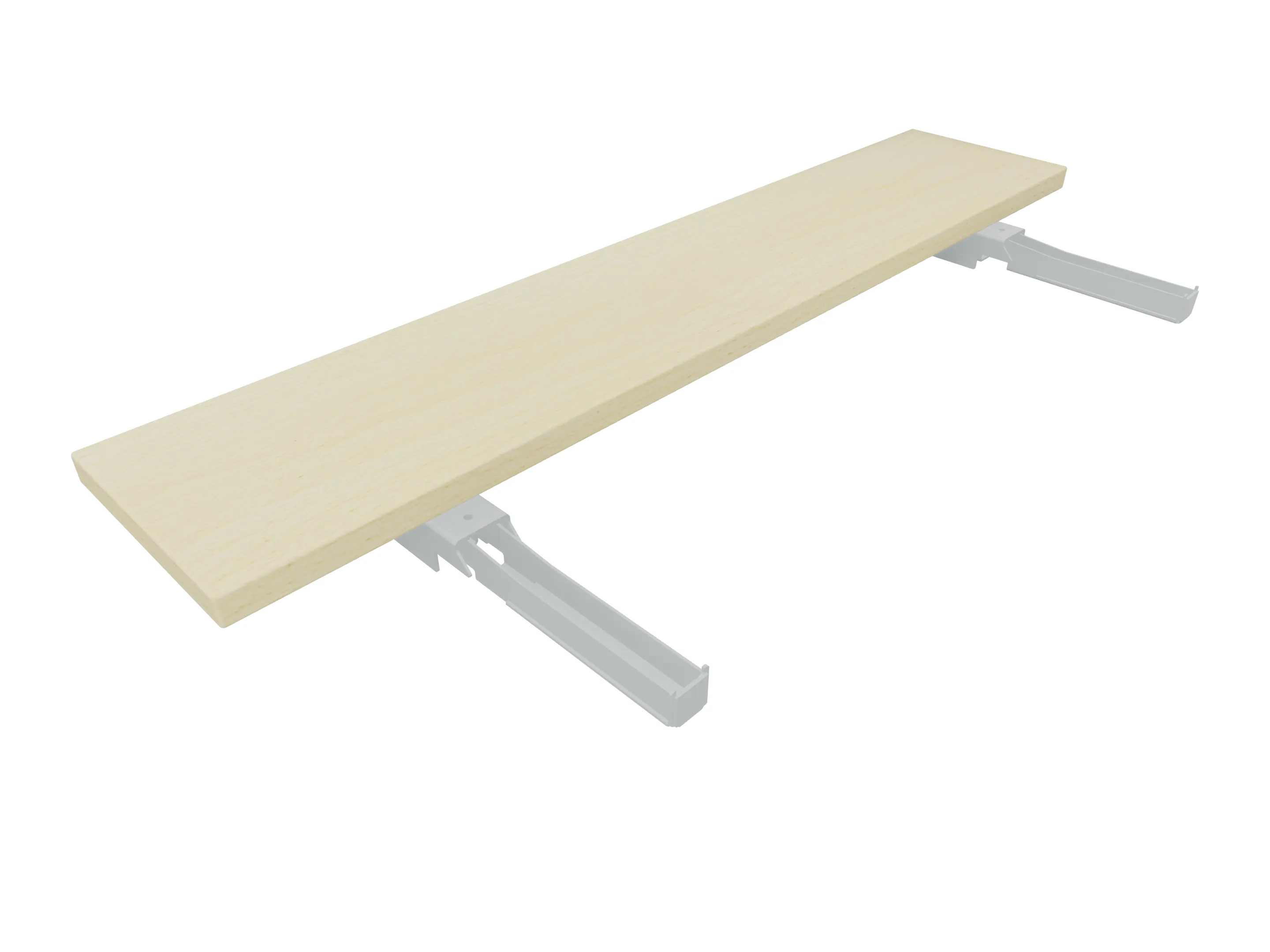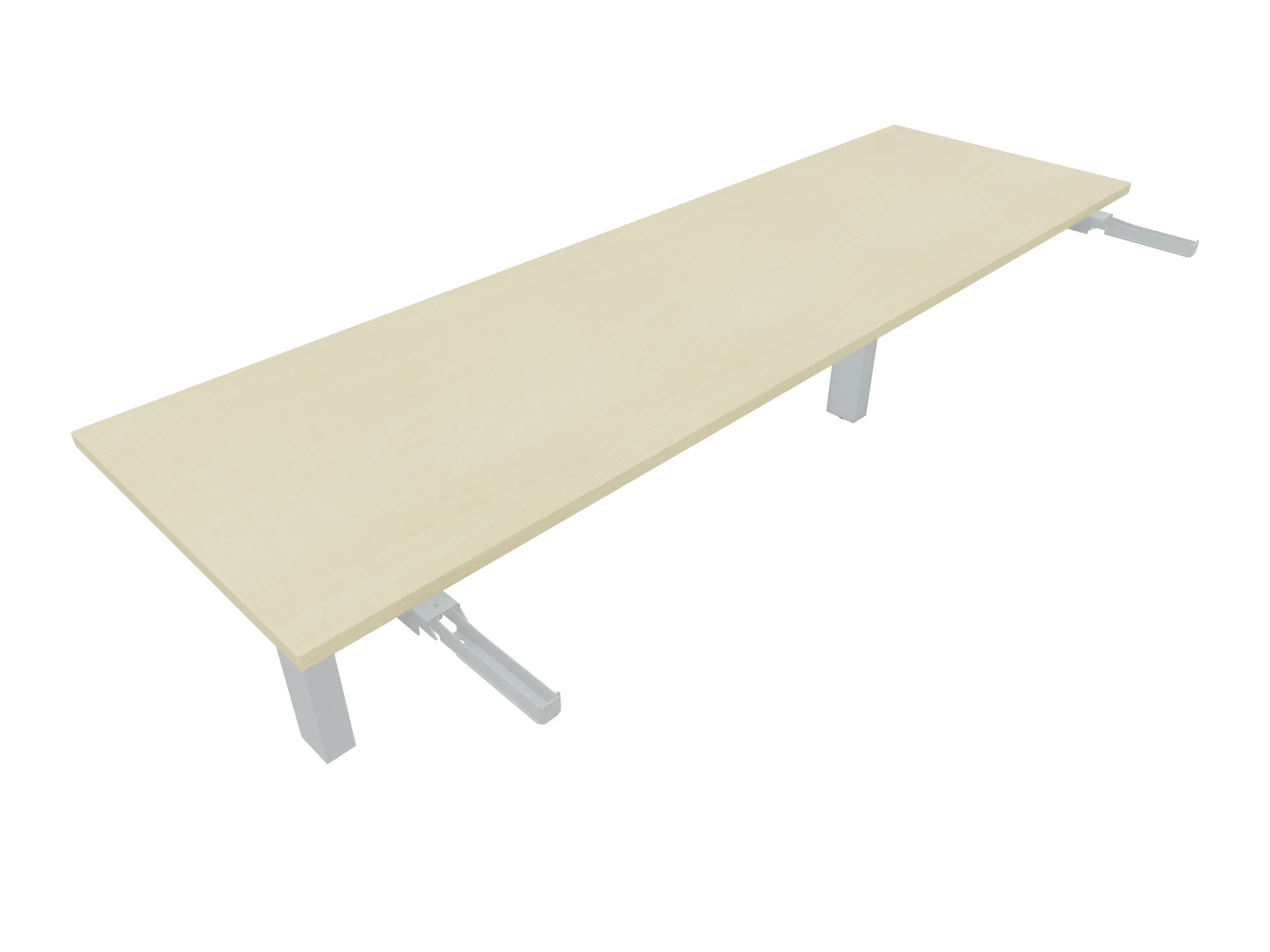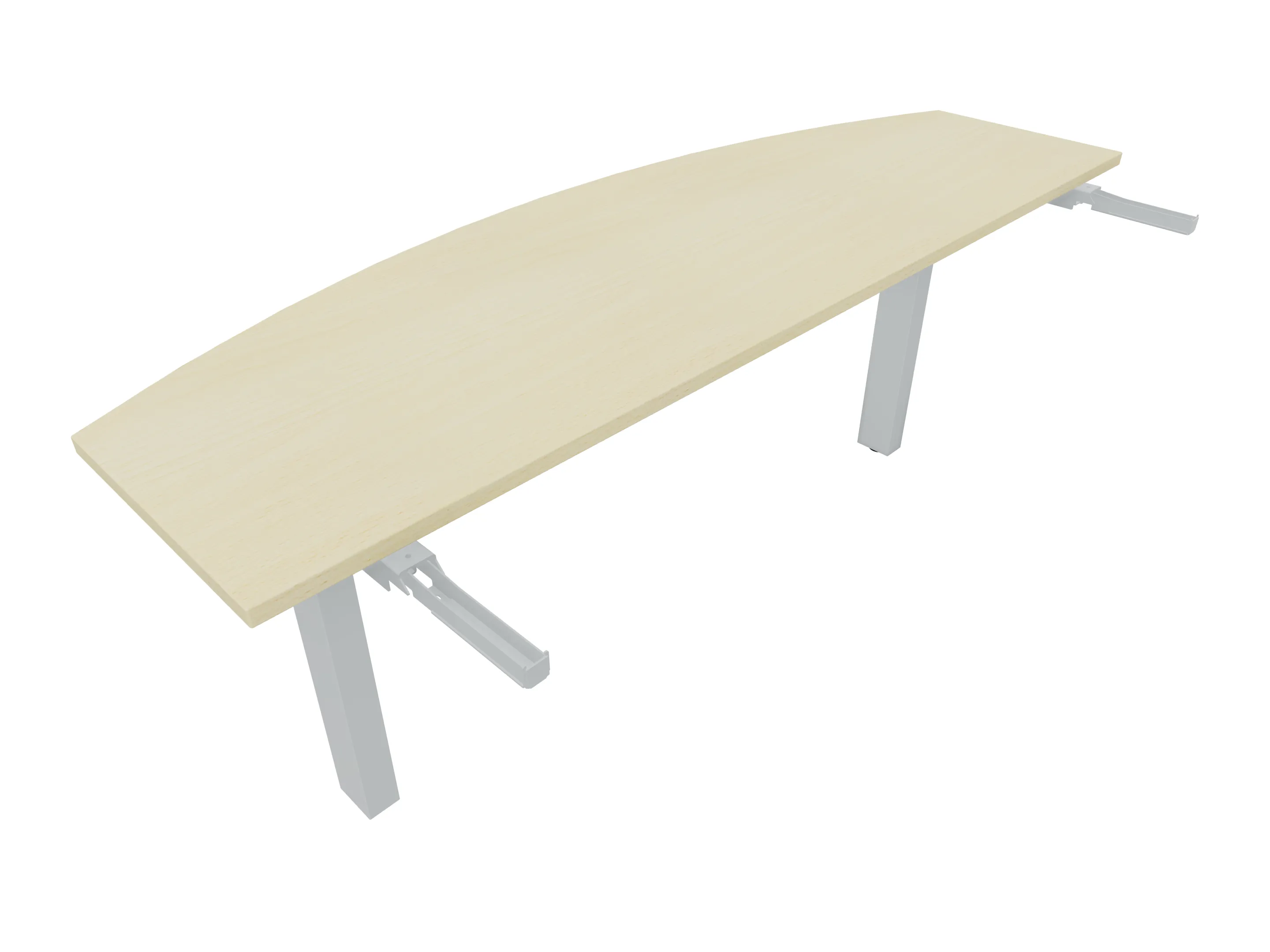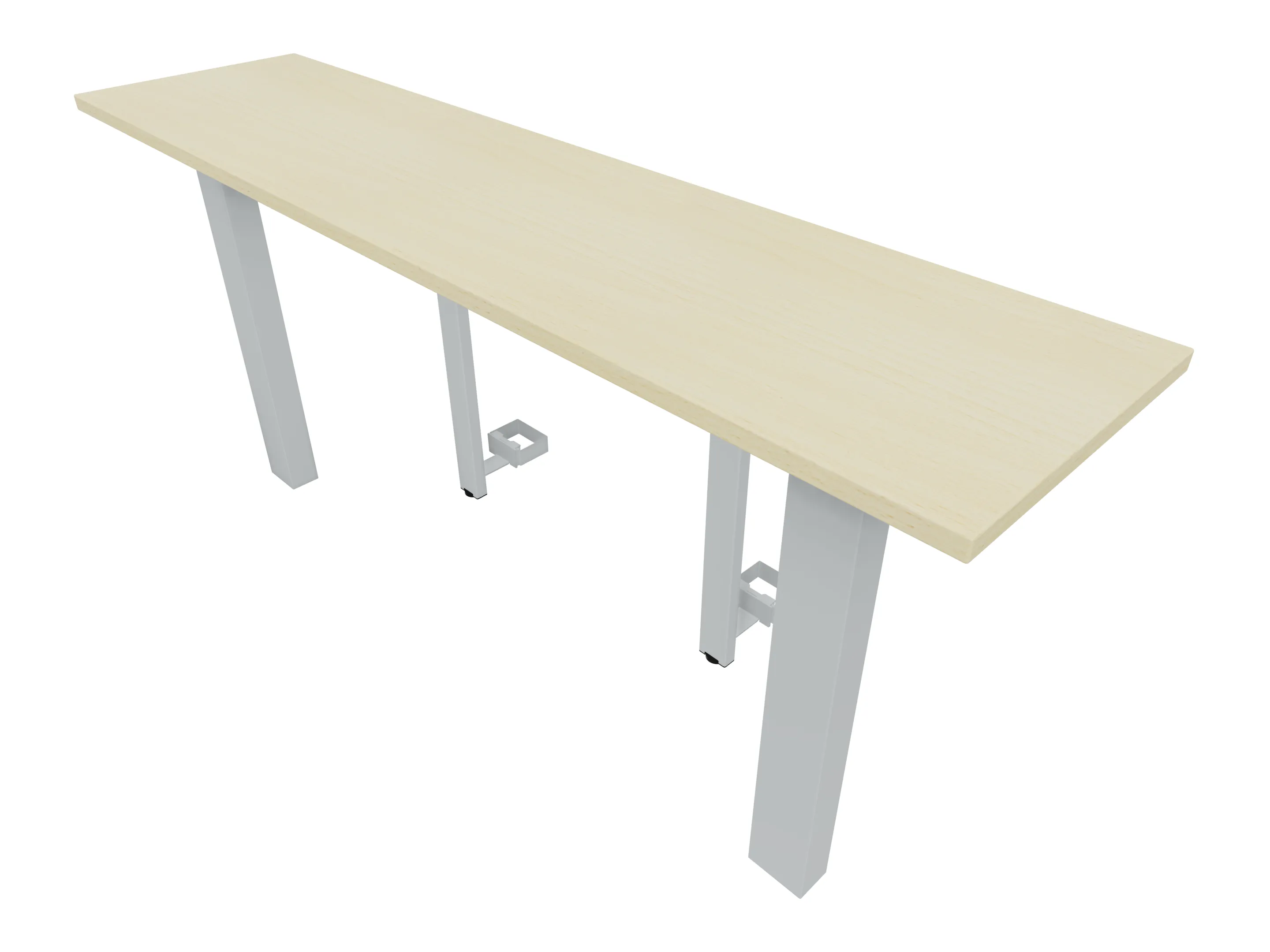 Aanbouwelement voor plaatsing aan zit-sta bureaus, van 2025mm breed en 400mm diep, voor koppeling aan poten. Inclusief twee koppel-steunpoten zonder hoogte verstelling.