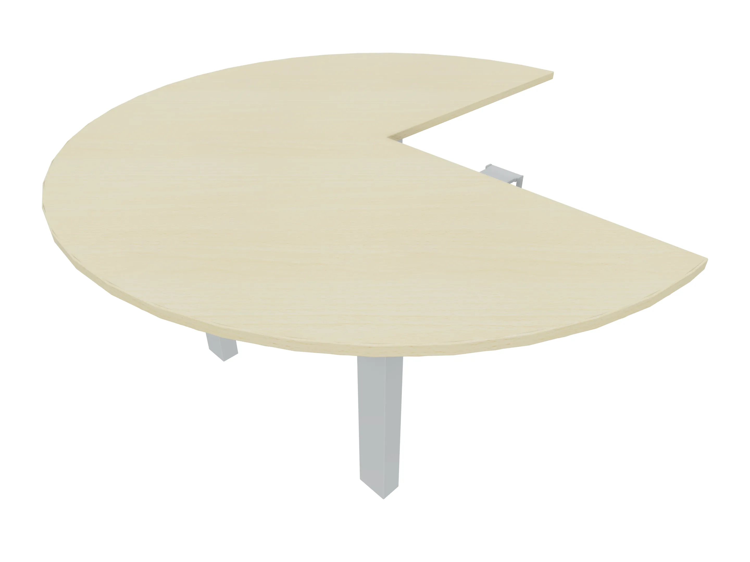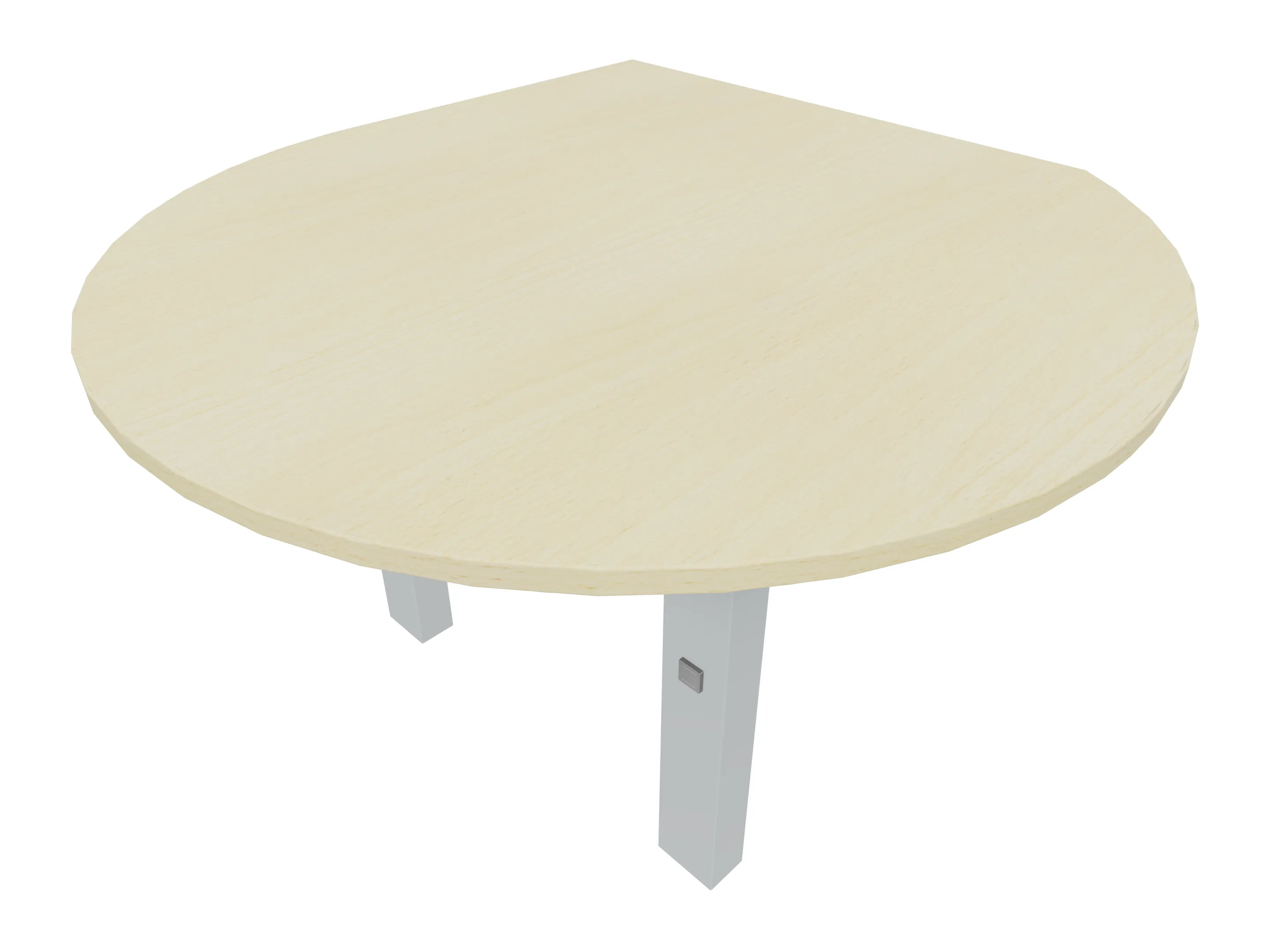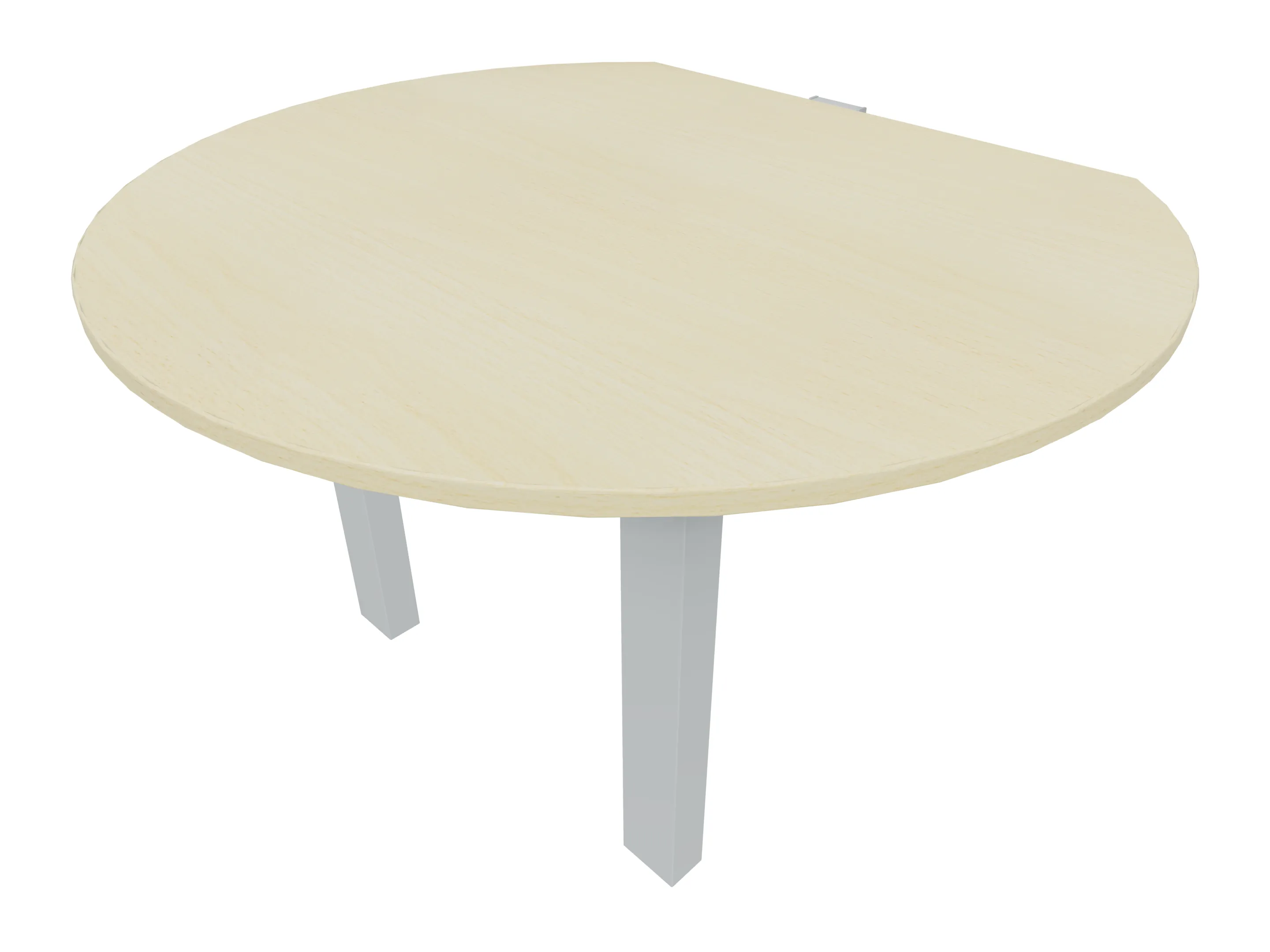 Rond aanbouwelement voor plaatsing aan zit-sta bureaus, rechts symetrisch gekoppeld. Diameter is 1200mm, koppelzijde is 800mm. Inclusief 2 koppel-steunpoten zonder hoogte verstelling