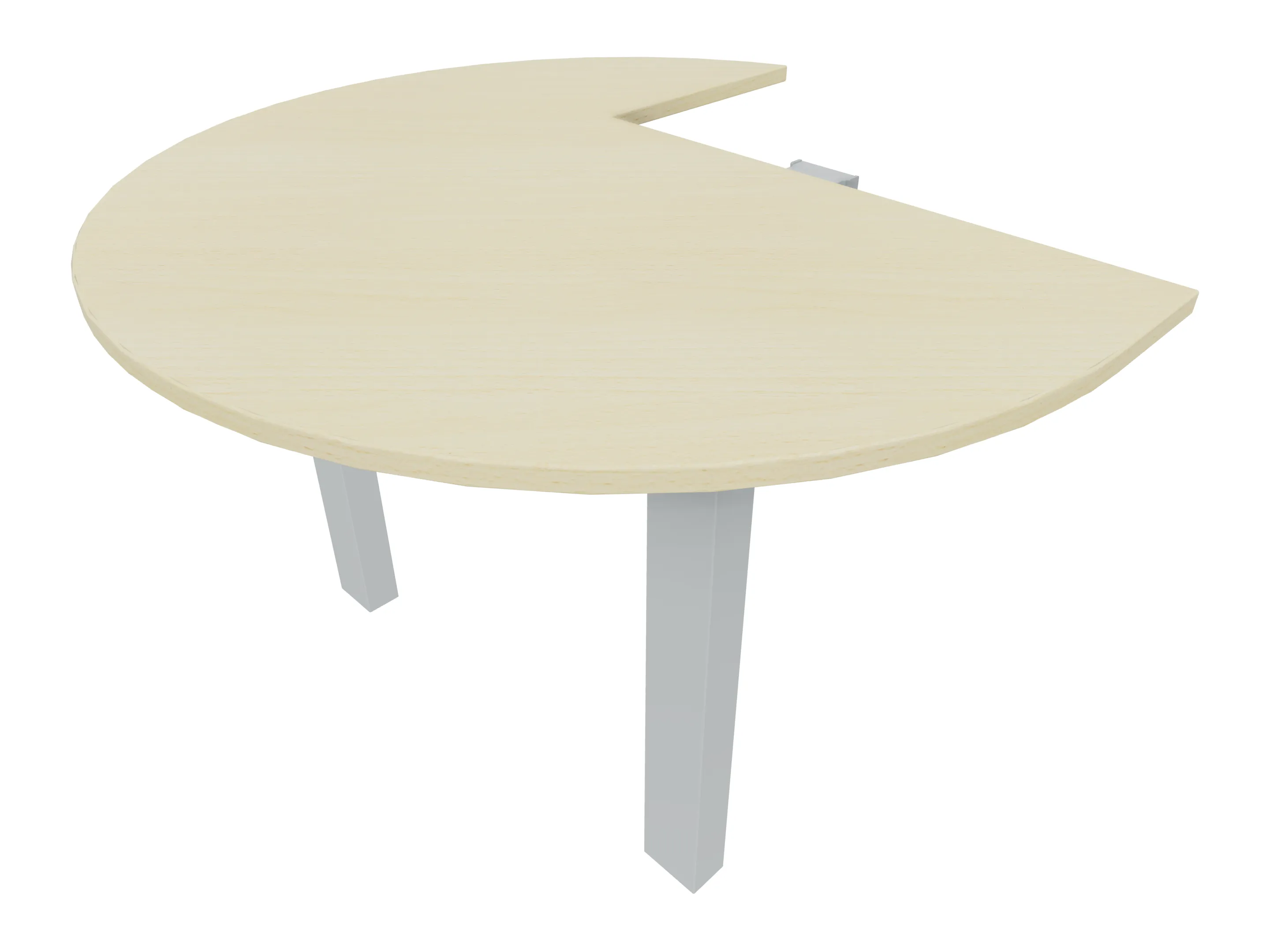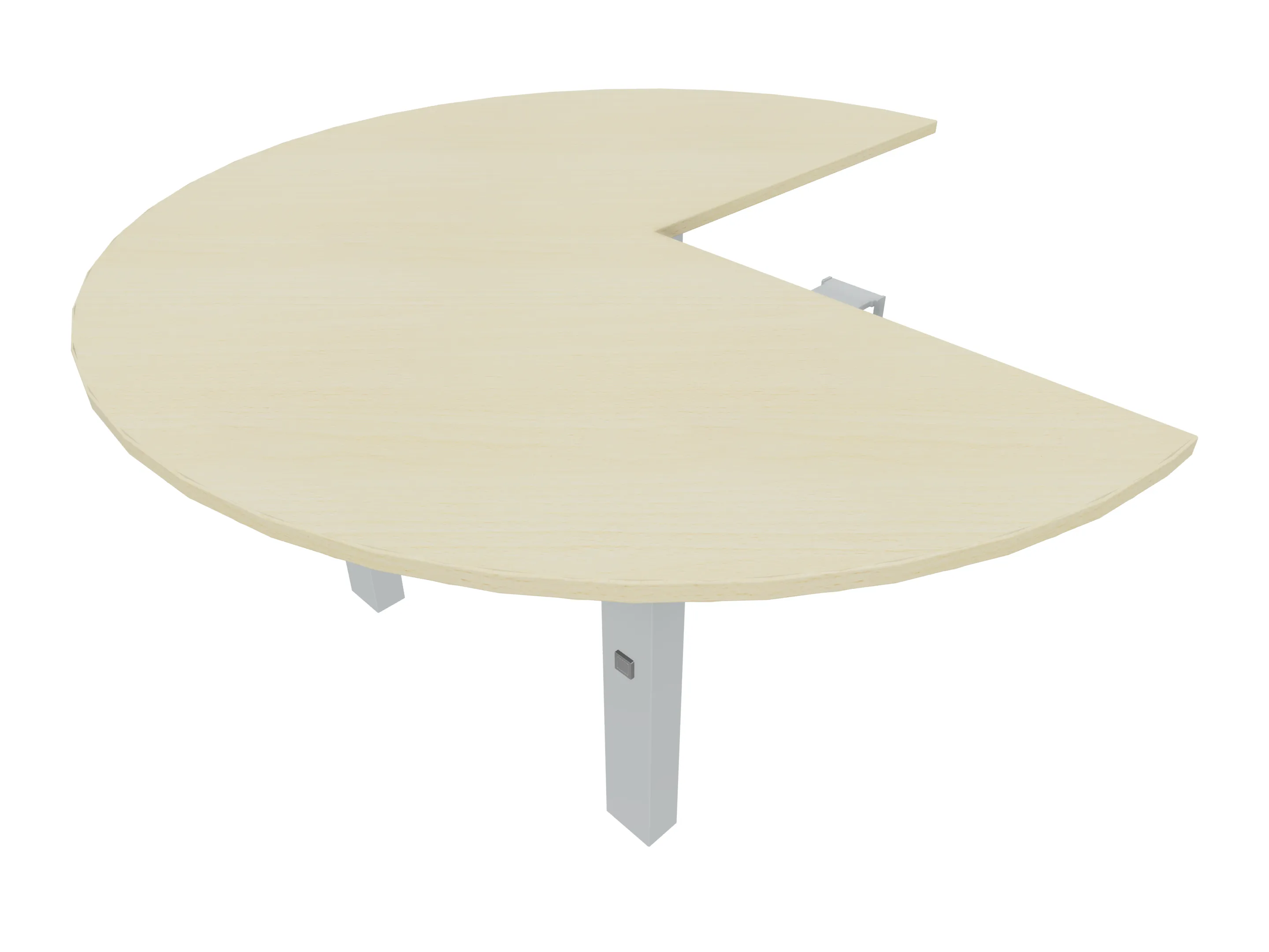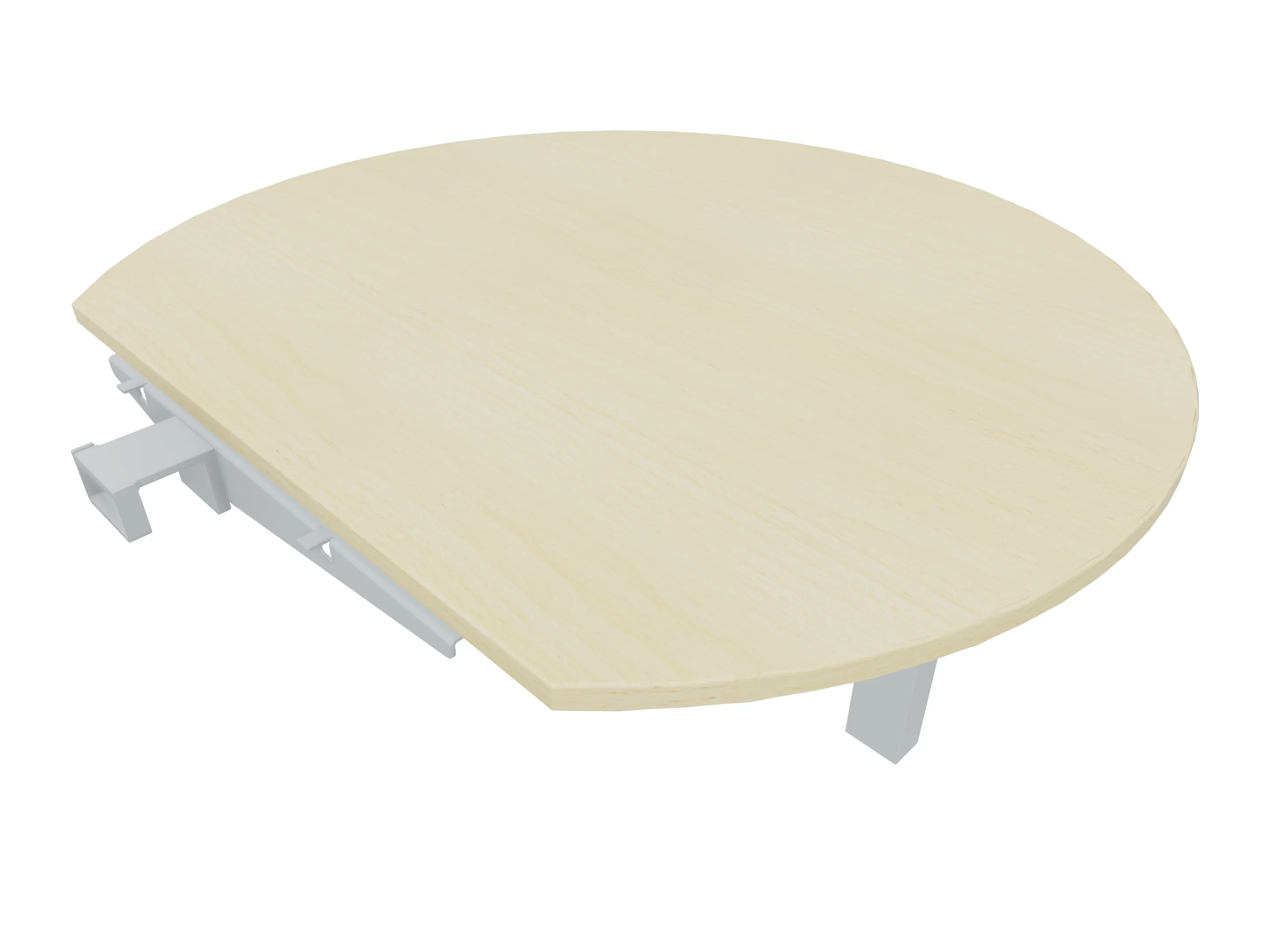 Rond aanbouwelement voor plaatsing aan zit-sta bureaus, rechts asymetrisch gekoppeld. Diameter is 1100mm, koppelzijde is 800mm. Inclusief 2 koppel-steunpoten zonder hoogte verstelling