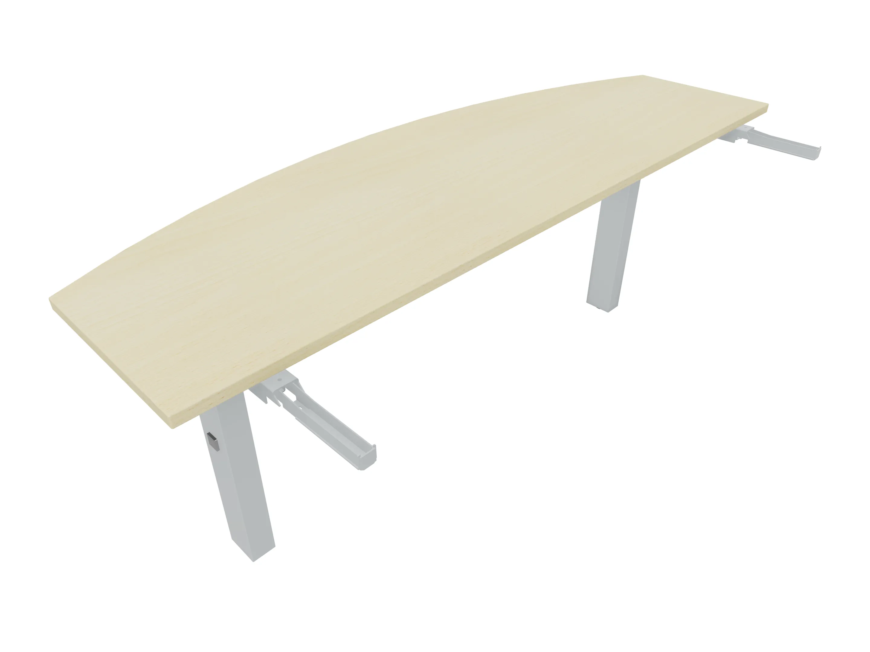 Aanbouwelement voor plaatsing aan zit-sta bureaus, van 2025mm breed en 800mm diep. Blad is voorzien van een gerond blad met rechte zitzijde. Inclusief twee koppel-steunpoten met hoogte verstelling (650-850mm, d.m.v. "Easy-Push").