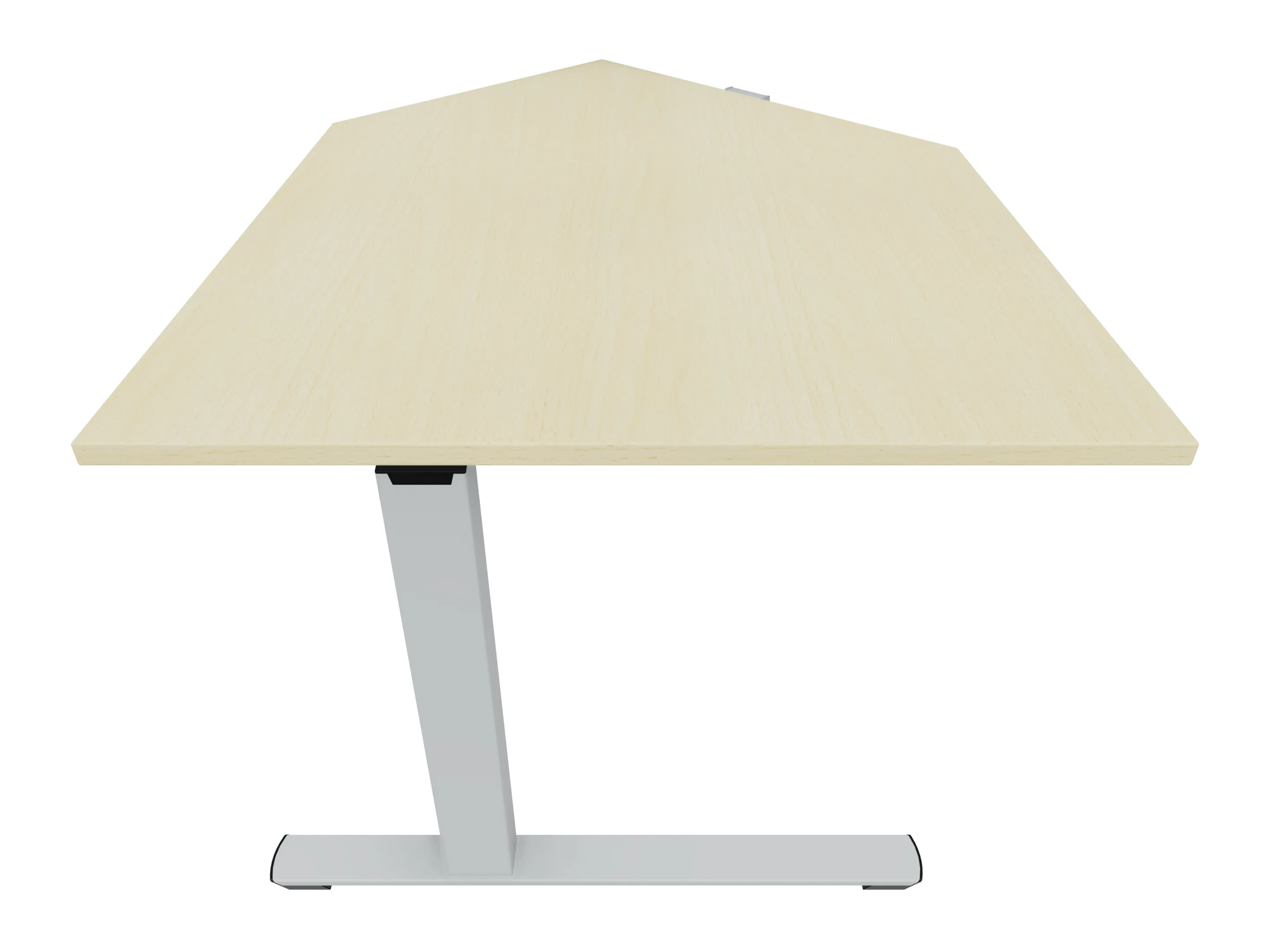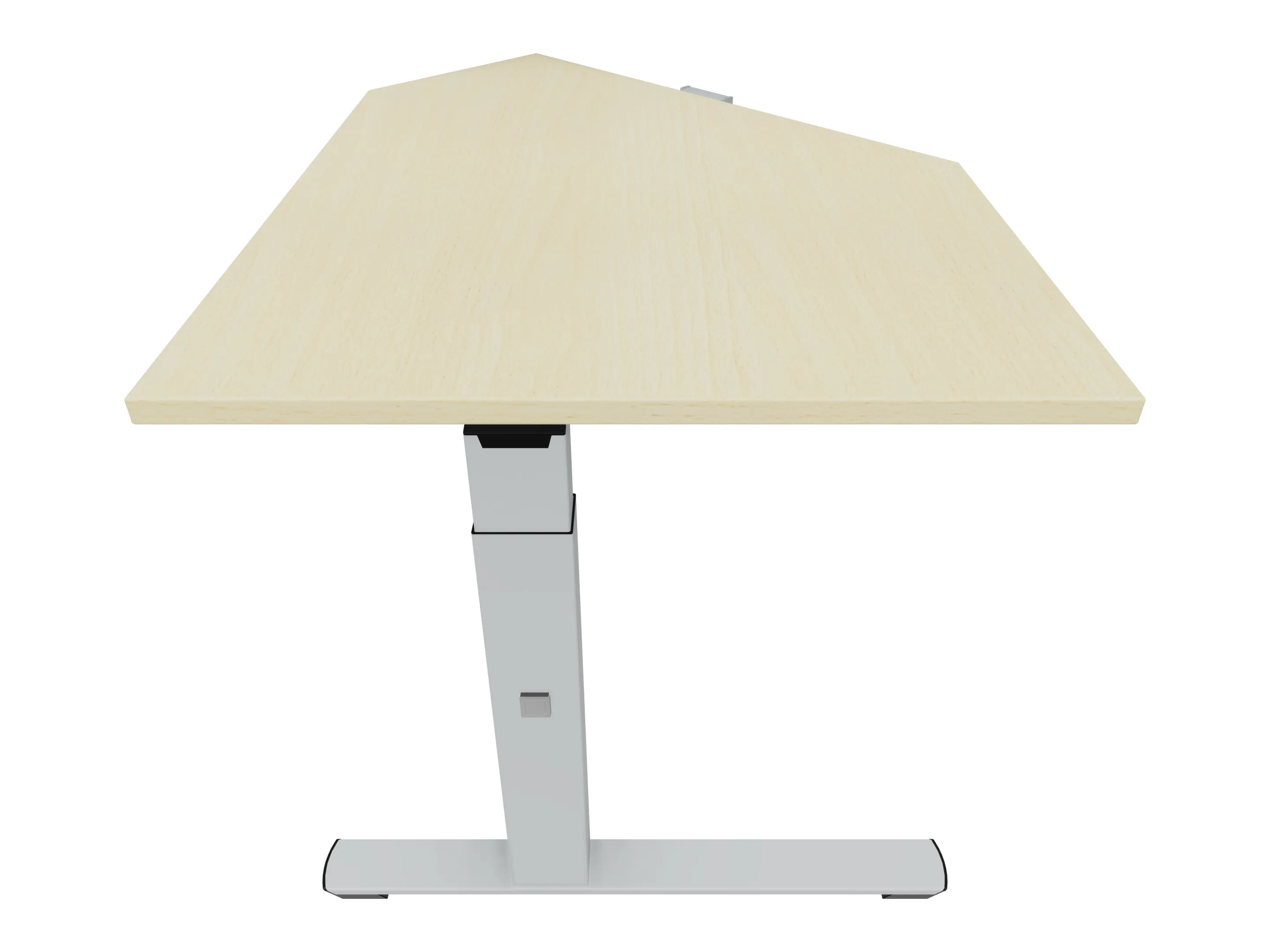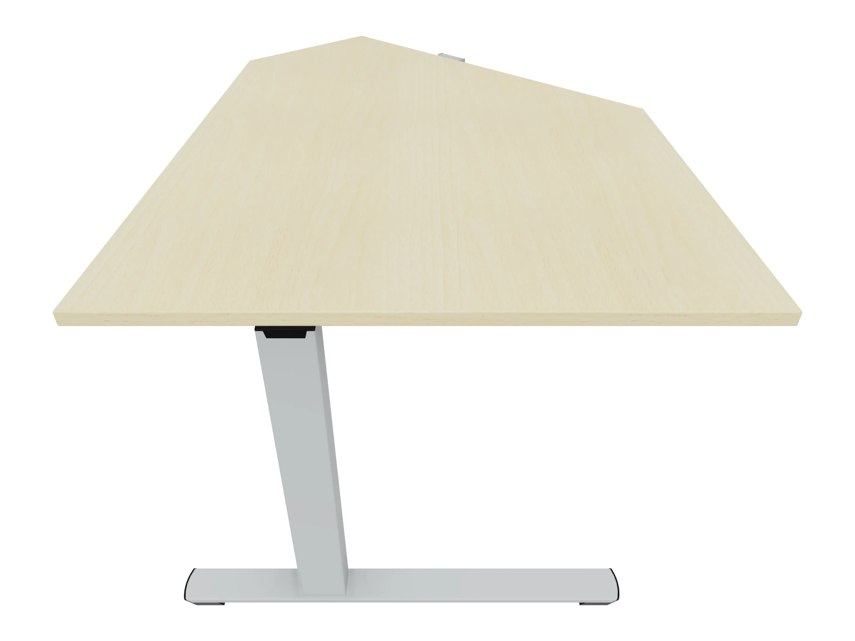 Eindelement in 135° met een aanbouwzijde van 800mm, een zitzijde van 1000, en lengte 961mm. Rechts geplaatst aan het bureau. Inclusief steunpoten zonder hoogte verstelling.