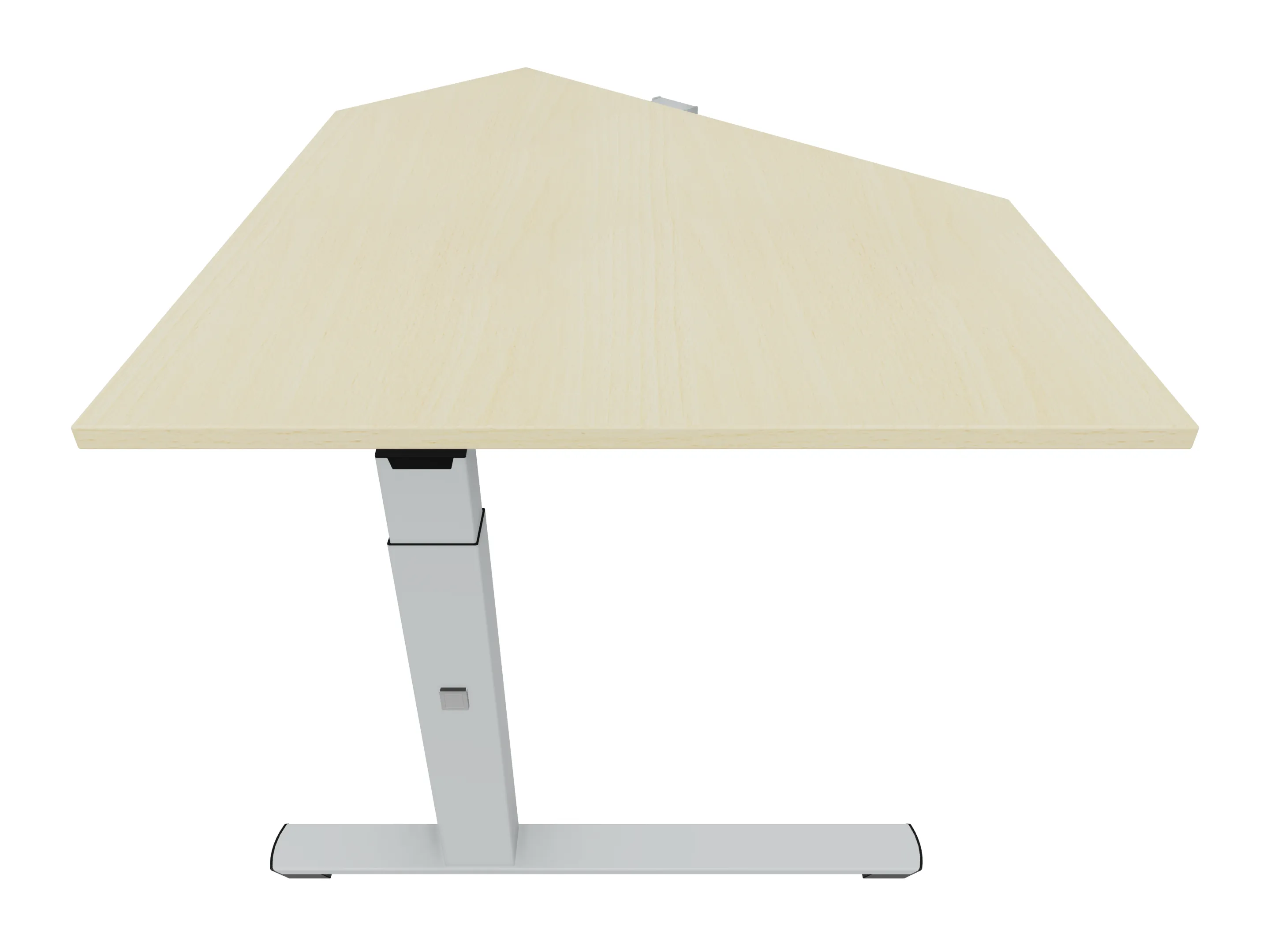 Eindelement in 135° met een aanbouwzijde van 800mm, een zitzijde van 800, en lengte 897mm. Links geplaatst aan het bureau. Inclusief steunpoten zonder hoogte verstelling.