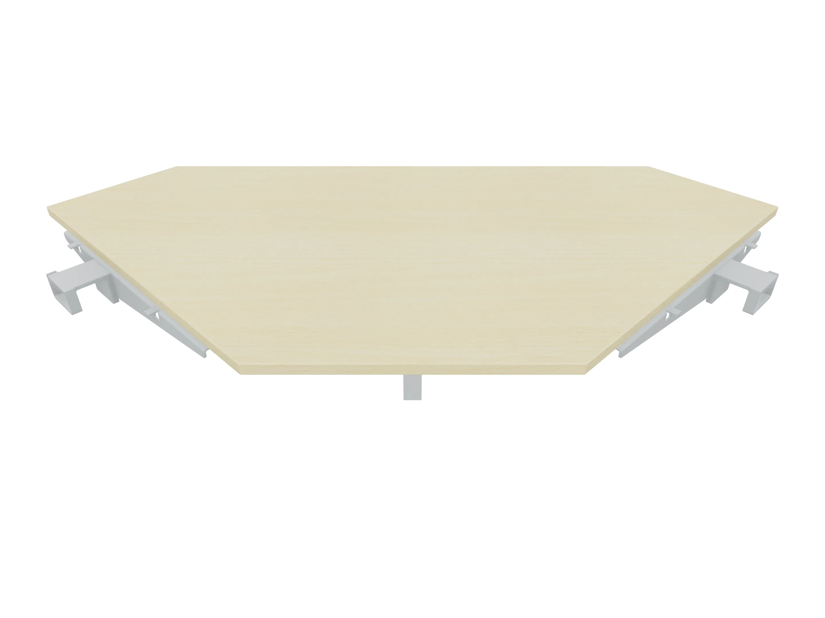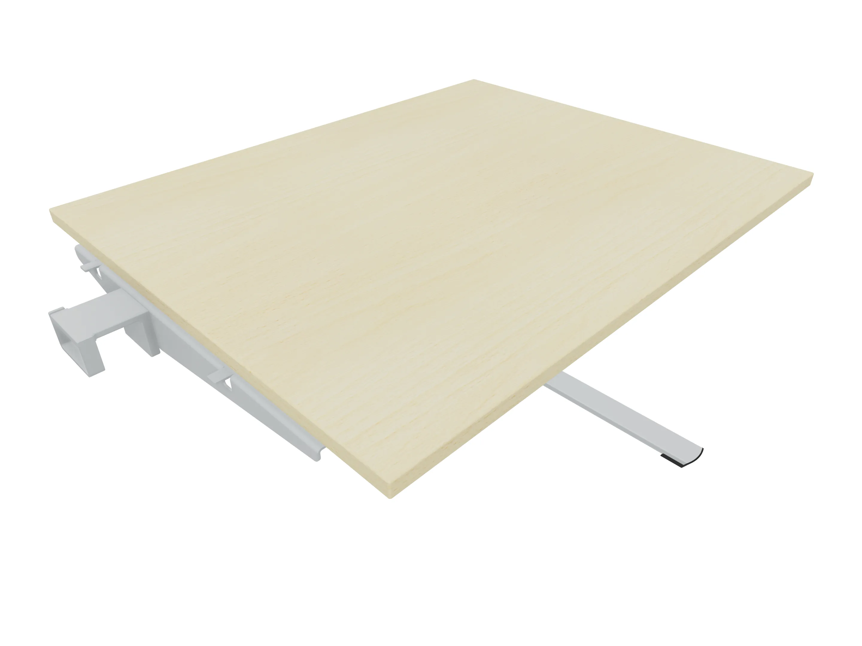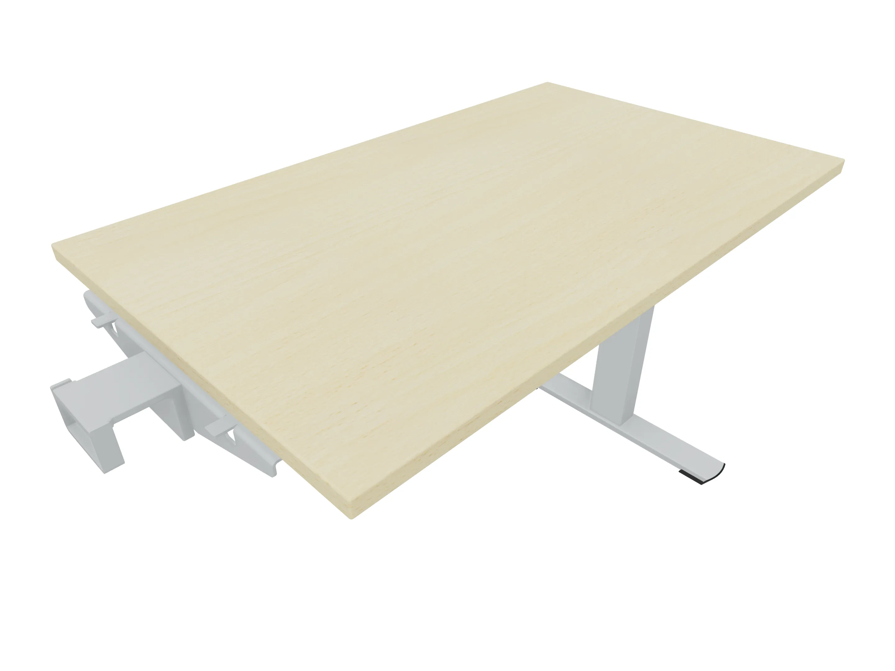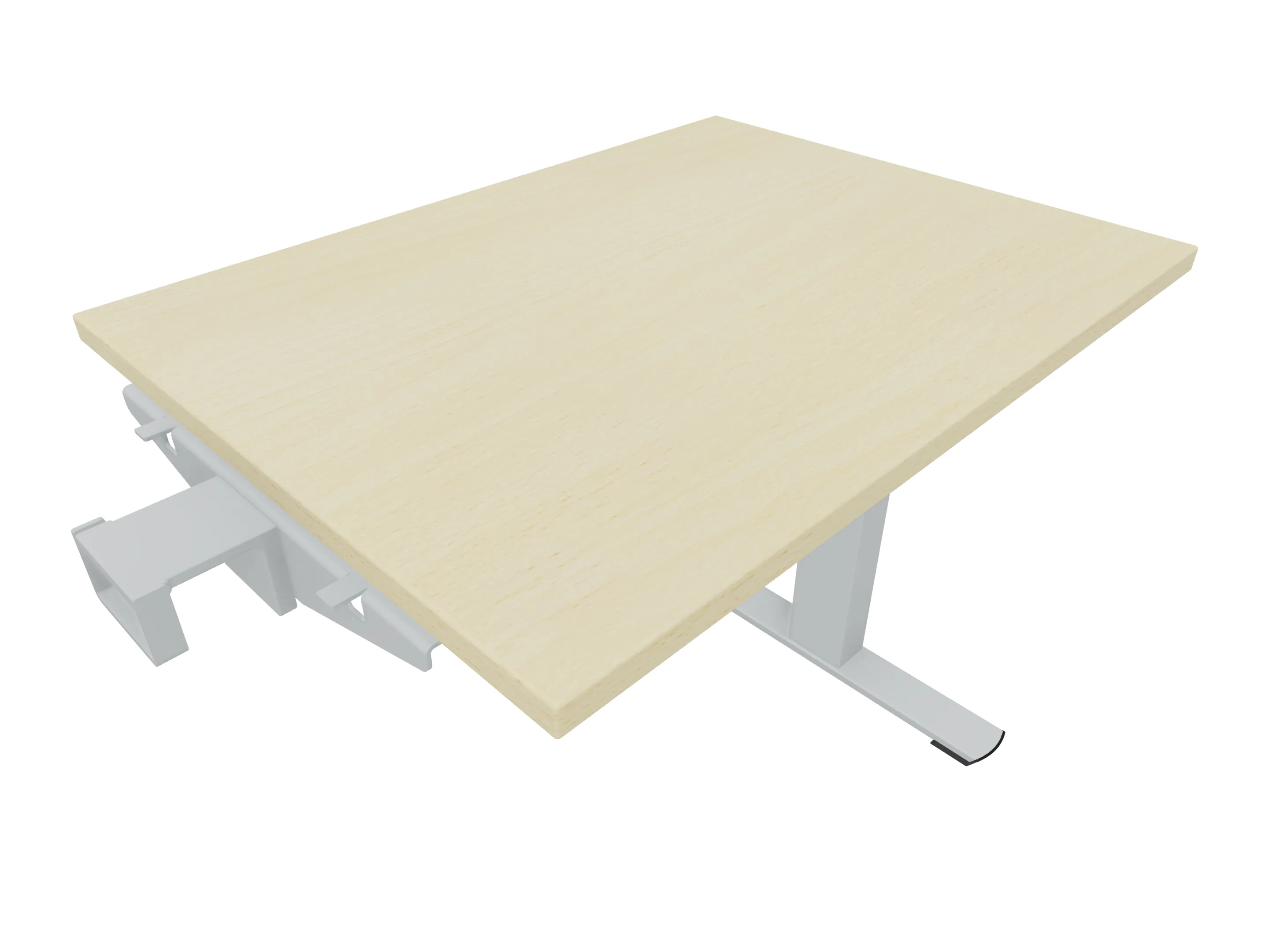 Aanbouwelement voor plaatsing aan zit-sta bureaus, van 1625mm breed en 600mm diep, voor koppeling aan poten. Inclusief twee koppel-steunpoten zonder hoogte verstelling.