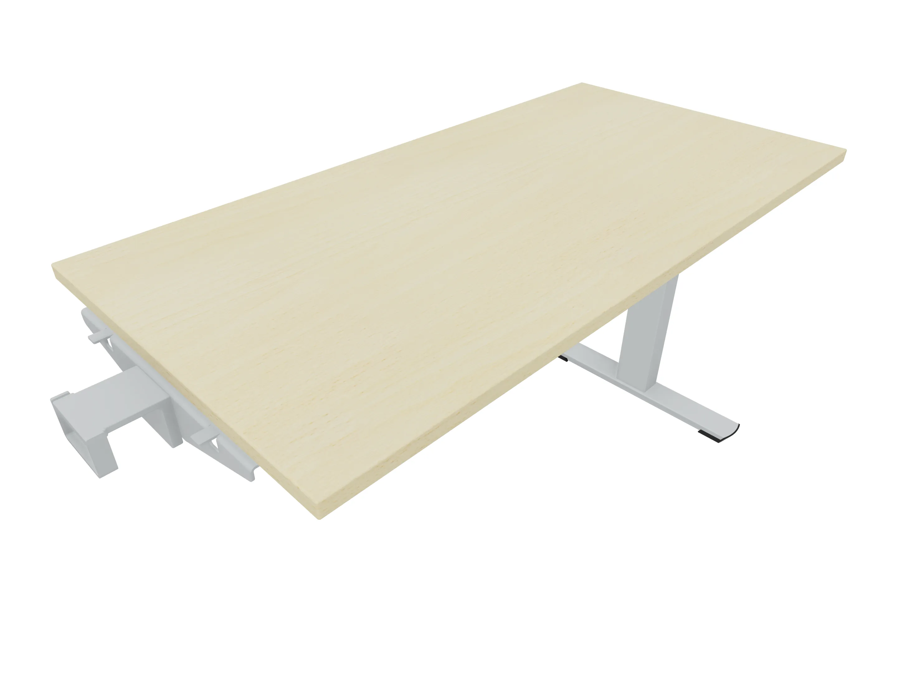 Eindelement om een bureau te verlengen (kan niet haaks geplaatst worden!), links koppeling aan poot, rechts T-poot zonder hoogte verstelling. Afmeting: 1000 x 800mm (BxD)