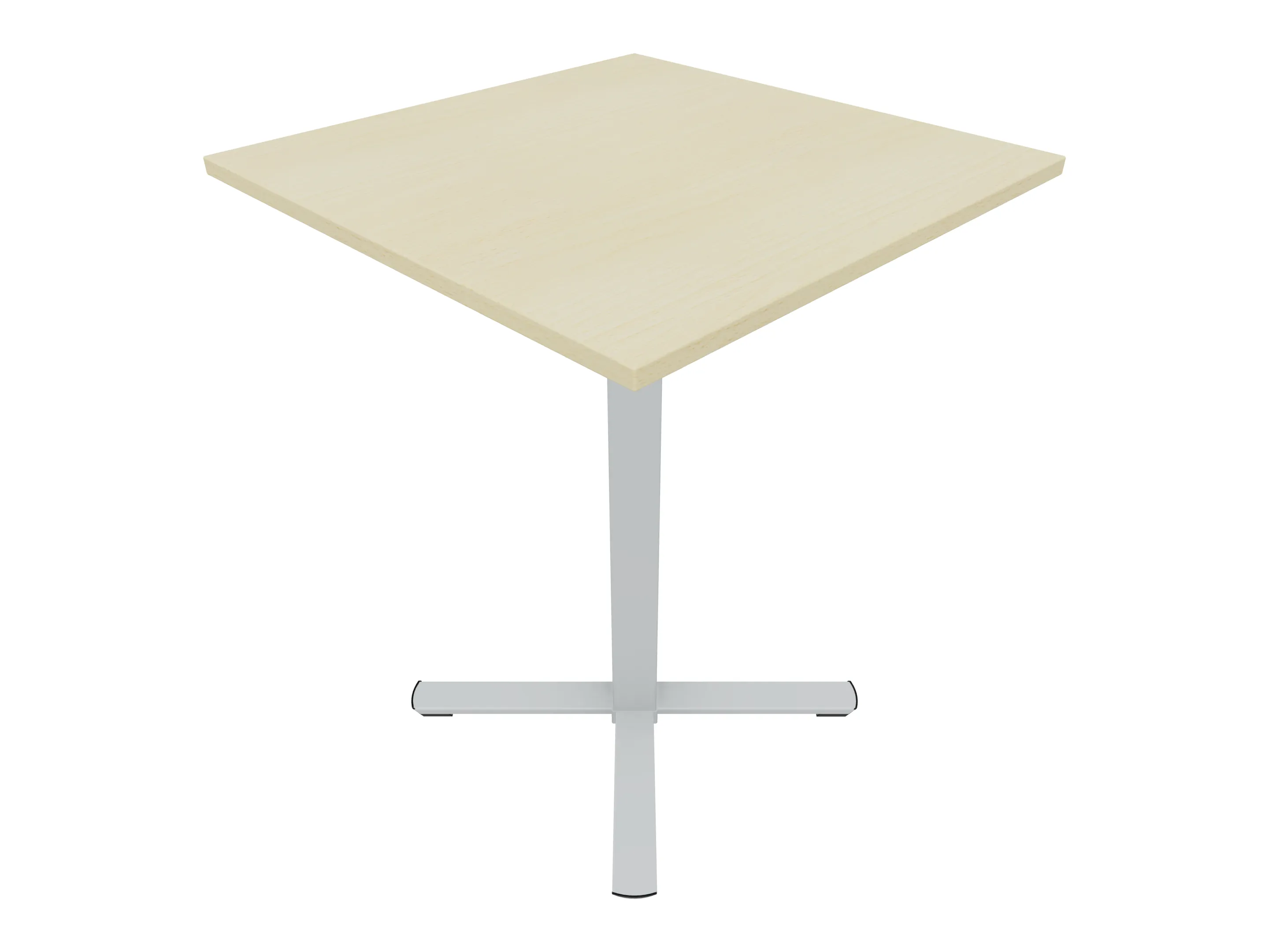 Bijzettafel met een kruisvoet op een kolom van 80 x 80mm, vierkant blad in de afmeting 800 x 800mm en een hoogte van 1050mm.