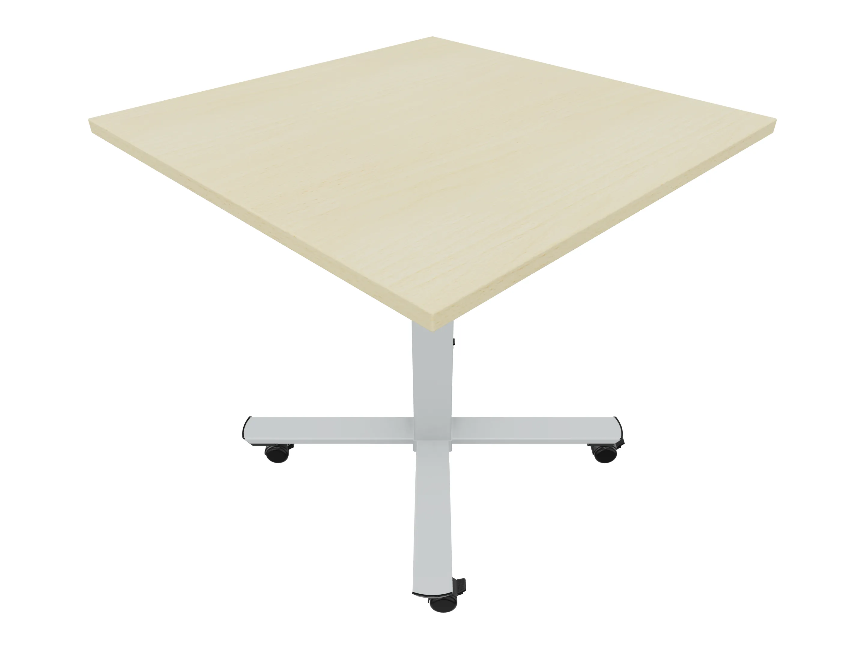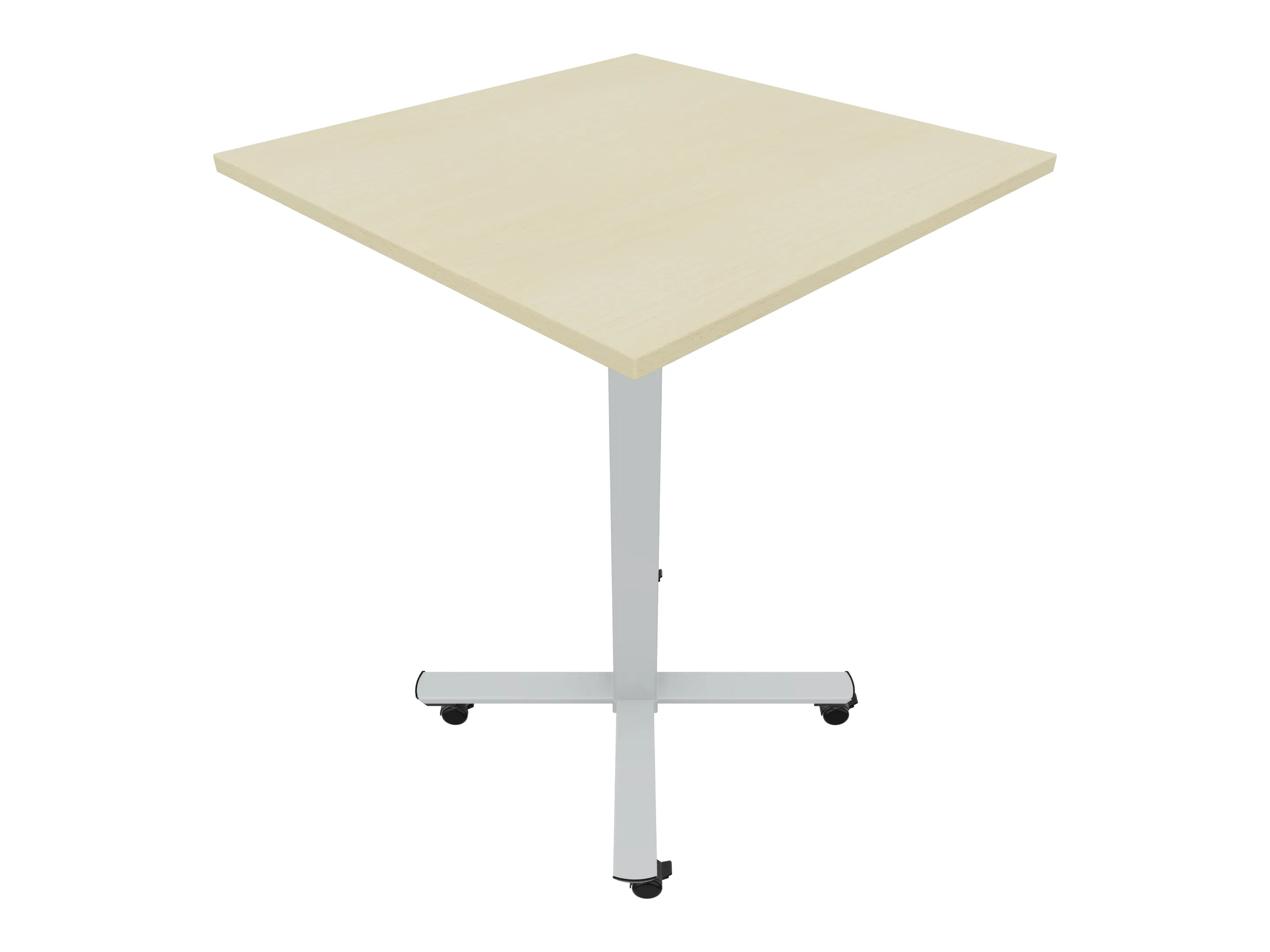 Bijzettafel met een kruisvoet op een kolom van 80 x 80mm, vierkant blad in de afmeting 800 x 800mm en een hoogte van 1050mm, verrijdbaar.