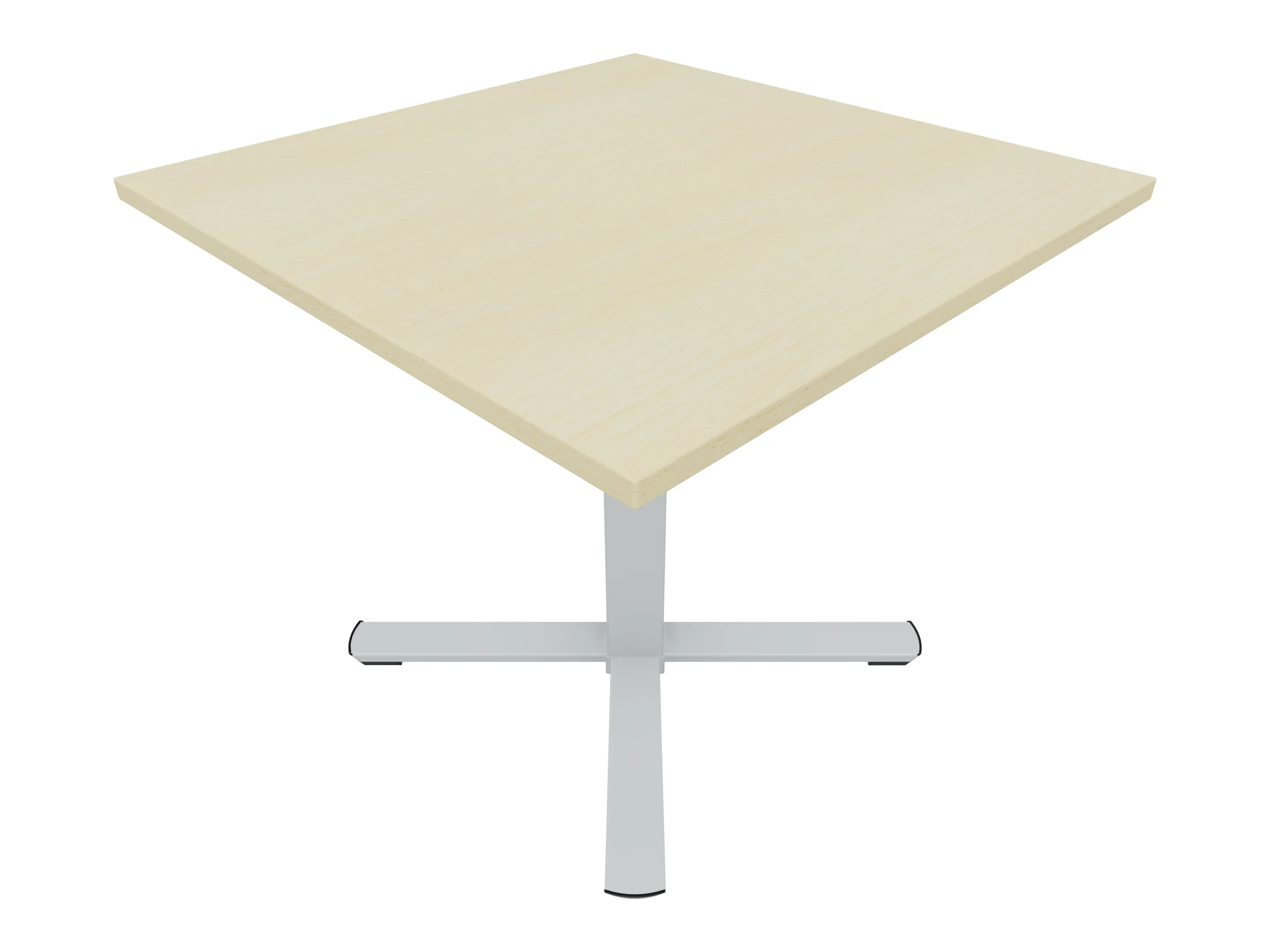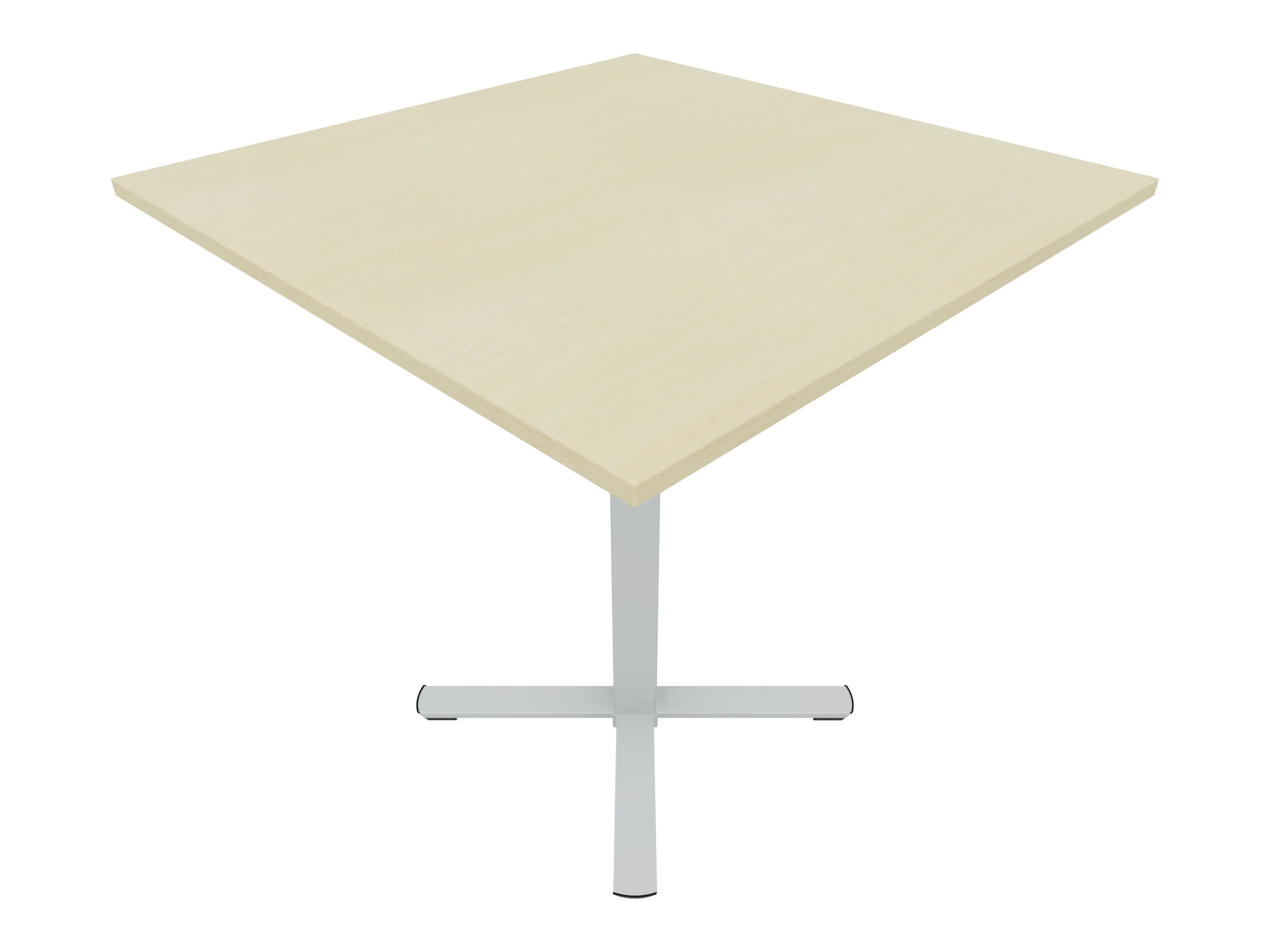 Bijzettafel met een kruisvoet op een kolom van 80 x 80mm, vierkant blad in de afmeting 1000 x 1000mm en een hoogte van 1050mm.