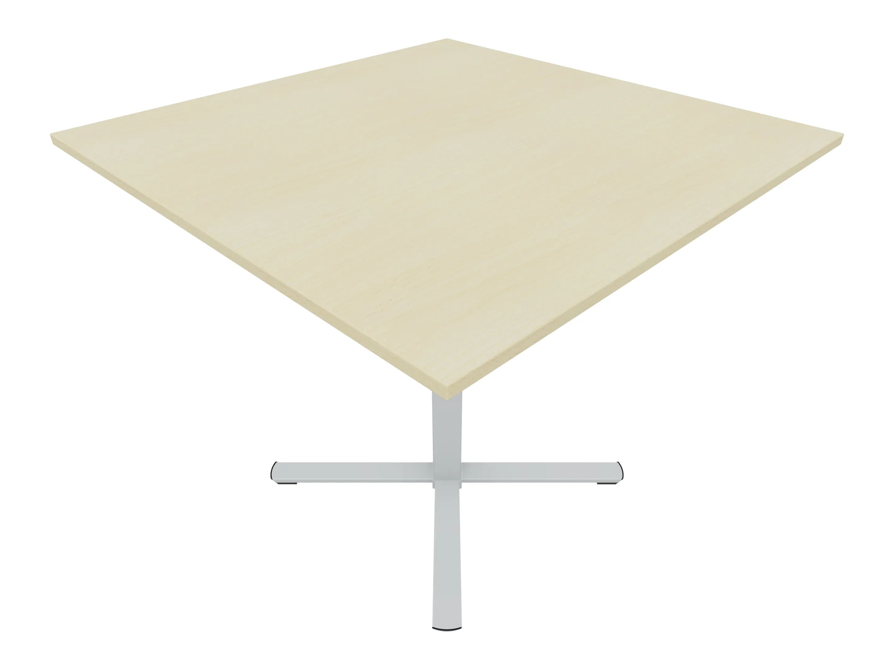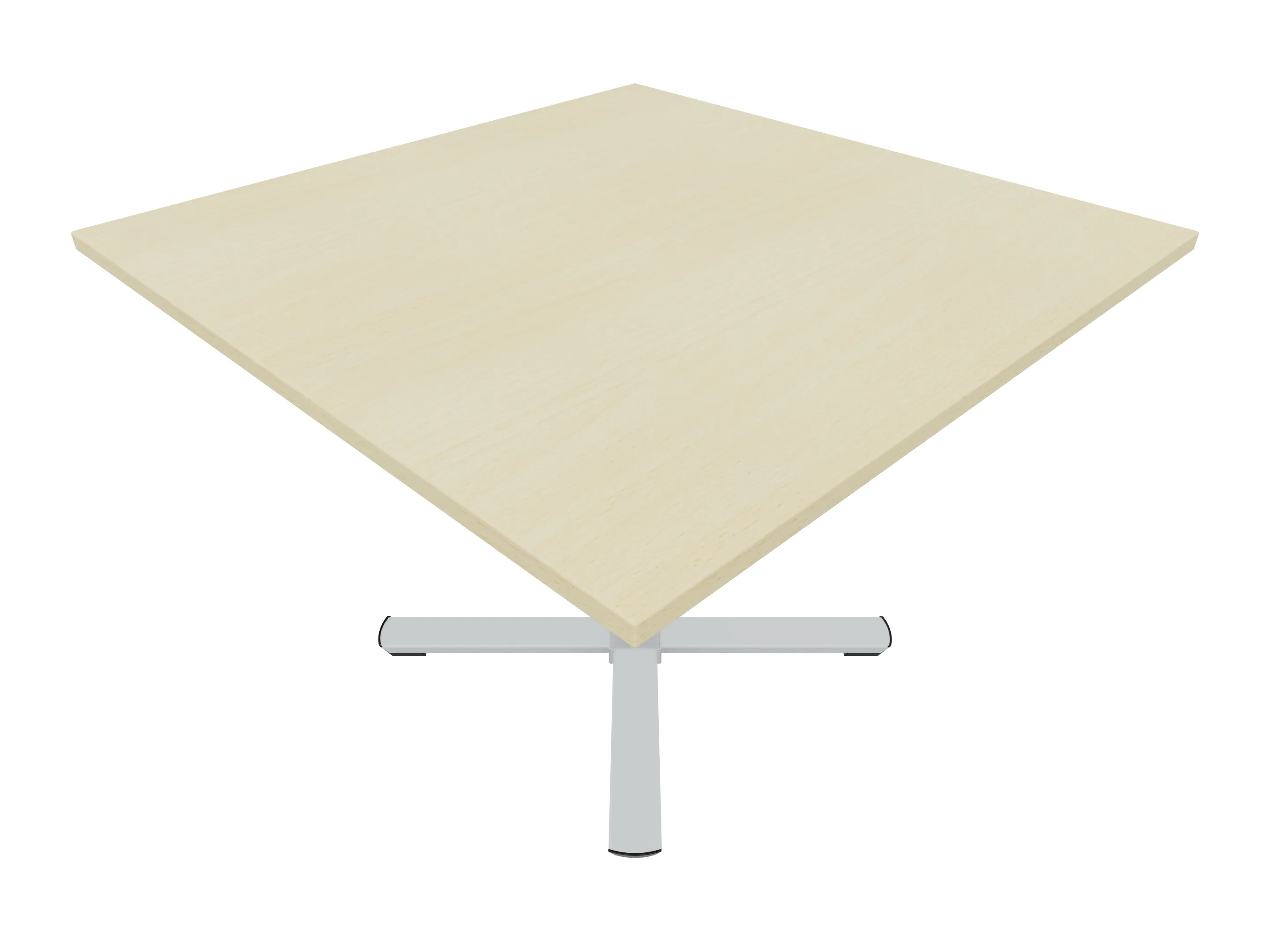 Bijzettafel met een kruisvoet op een kolom van 80 x 80mm, vierkant blad in de afmeting 1200 x 1200mm en een hoogte van 1050mm.