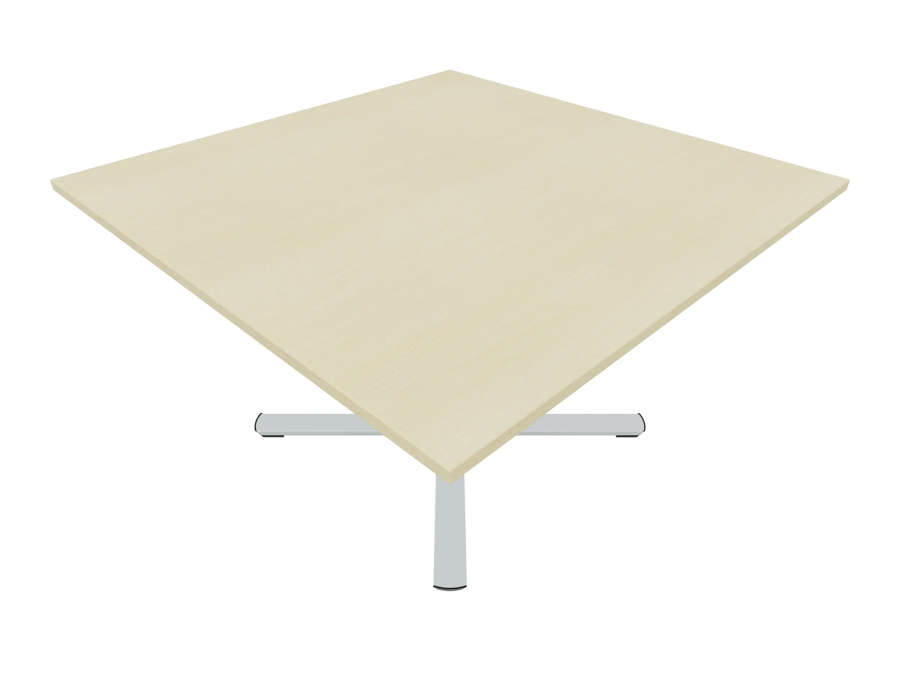 Bijzettafel met een kruisvoet op een kolom van Ø80mm, vierkant blad in de diameter Ø1200mm en een hoogte van 1050mm.