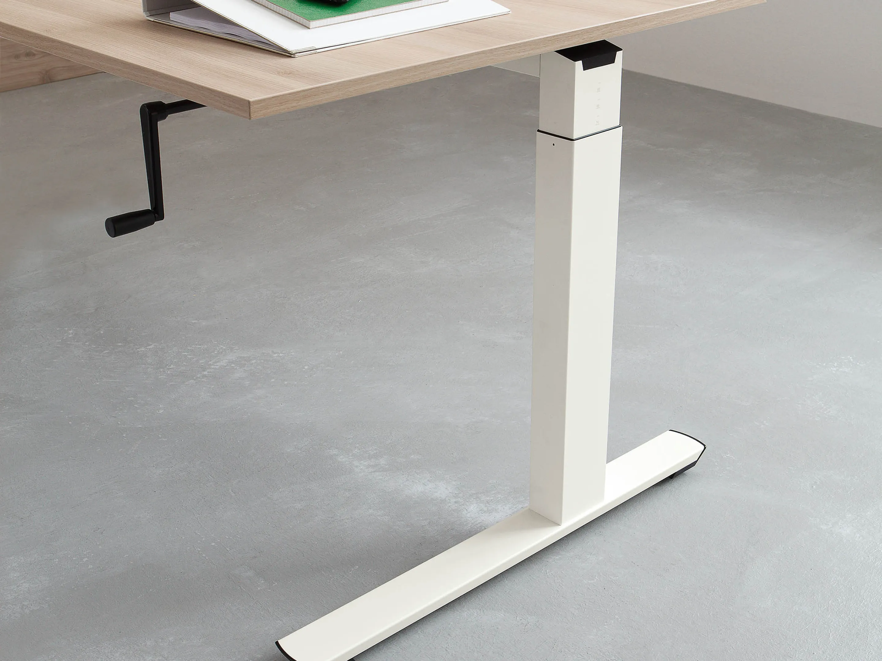 Bureau met twee poten (T-poot, hoogte instelbaar tussen 650-850mm d.m.v. "Easy-Push") in de afmeting: 1000 x 600mm (BxD)