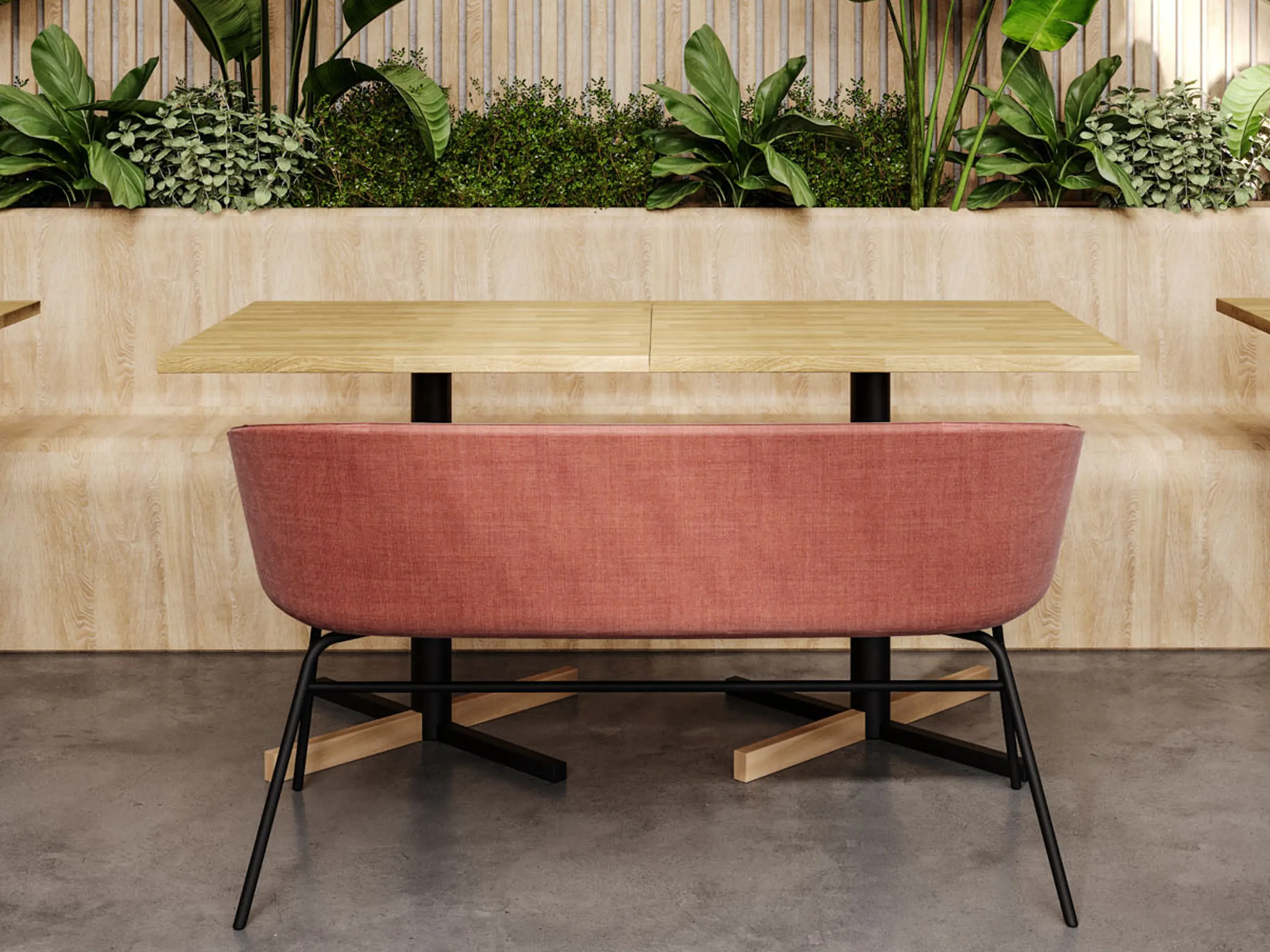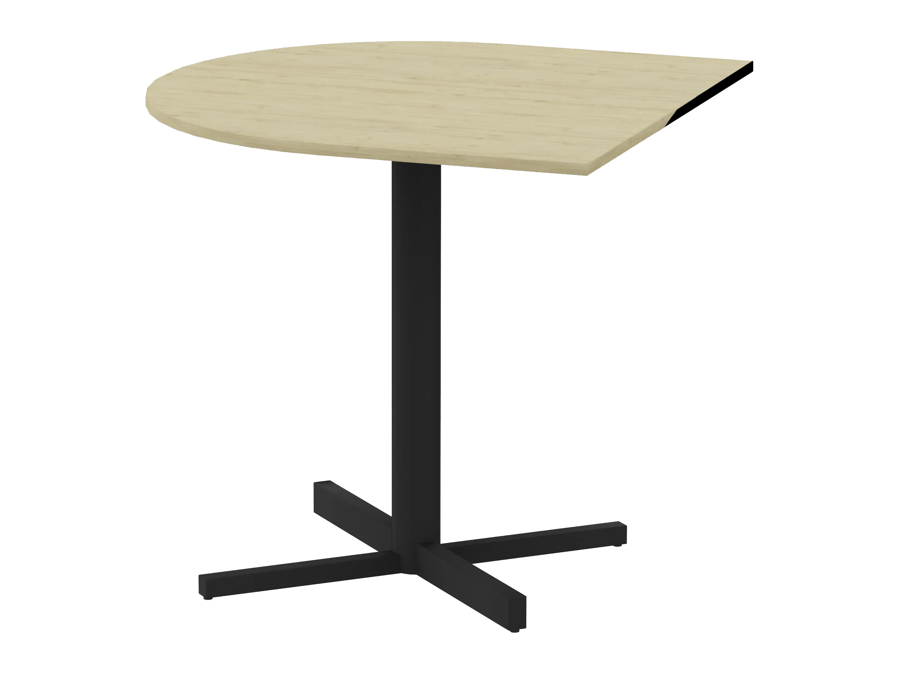 Half ovale vergadertafel op een 4-teens kruis. Afmeting: 800 x 800 x 740mm (B x D x H).