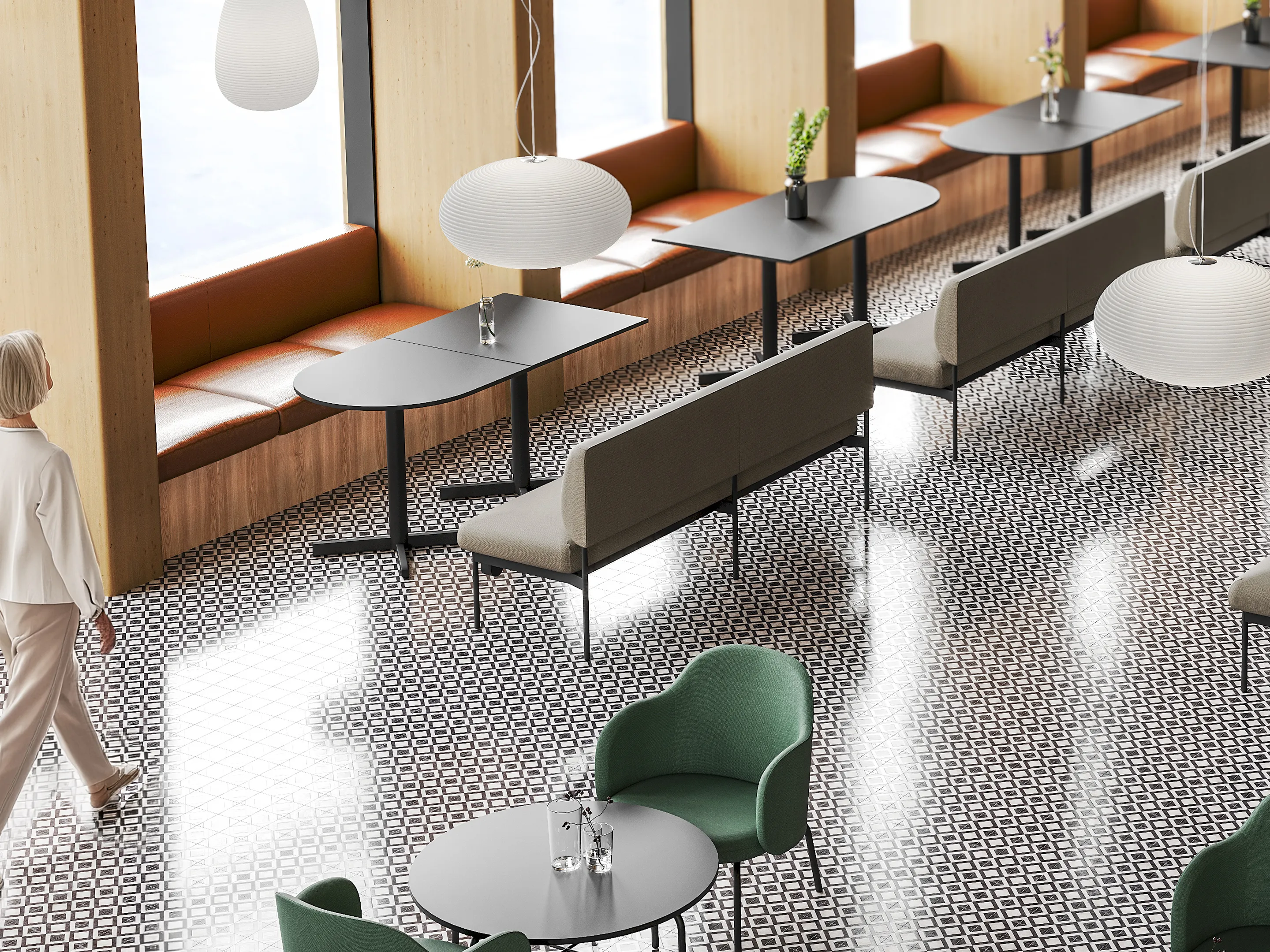 Vierkante vergadertafel op een 4-teens kruis. Afmeting: 800 x 800 x 740mm (B x D x H).