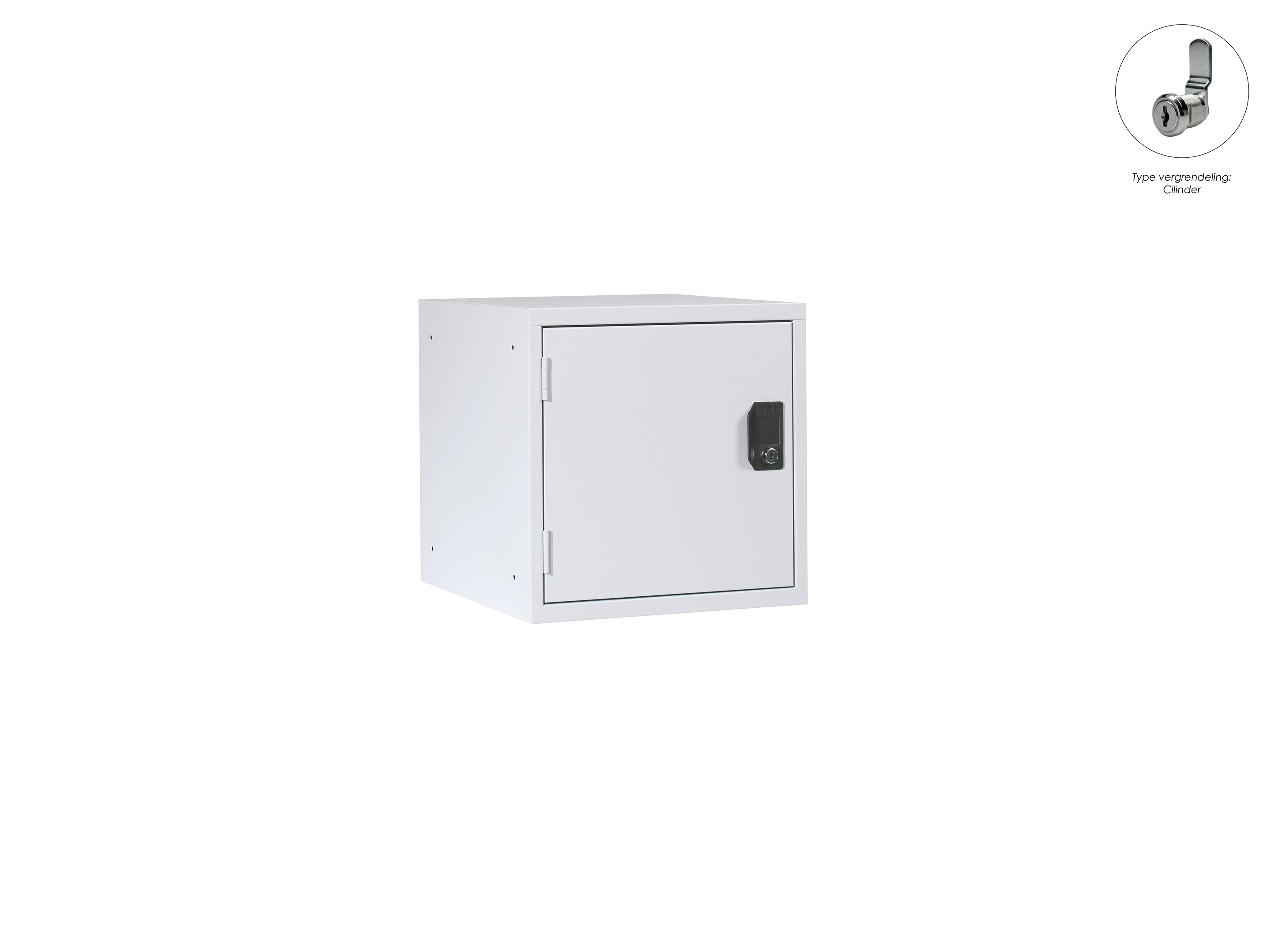 Type deuren: glad zonder naamkaarthouder, type slot: cilinderslot. Kleur romp: wit (RAL9010), kleur deuren: wit (RAL9010) . Afmeting: 45x45x45 cm (HxBxD). Netto doorsteek: 395x374x433mm. Aantal sleutels per slot: 2. Zonder handvat