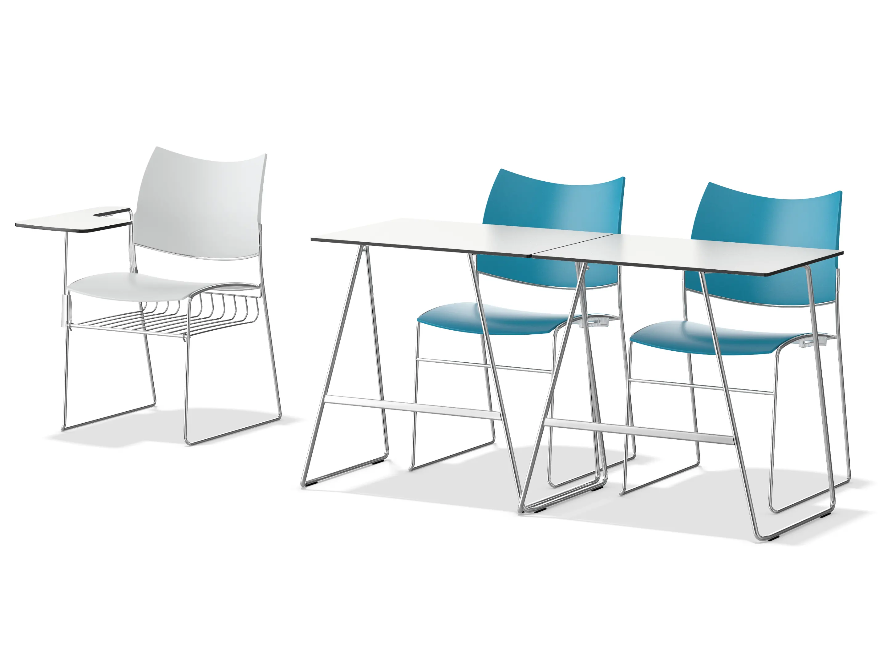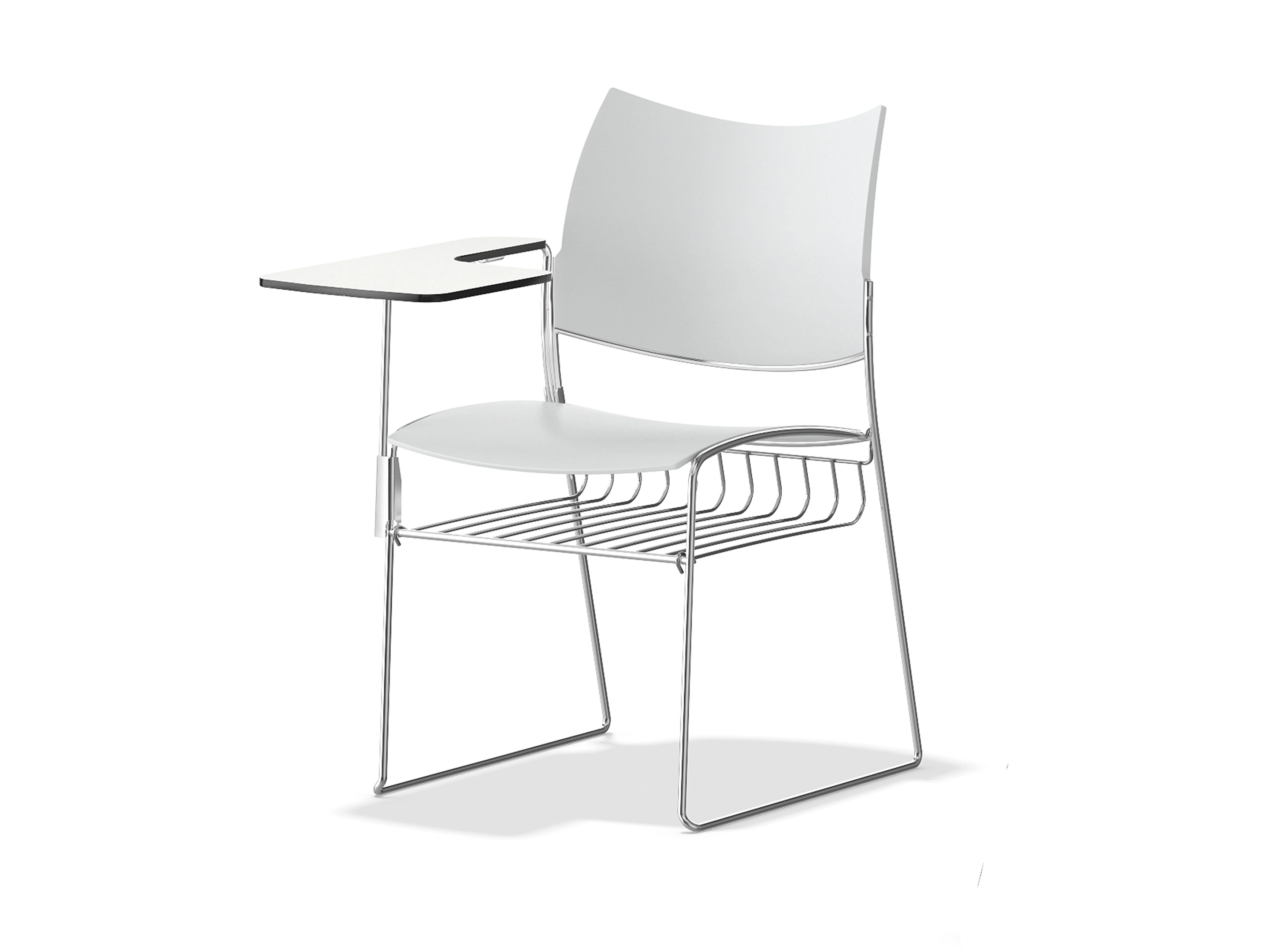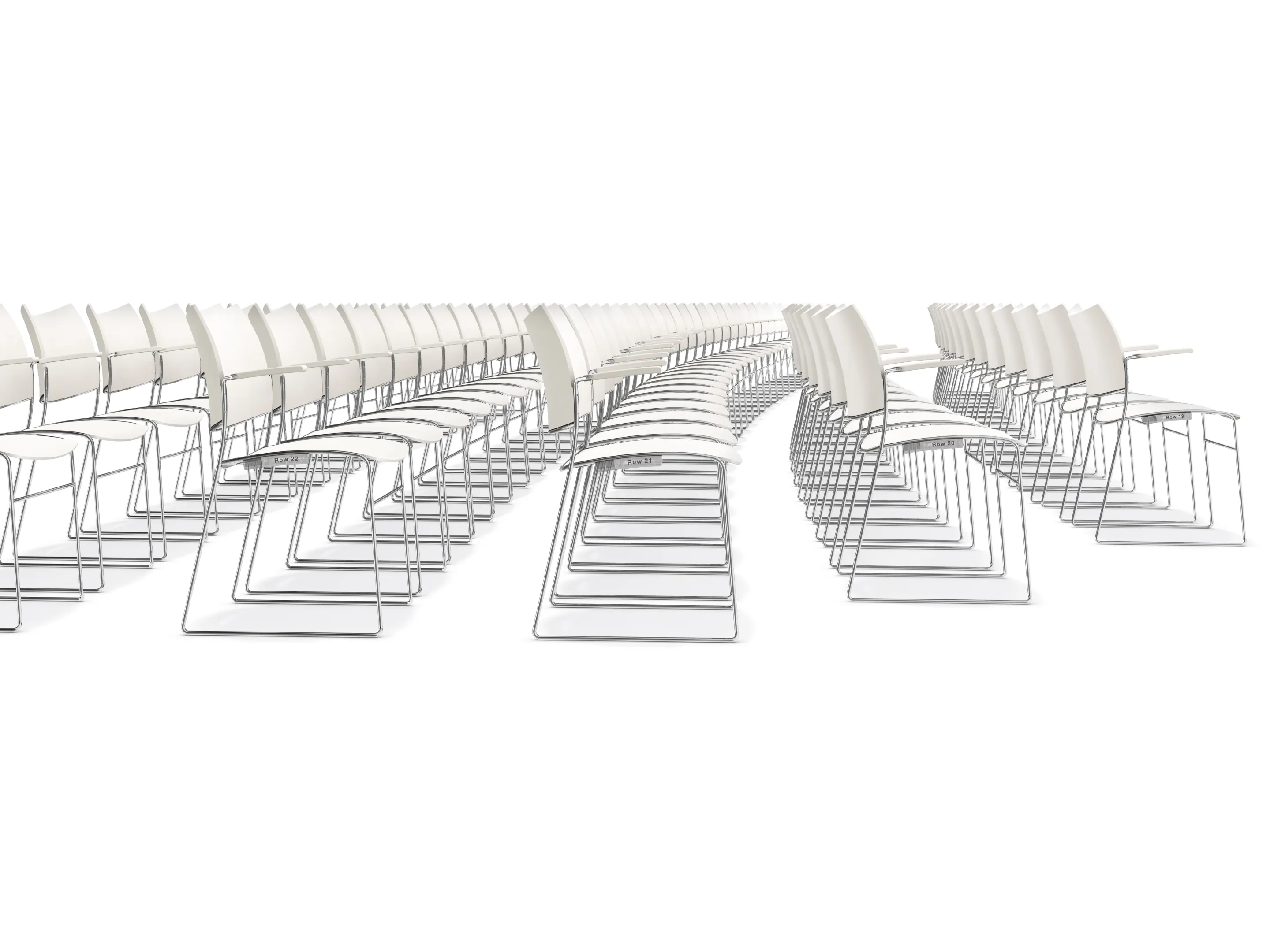 Sledeframe met een kunststof zitting en rug zonder stoffering. Exclusief armleggers. Stapelbaar tot 45 stuks exclusief rijverbinding en tot 6 stuks vrijstaand.
