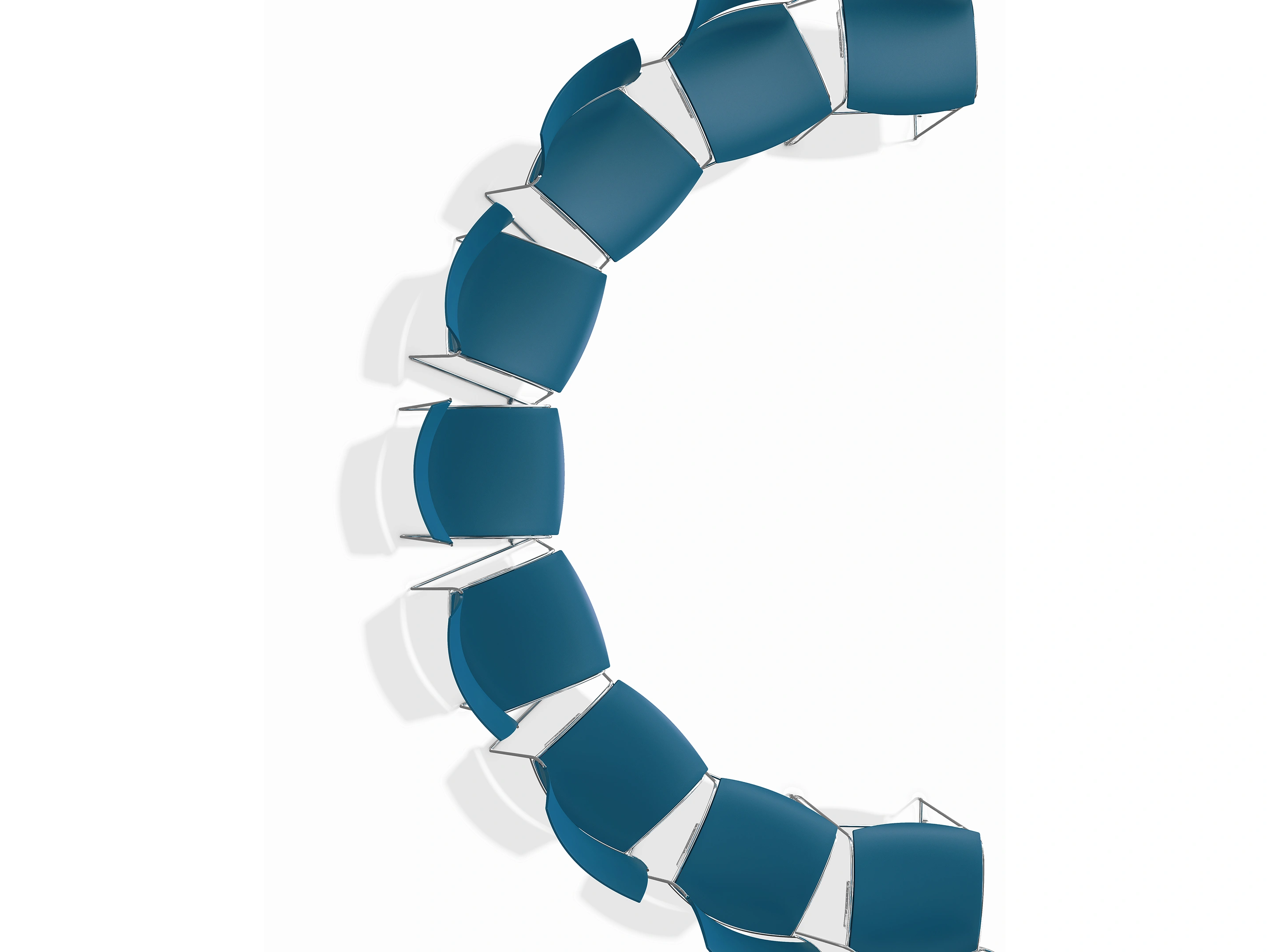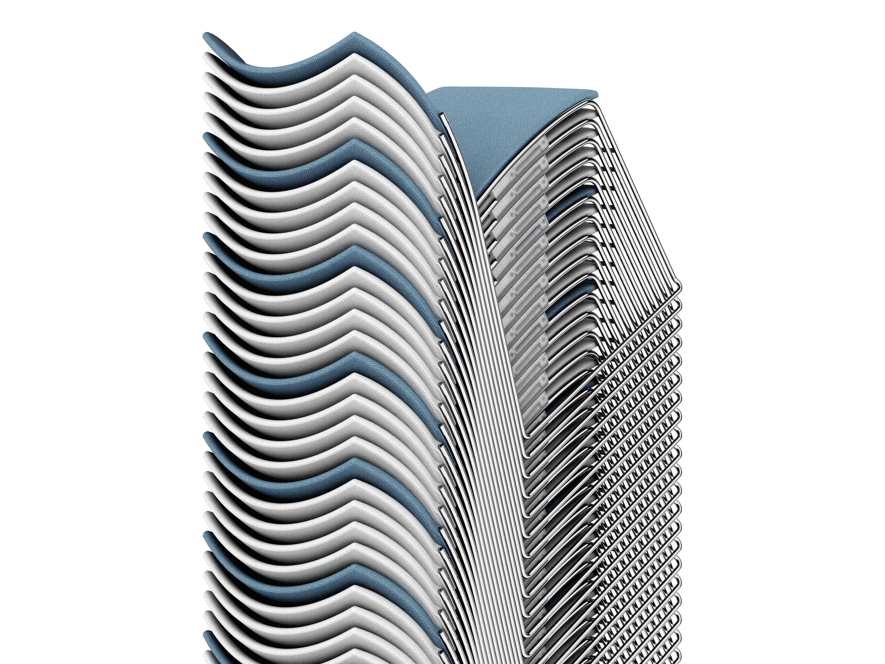 Sledeframe met een gestoffeerde zitting en kunststof rug zonder stoffering. Exclusief armleggers. Stapelbaar tot 32 stuks op transportwagen en tot 6 stuks vrijstaand.