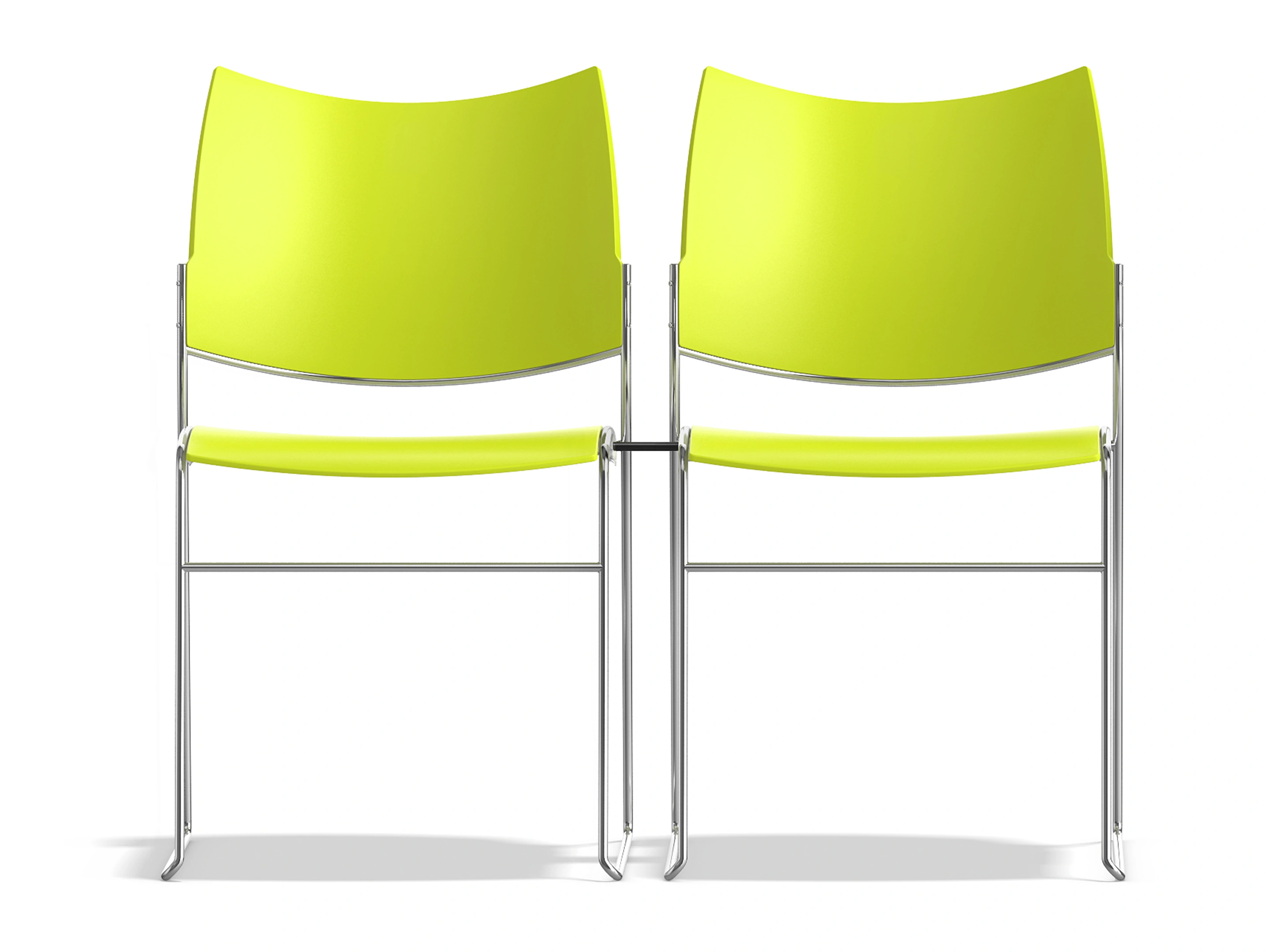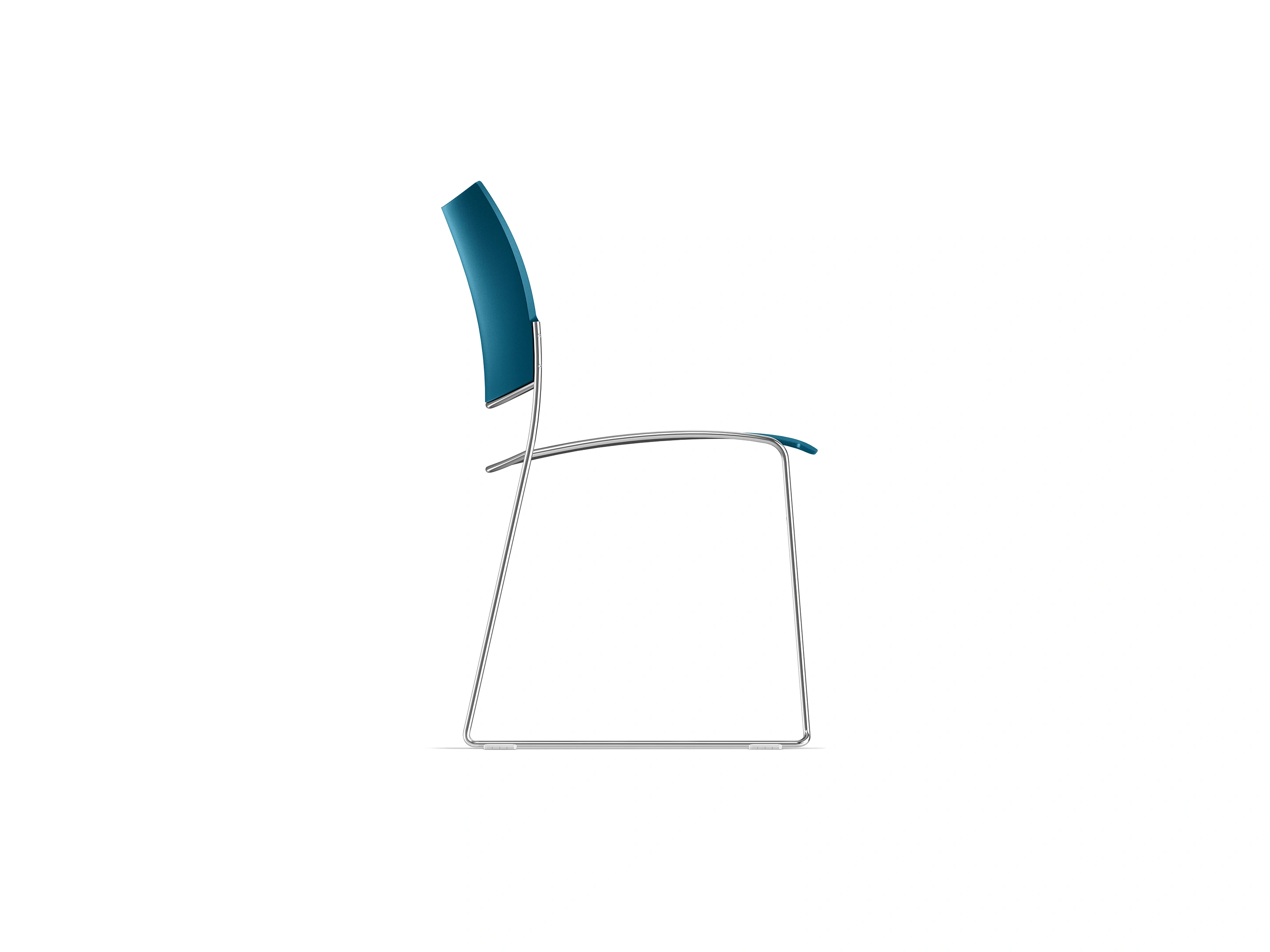 Sledeframe met een kunststof zitting en rug zonder stoffering. Inclusief armleggers. Stapelbaar tot 45 stuks exclusief rijverbinding tot 6 stuks vrijstaand.