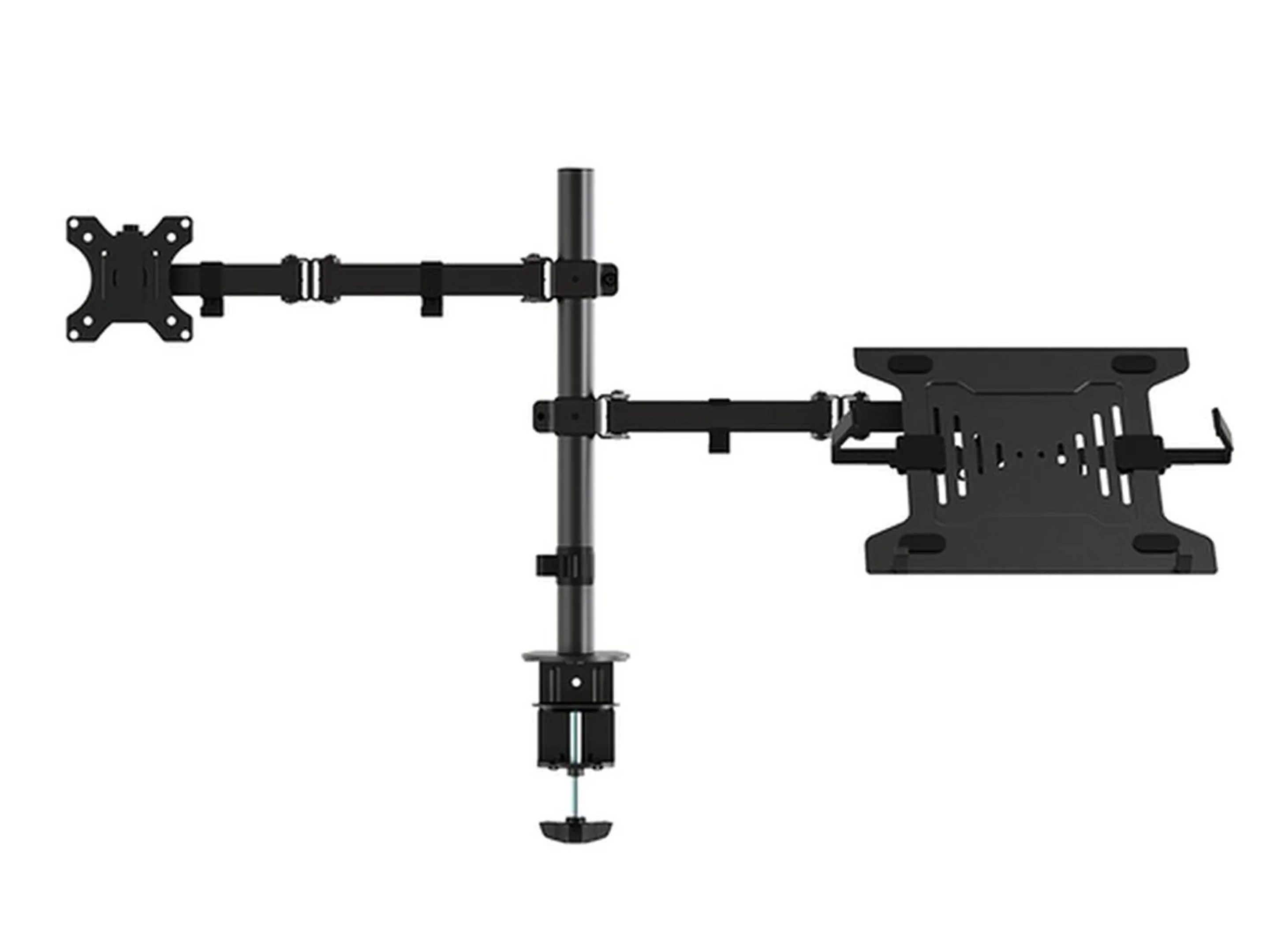 Bureausteun voor een beeldscherm i.c.m. met laptop, Max. beeldscherm 32 inch, Max formaat laptop: 17,3 inch, VESA patroon: 75x75, 100x100 mm, Bureaumontage: Doorvoer & Klem, Hoogteverstelling: 0-44 cm, Diepteverstelling: 4-52cm