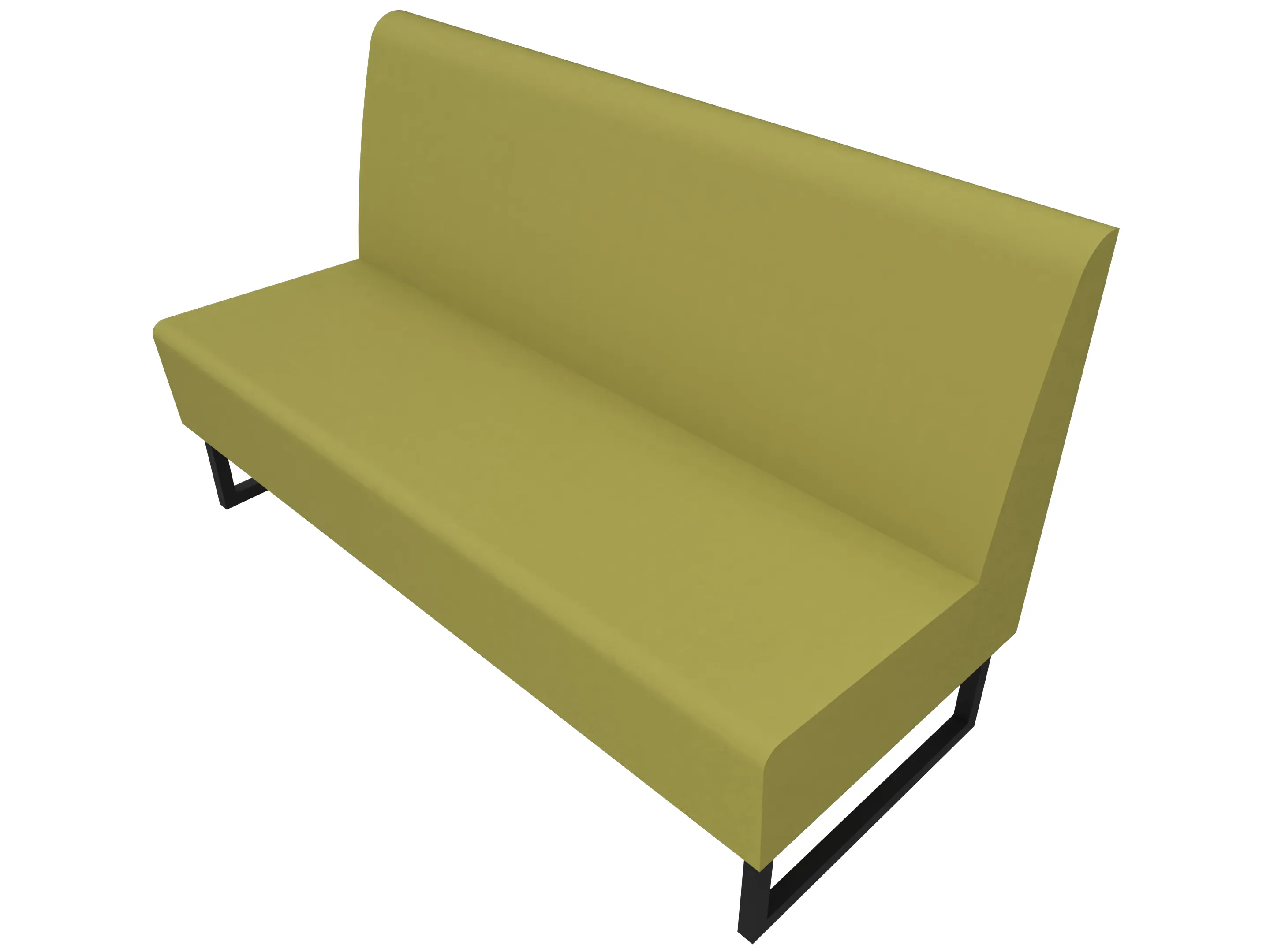 Treinbank op sledeframe, met een zithoogte van 450mm. Afmeting: Breedtemaat is maatwerk x 780 x 600mm (BxHxD).