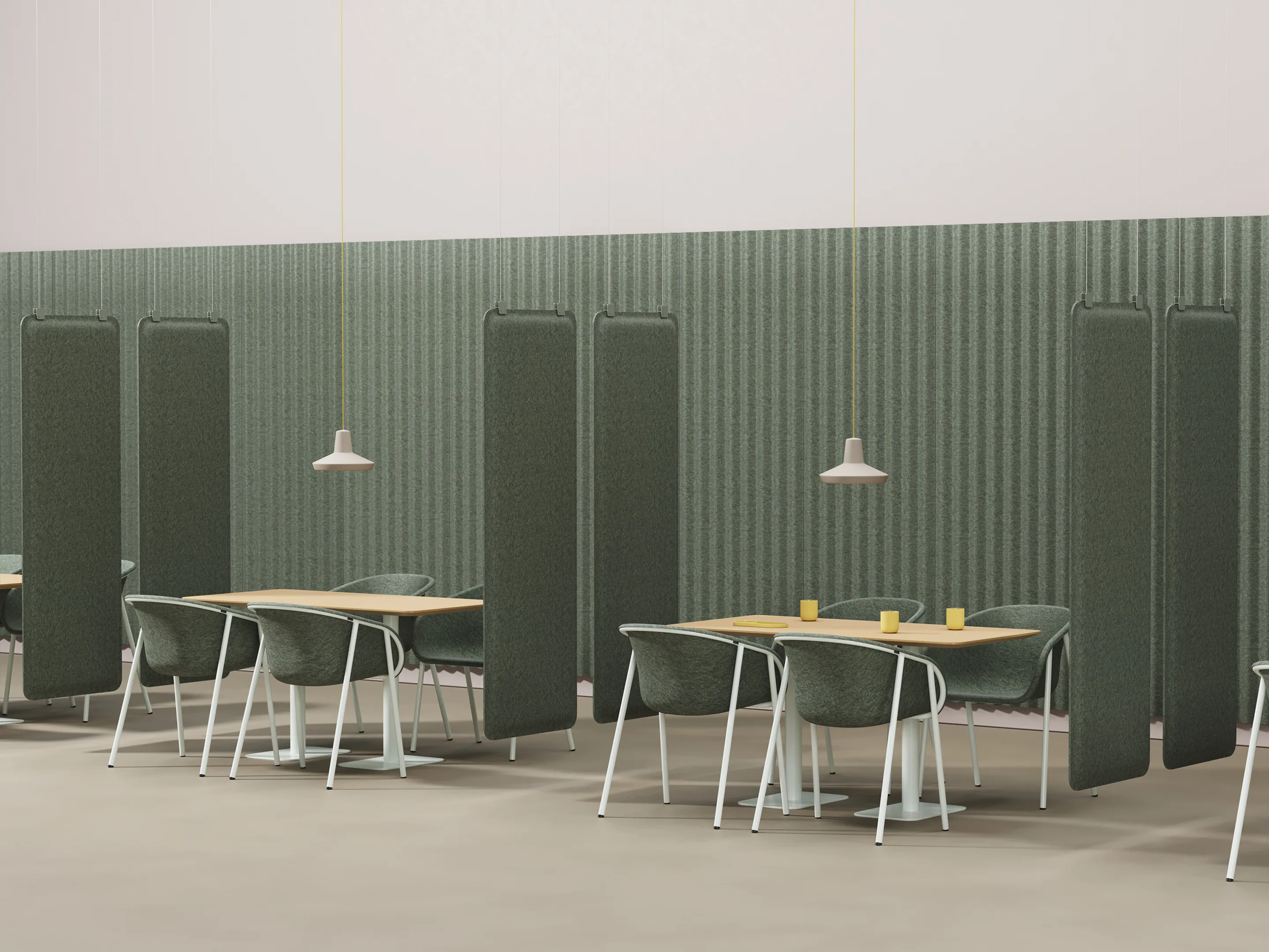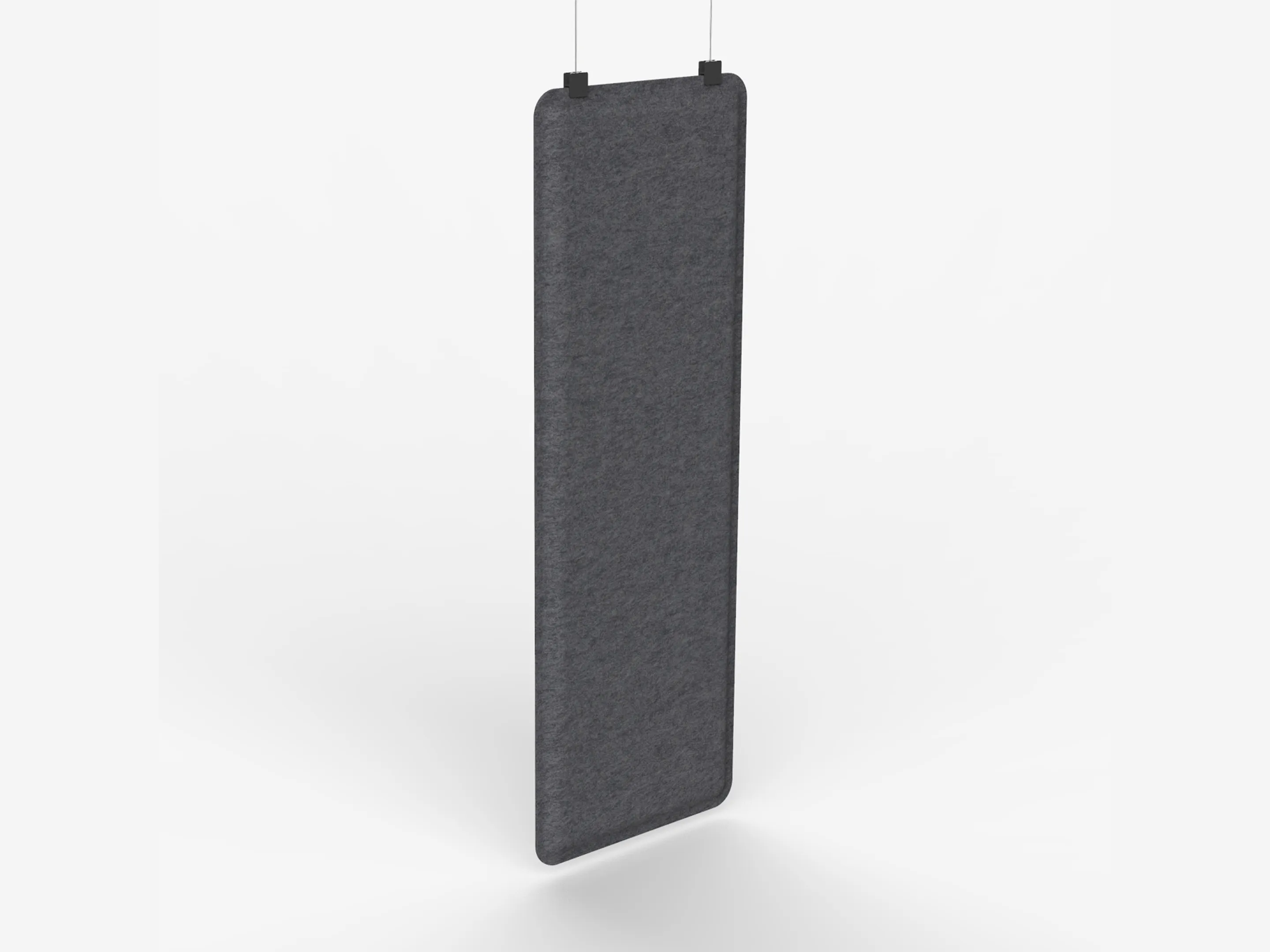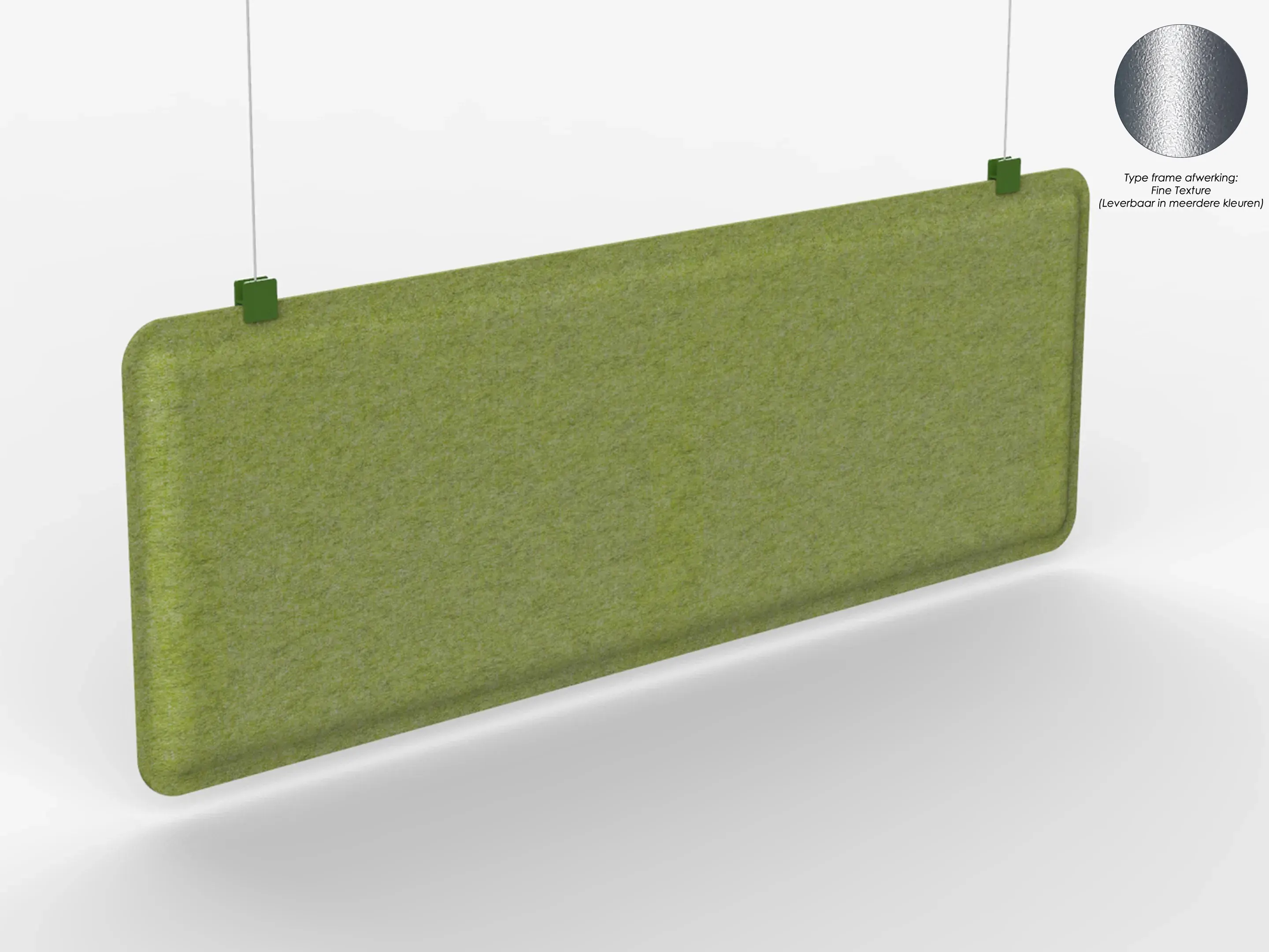Uit gerecycled PET flessen gevormde werkplek hangdivider. Afmeting: 630x1800x50mm (BxHxD). Let op, voor "Fine Texture" kleuren worden opstartkosten in rekening gebracht.