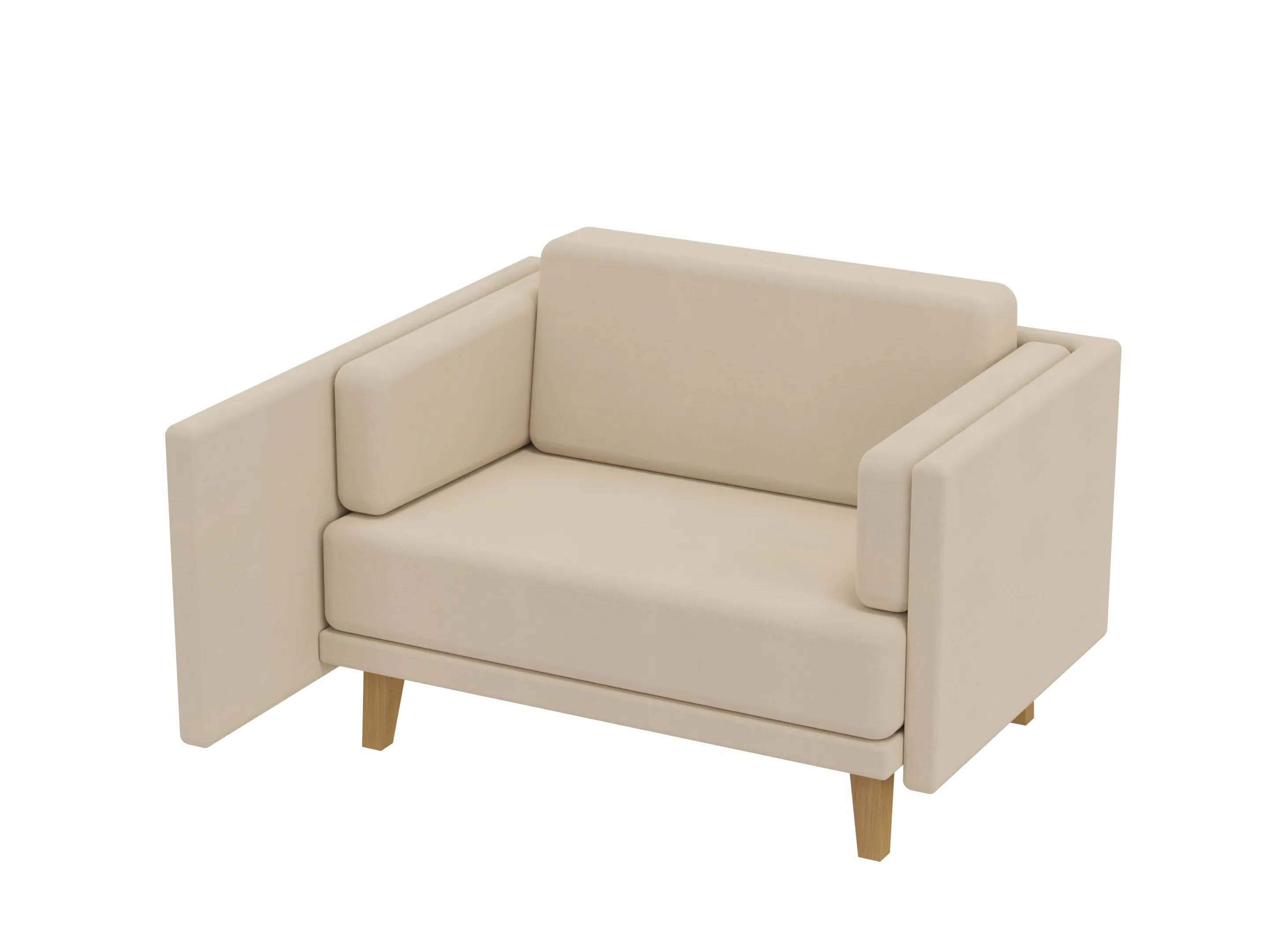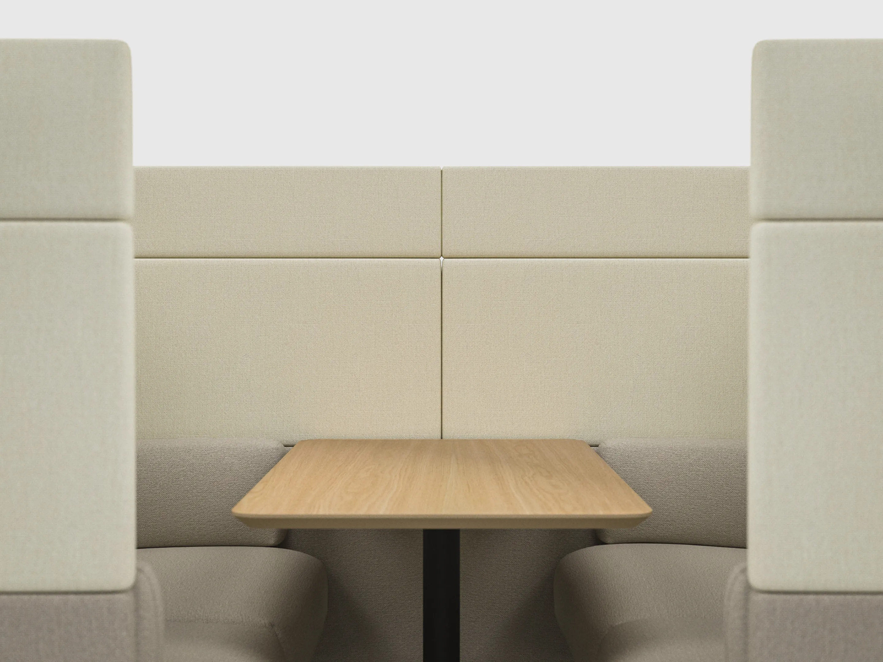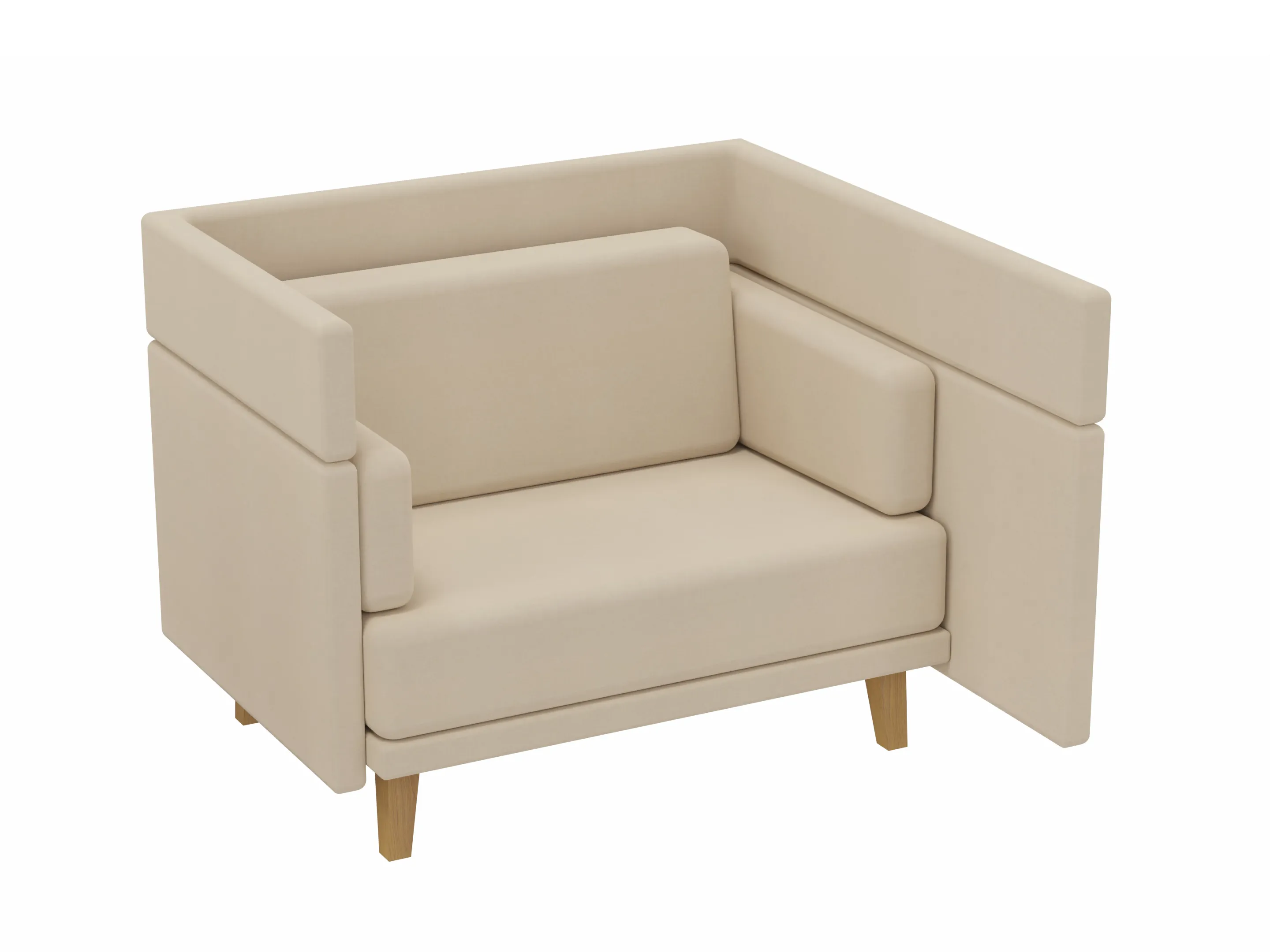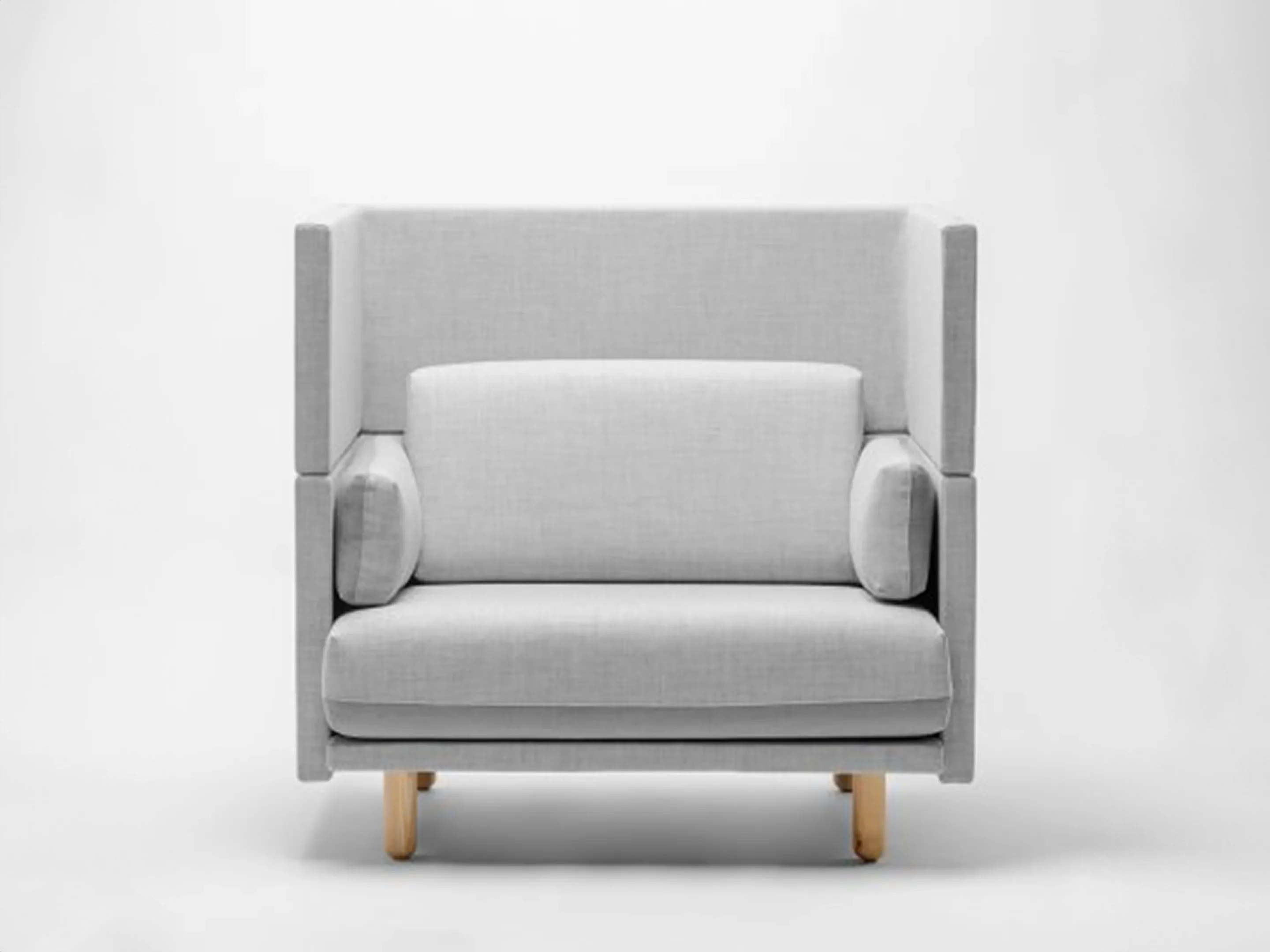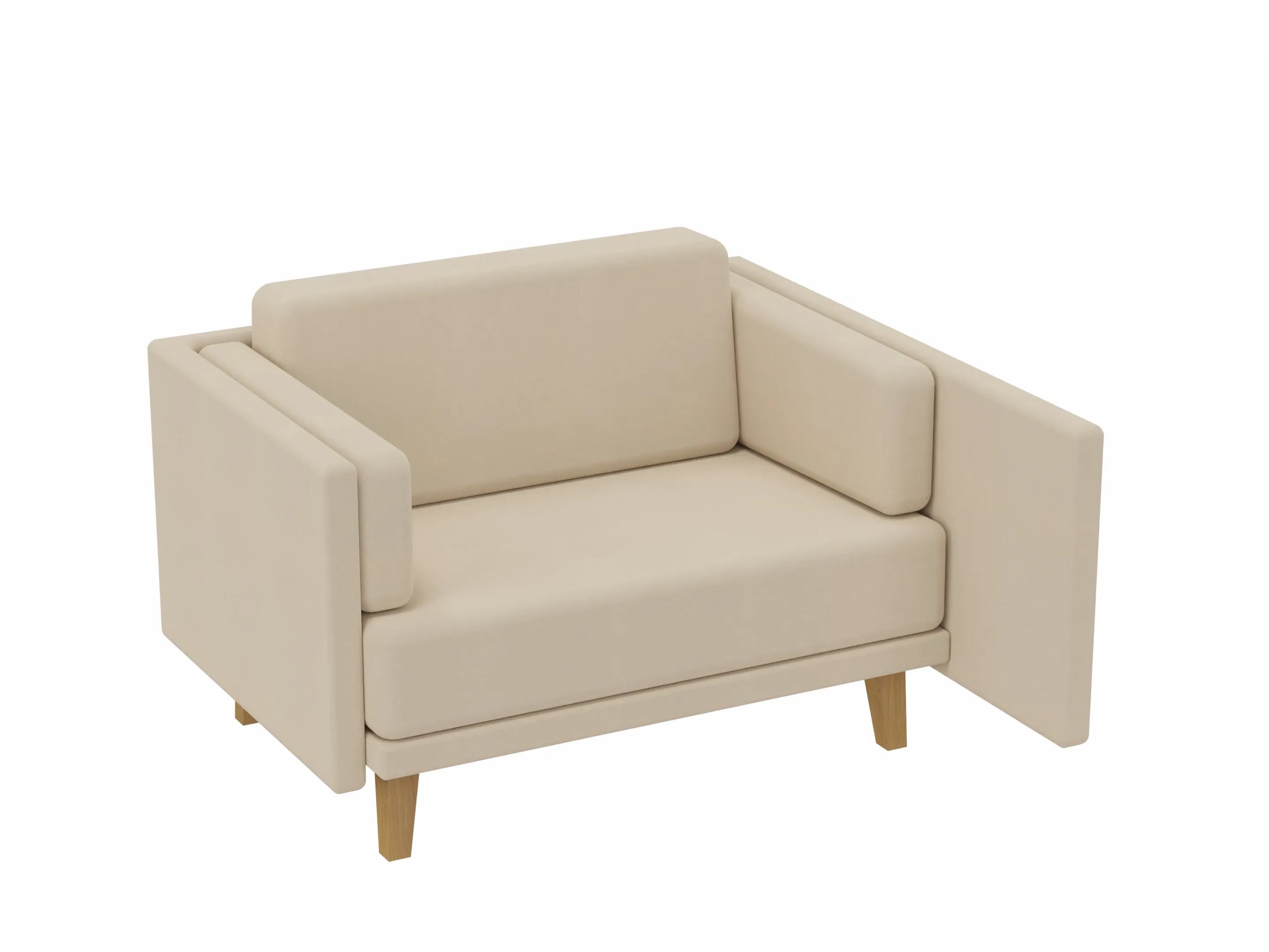 Volledig gestoffeerde Love Seat met en middelhoge rug (940mm hoog), compleet met kussens. Koppelpaneel: Rechts (zit-perspectief)