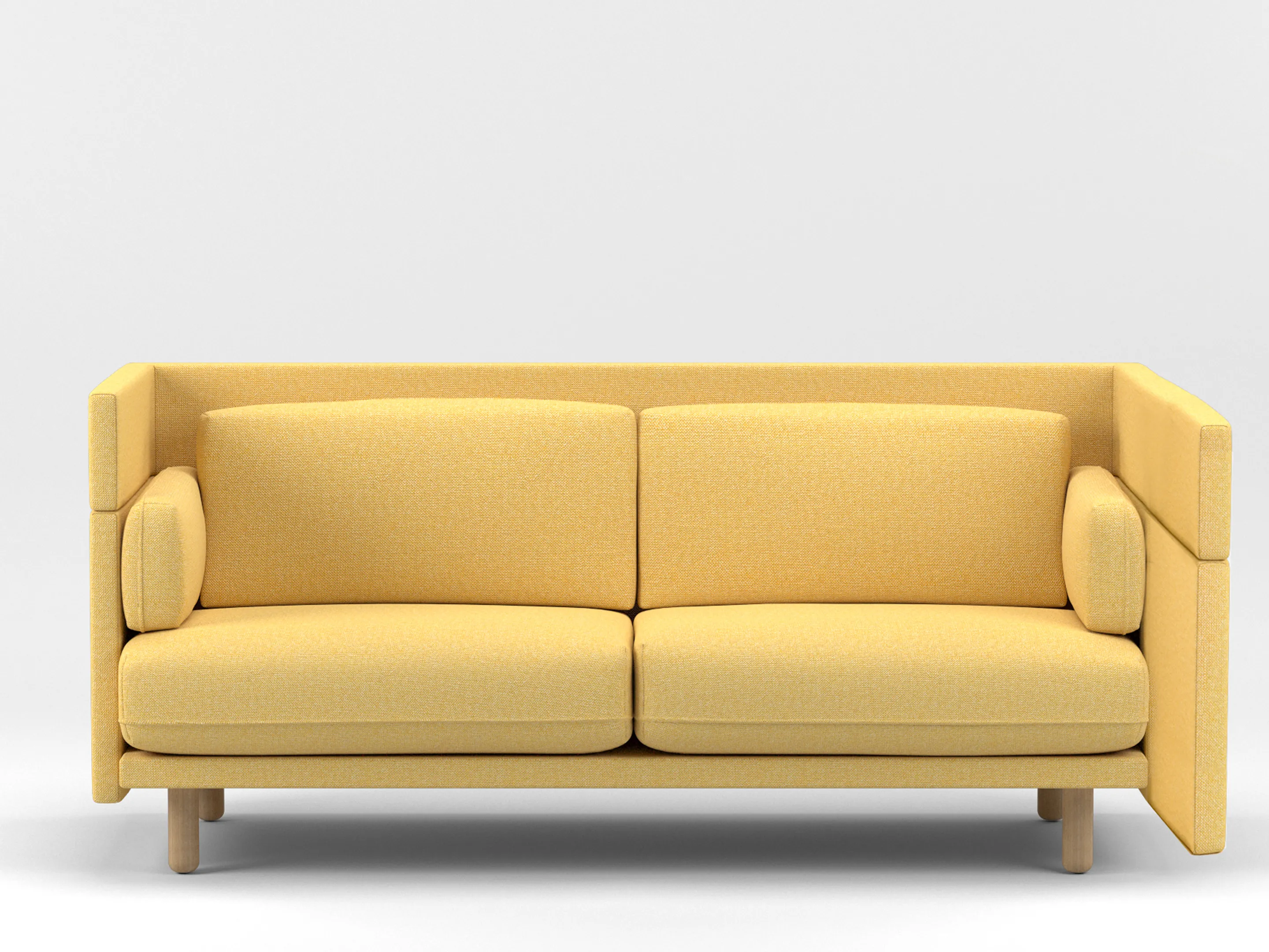 Volledig gestoffeerde Love Seat met en lage rug (710mm hoog), compleet met kussens. Koppelpaneel: Links (zit-perspectief)