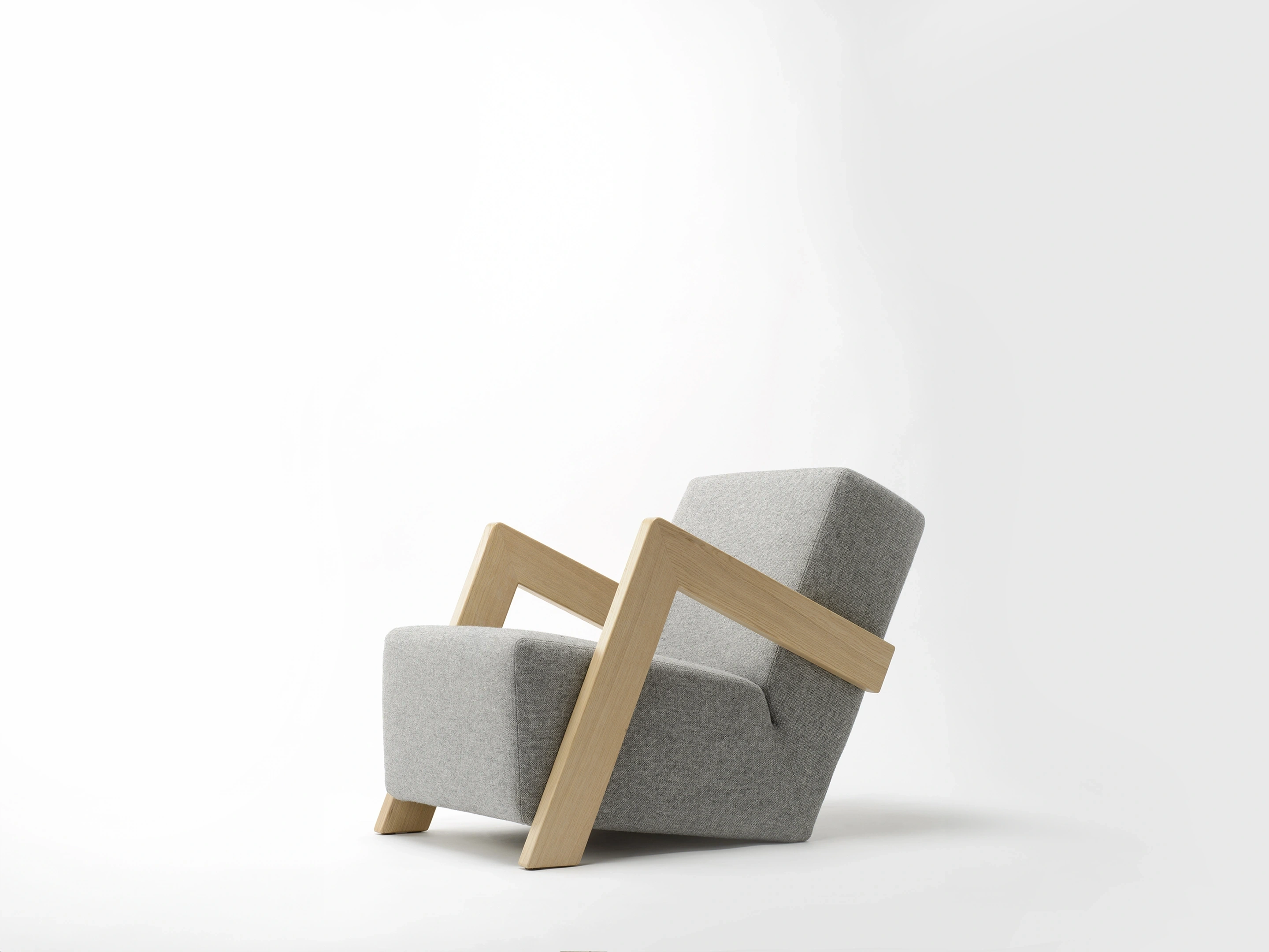 Volledig gestoffeerde fauteuil. Armleuningen in Custom Colour.
