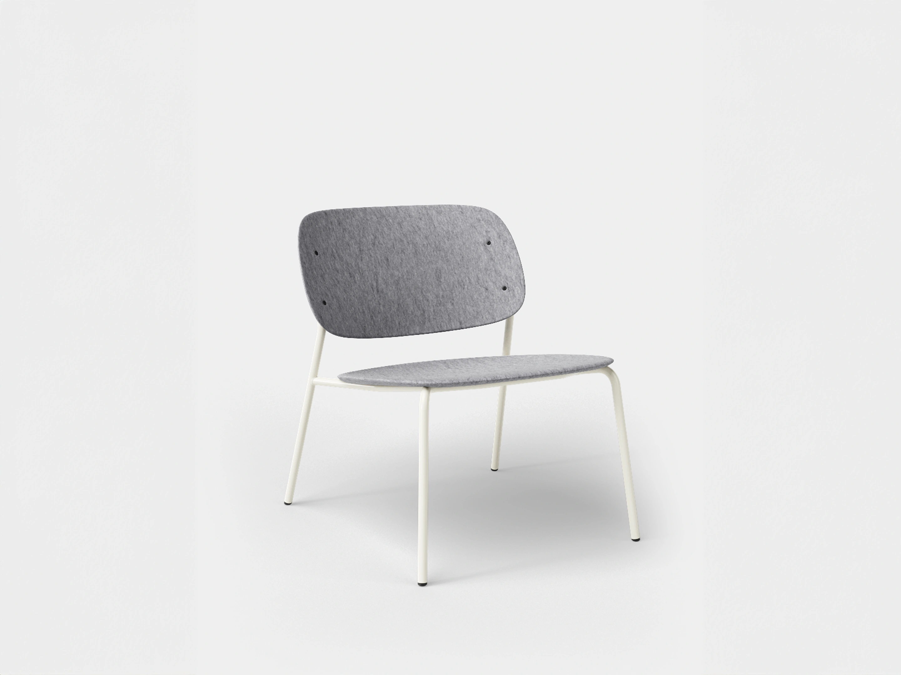 Pet-felt Lounge stoel zonder armleuningen. Zitschaal in een basis kleur, frame in een Fine Texture kleur. Let op, voor "Fine Texture" kleuren worden opstartkosten in rekening gebracht.