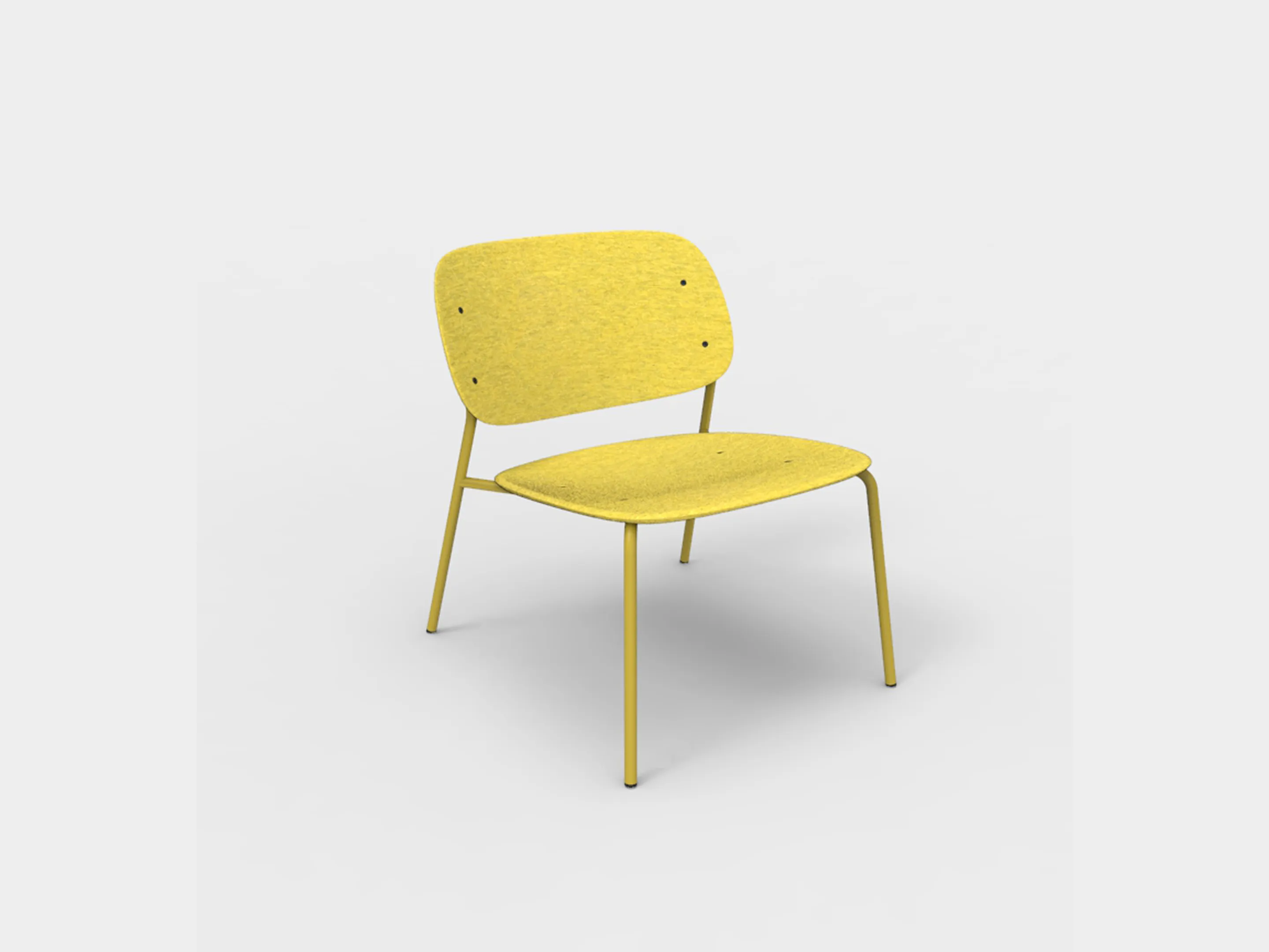Pet-felt Lounge stoel zonder armleuningen. Zitschaal in een basis kleur, frame in een Custom kleur. Let op, voor "Custom Kleuren" worden opstartkosten in rekening gebracht.