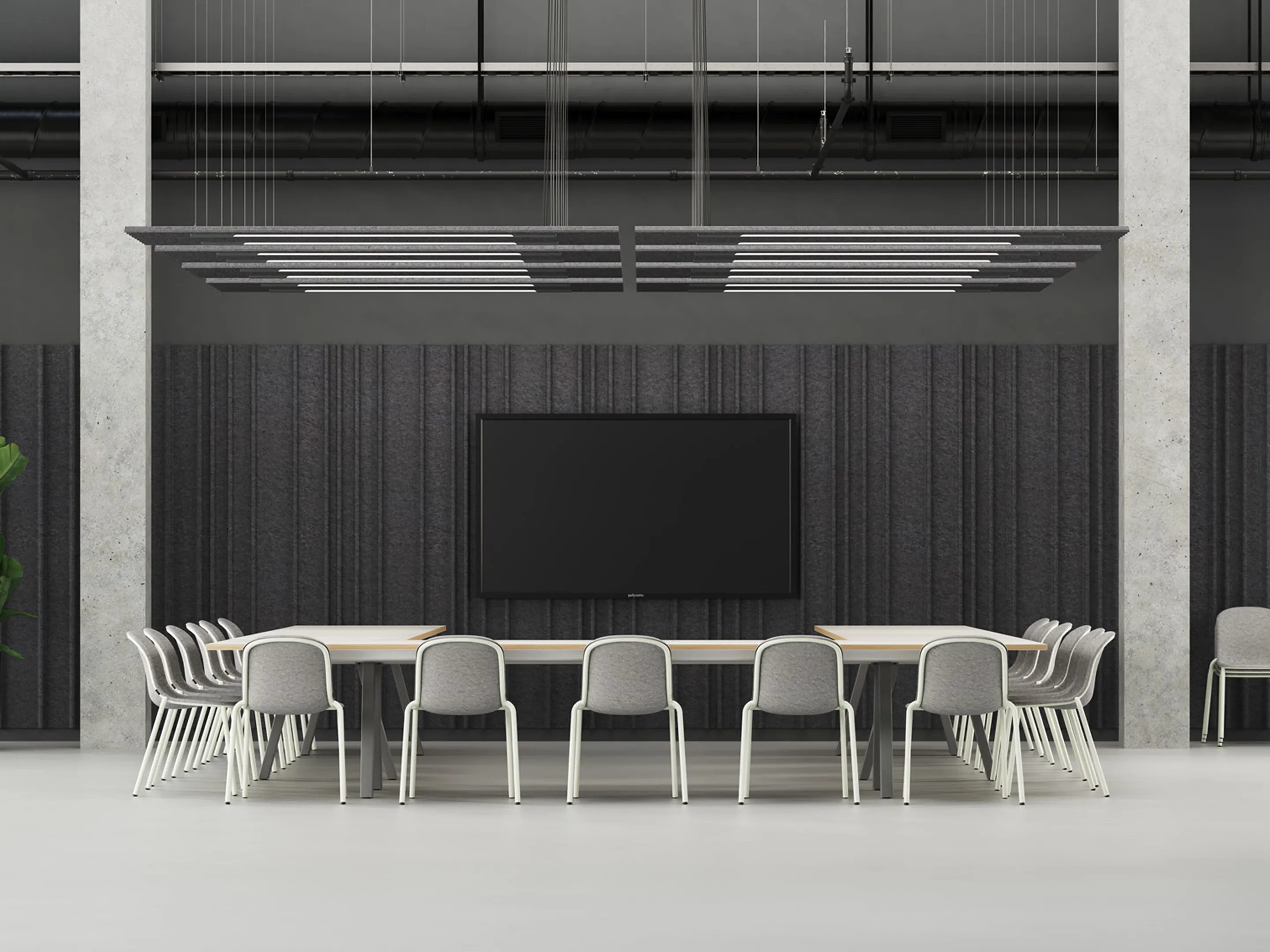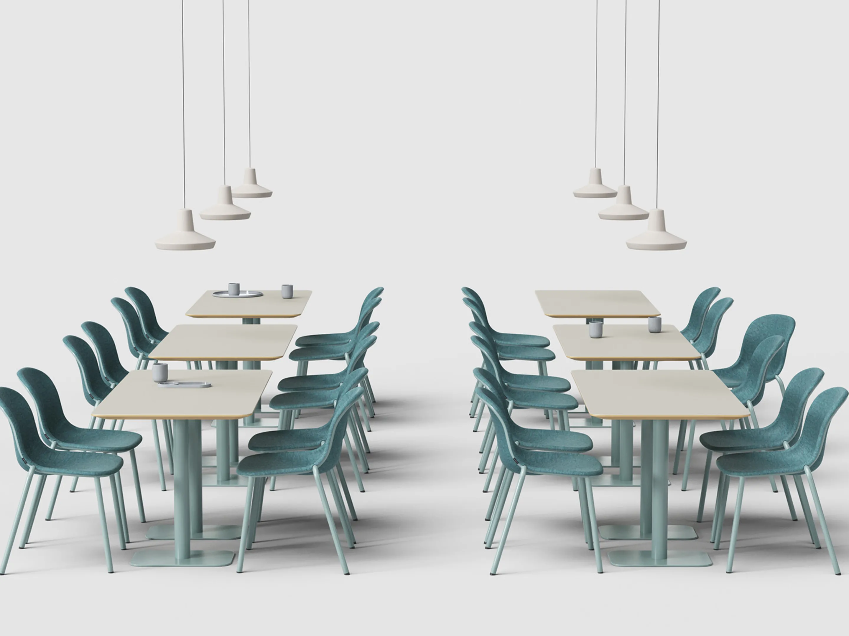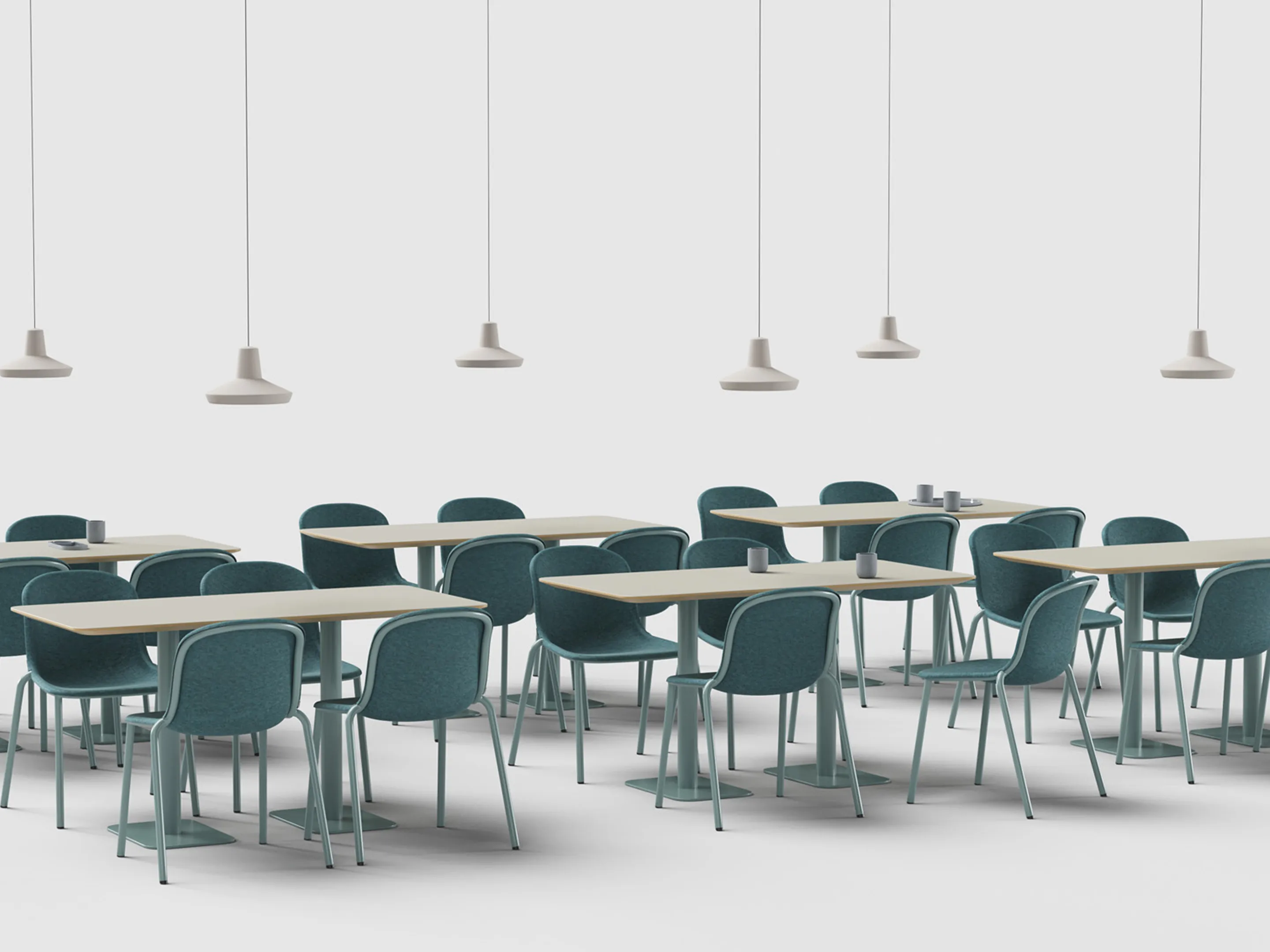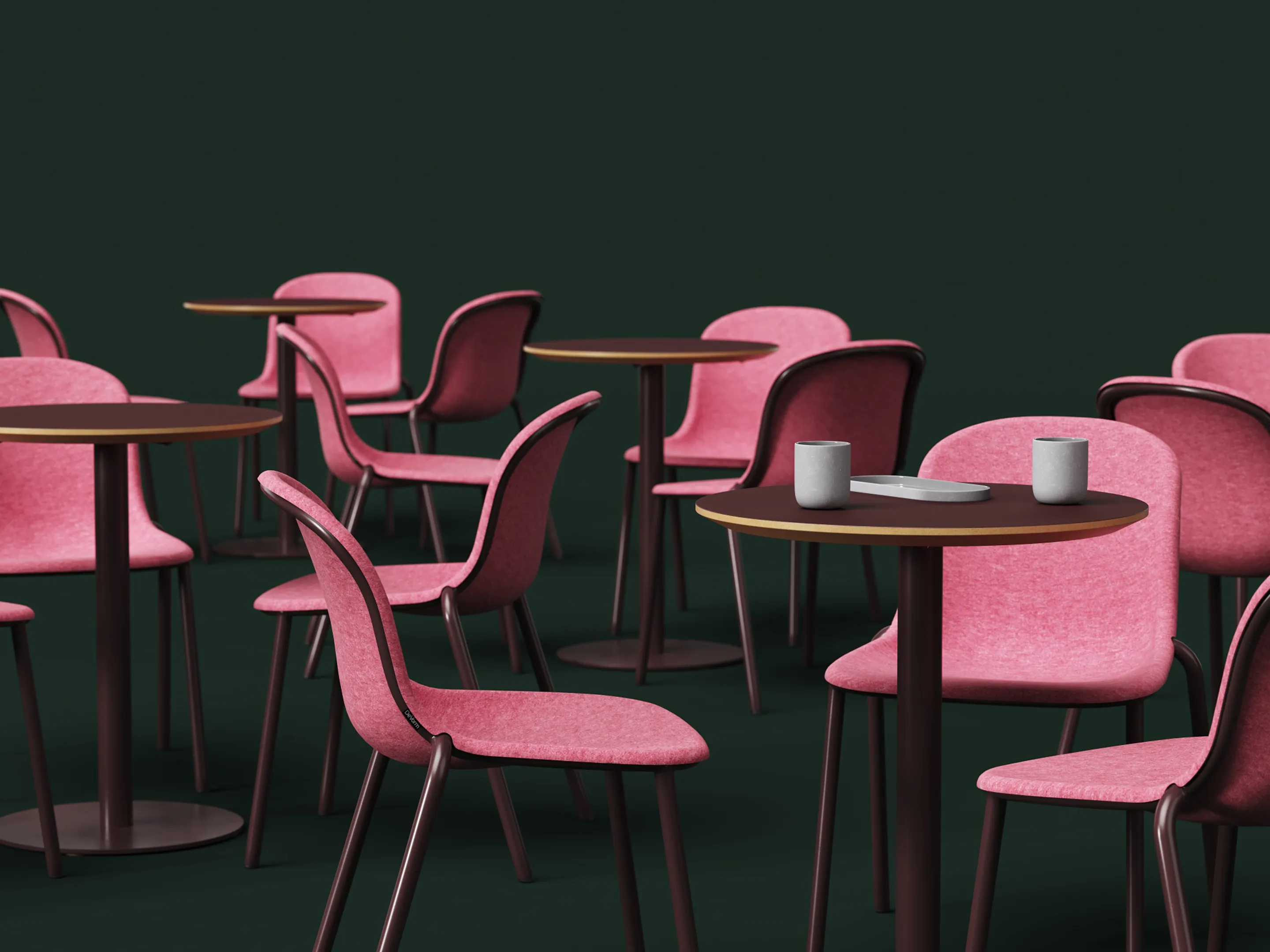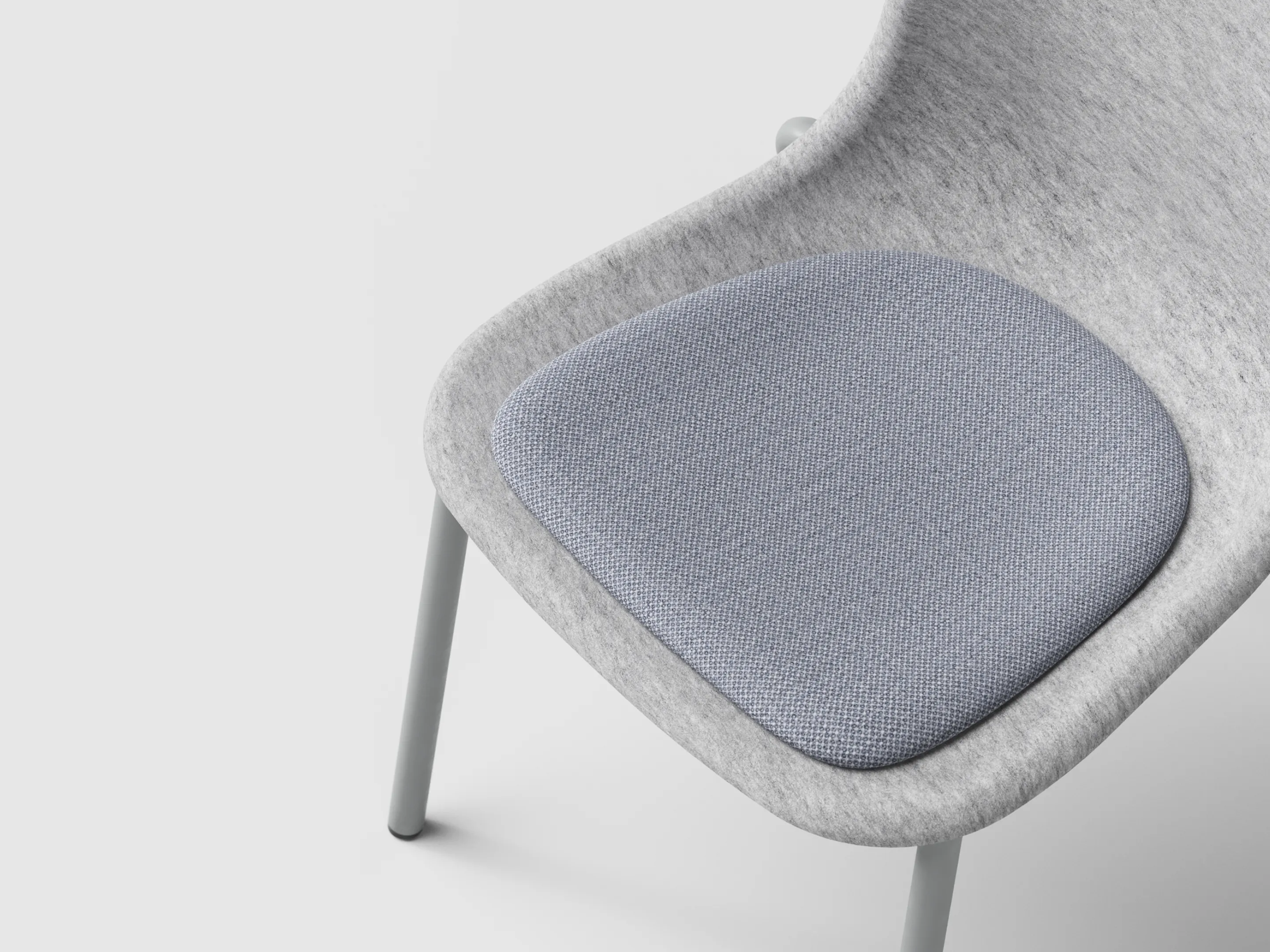 Stapelbare PET-felt stoel zonder armleuningen.