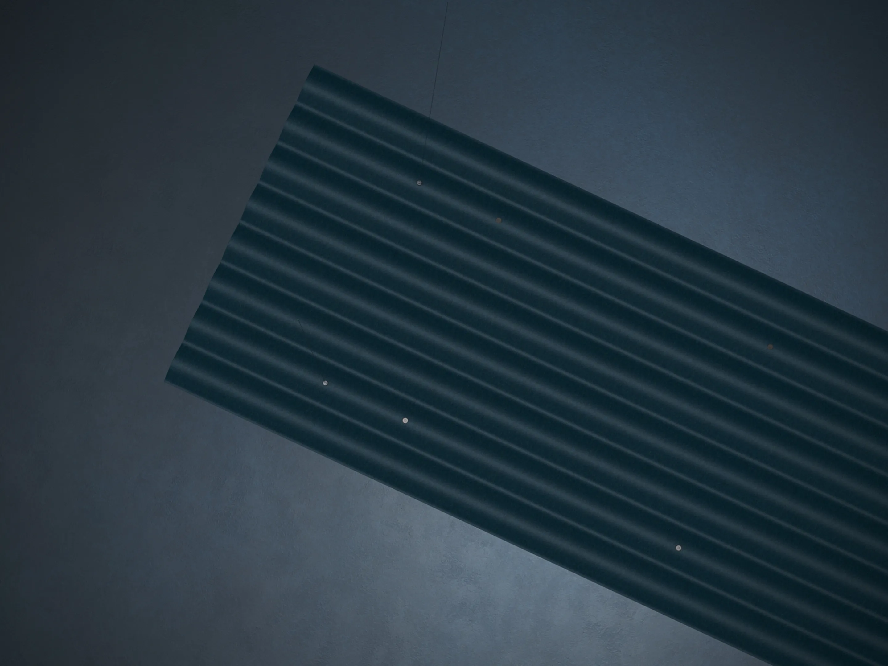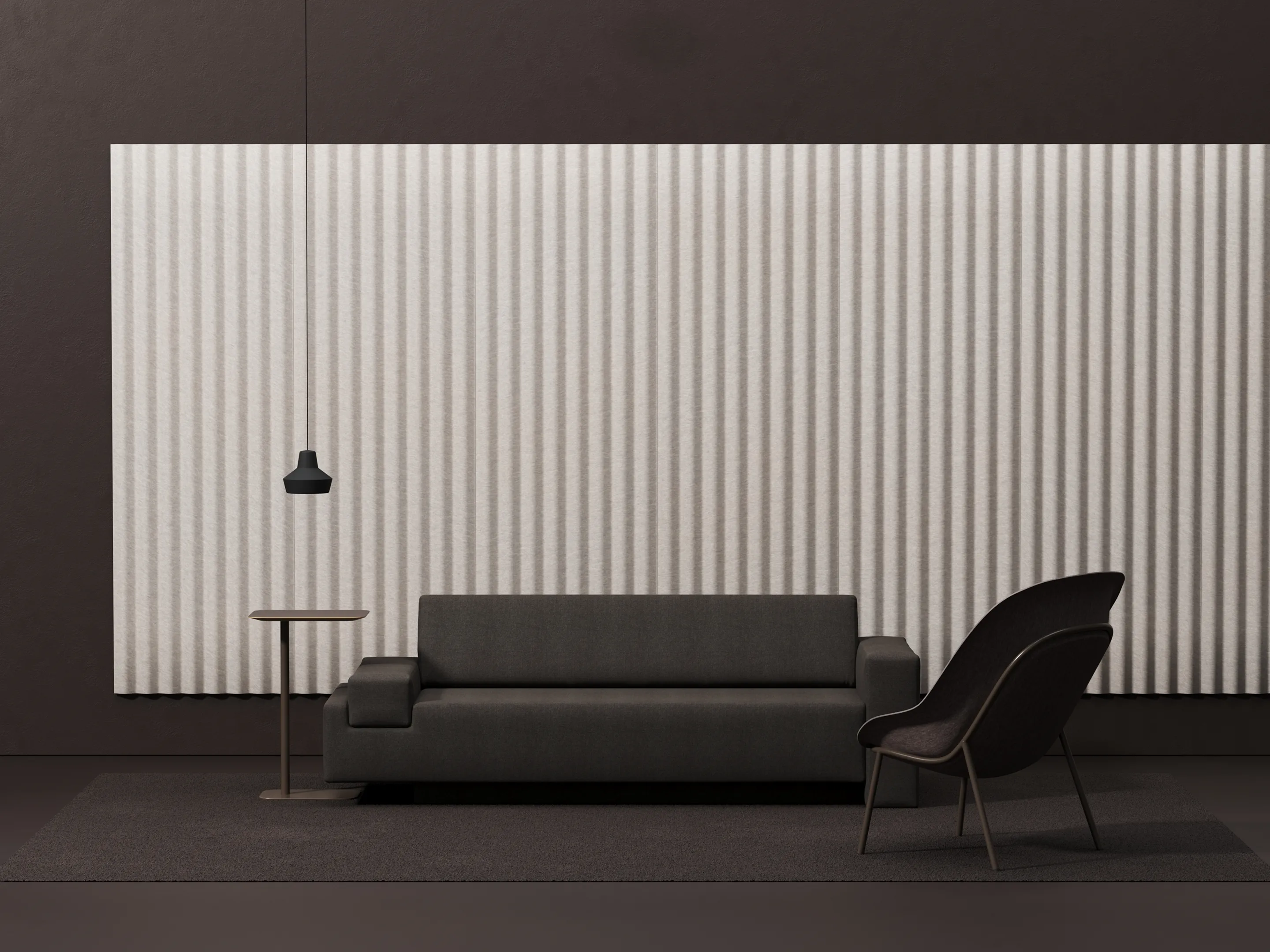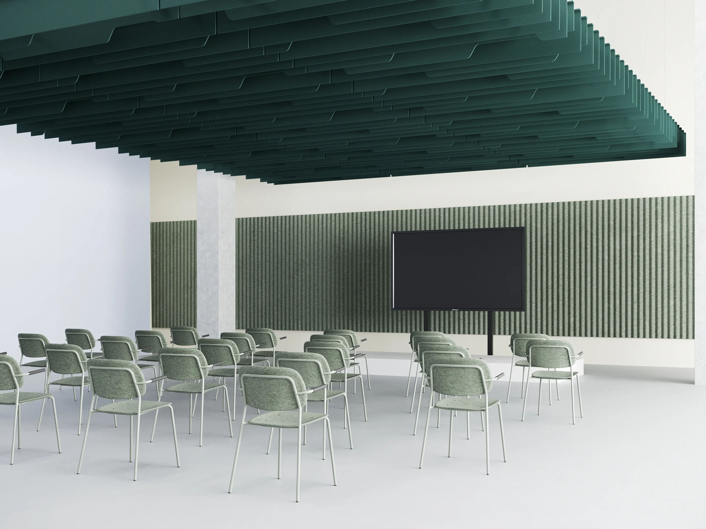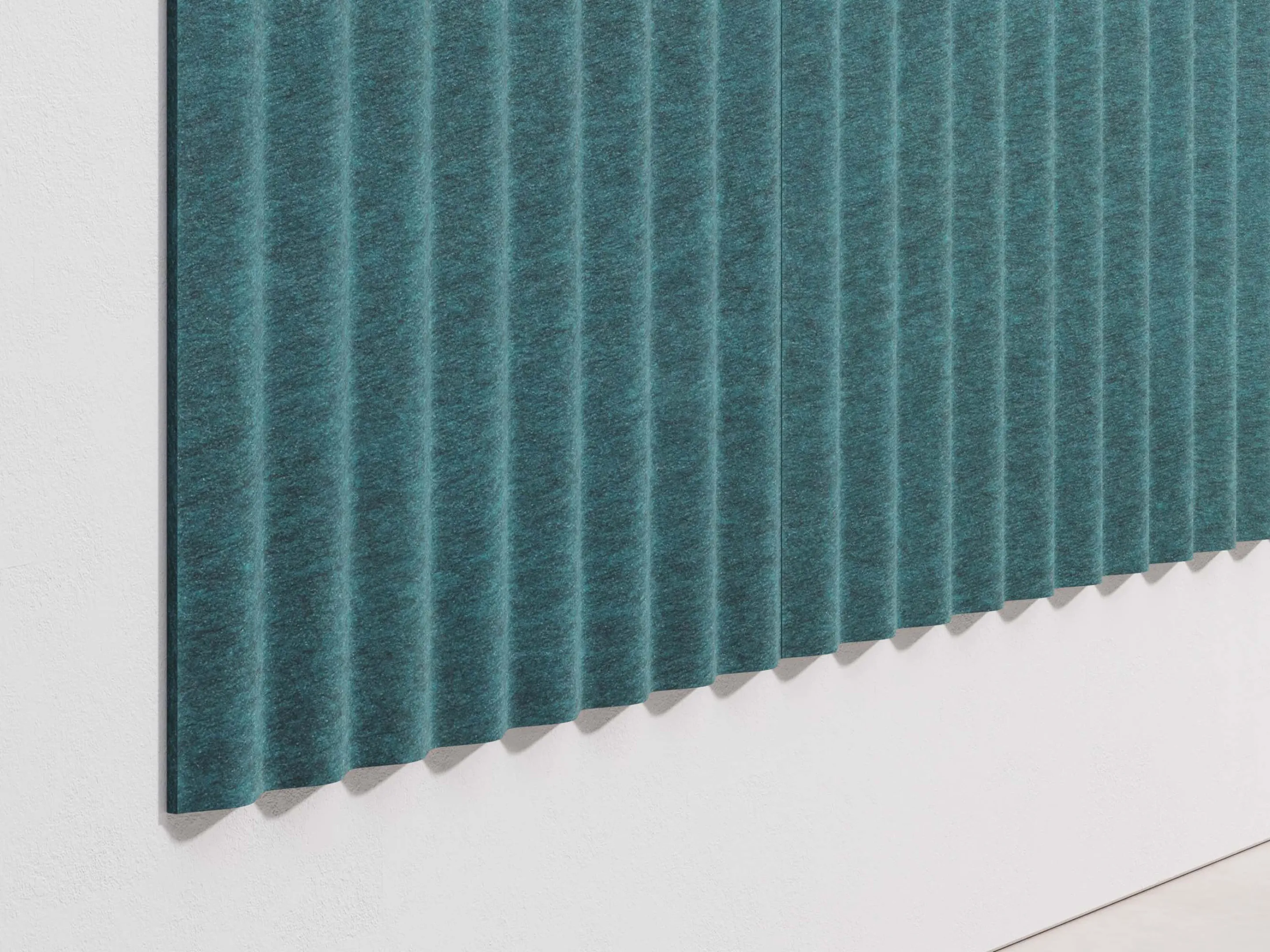 Uit gerecycled PET flessen gevormde akoestische panelen. Afmeting: 2390x790x35mm (HxBxD)