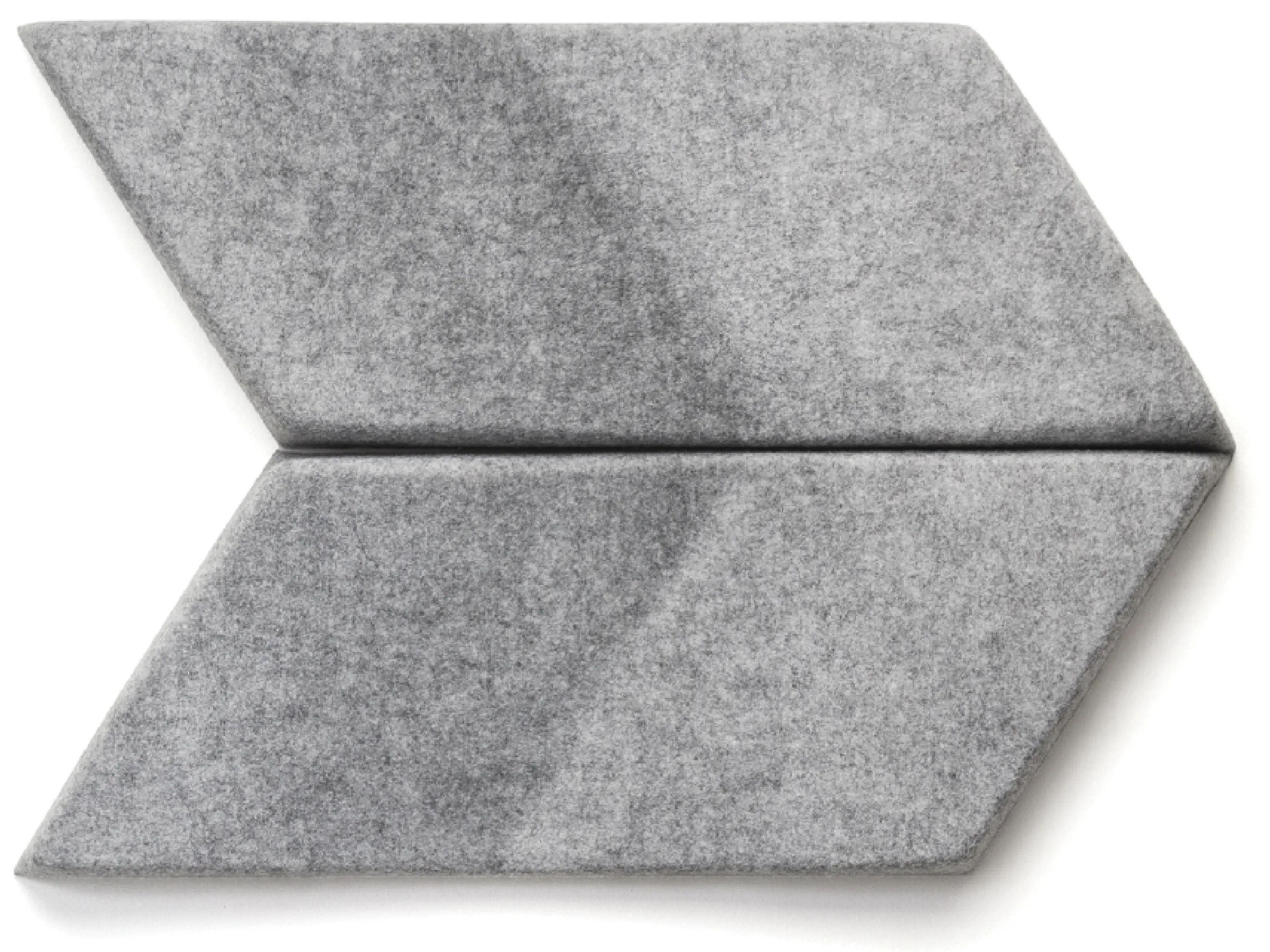Parallelogramvormige akoestische paneel met een NRC Waarde van 0,80. Set van 2 stuks. Totale breedte 50cm, zijdes 40x20cm. Bevestiging d.m.v. magneetprofiel. Geschikt voor montage aan een wand. Inclusief schroeven, pluggen en installatiehandleiding.