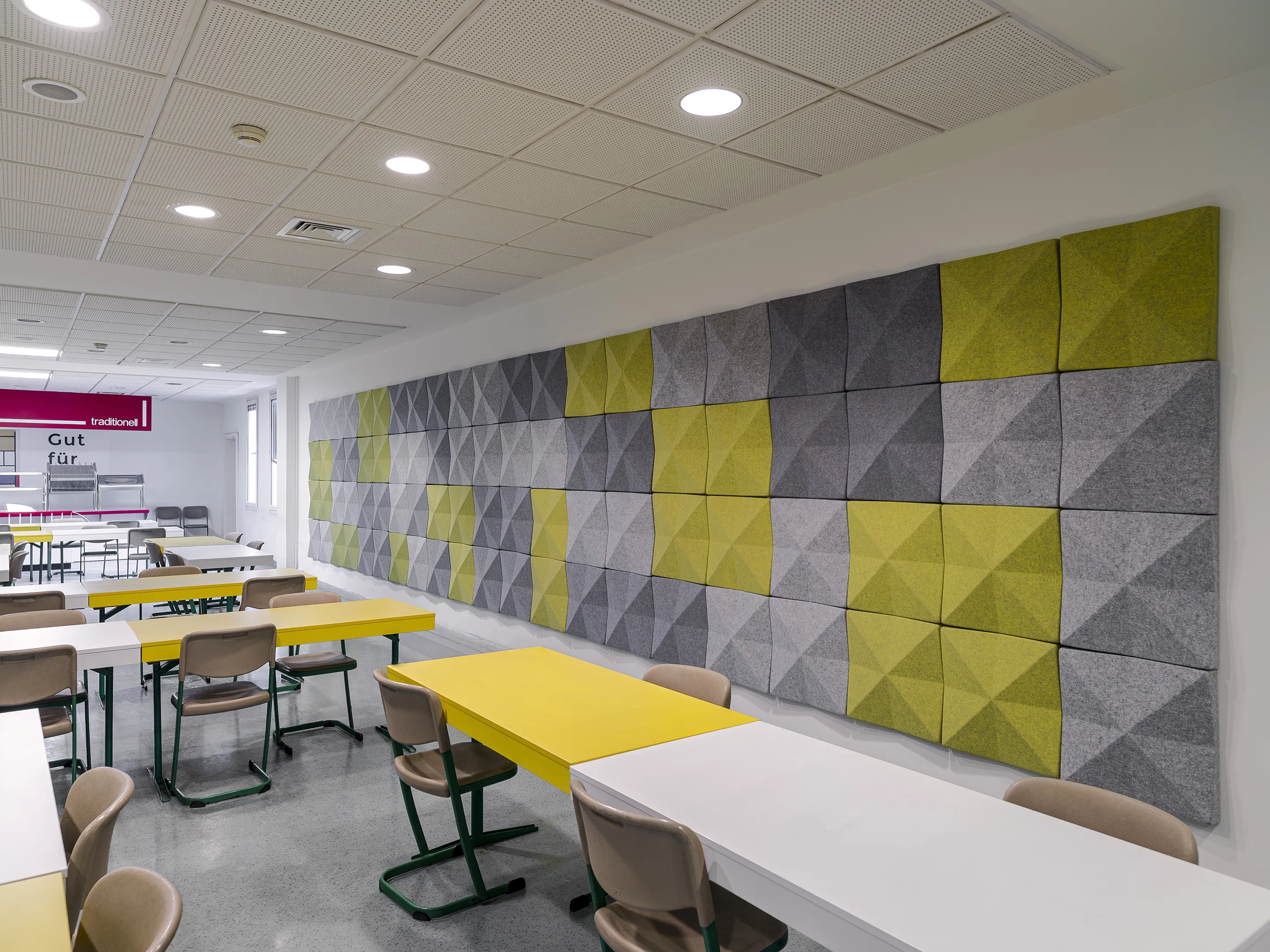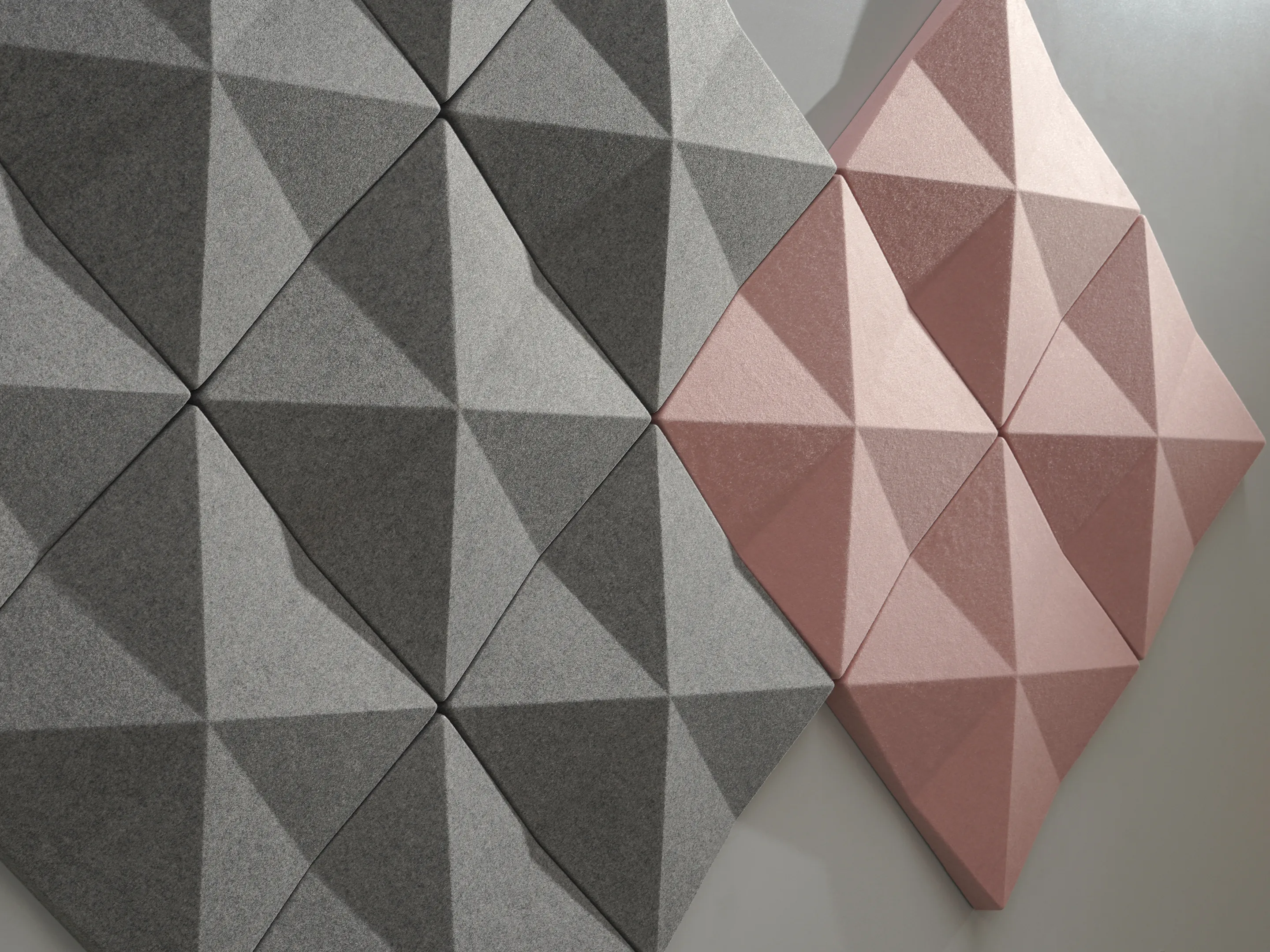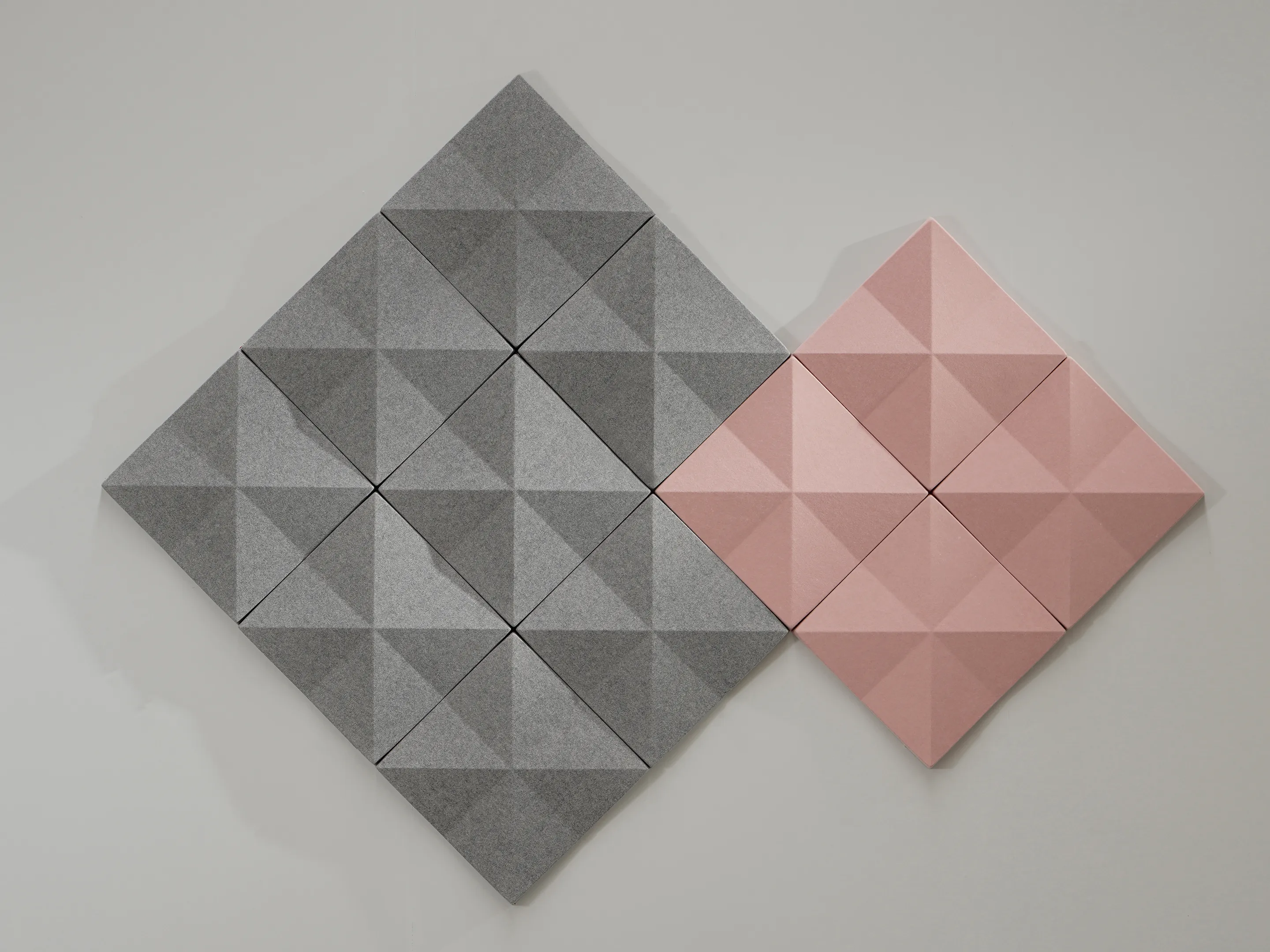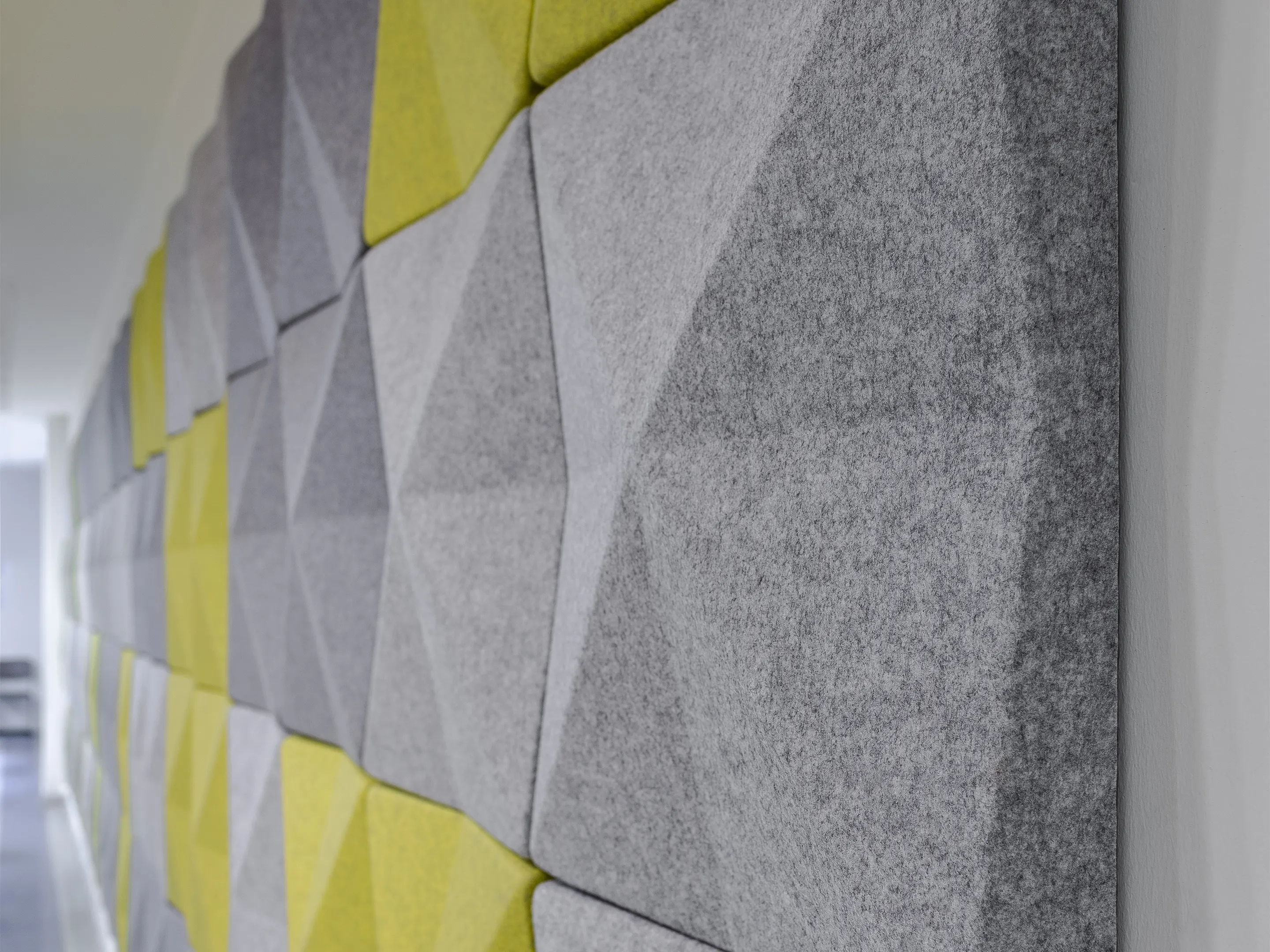 Vierkant akoestisch paneel met een driehoek patroon en een NRC Waarde van 0,80. Bevestiging d.m.v. klittenbandprofiel. Geschikt voor bevestiging aan een wand. Inclusief schroeven, pluggen en installatiehandleiding.