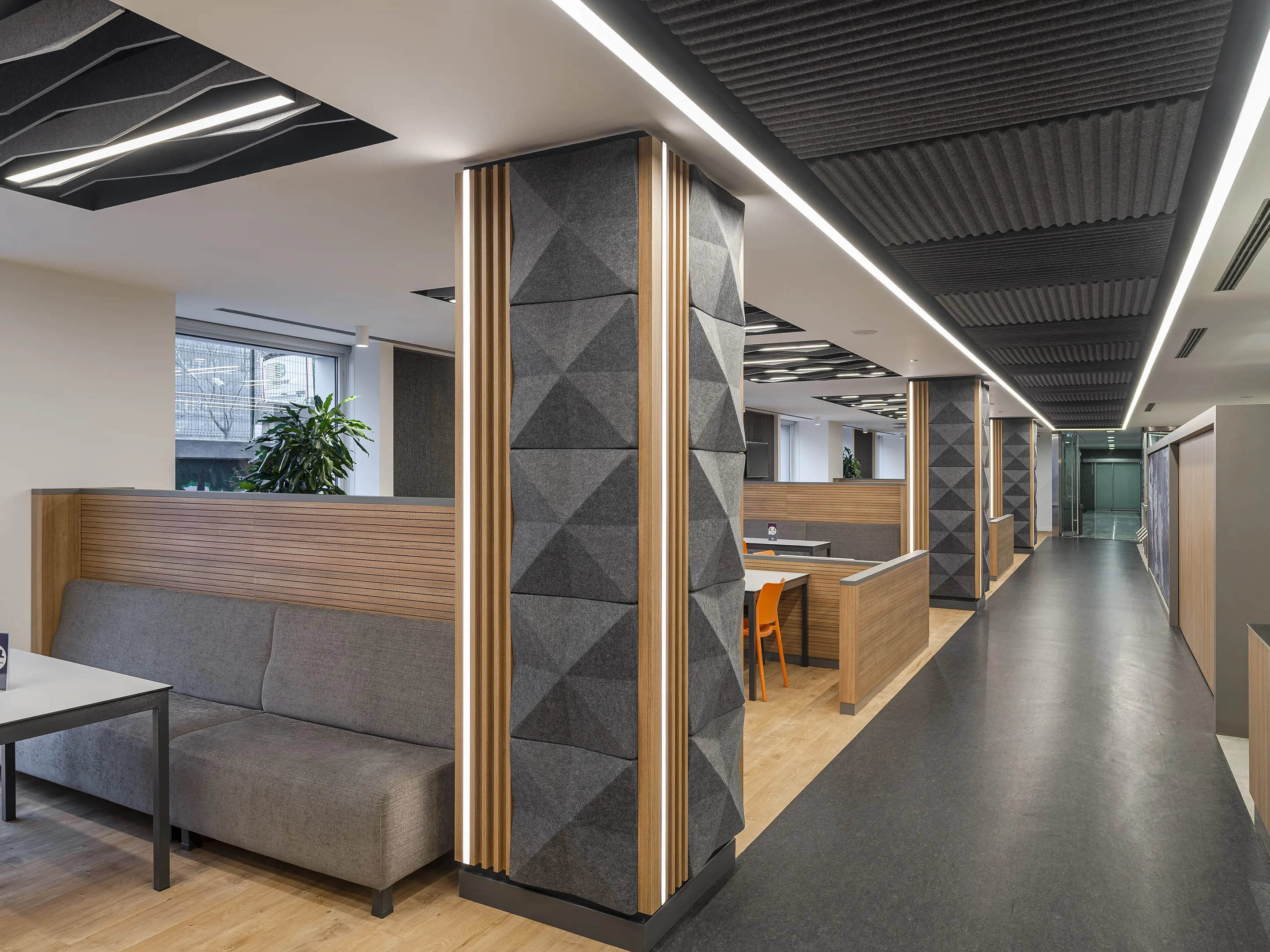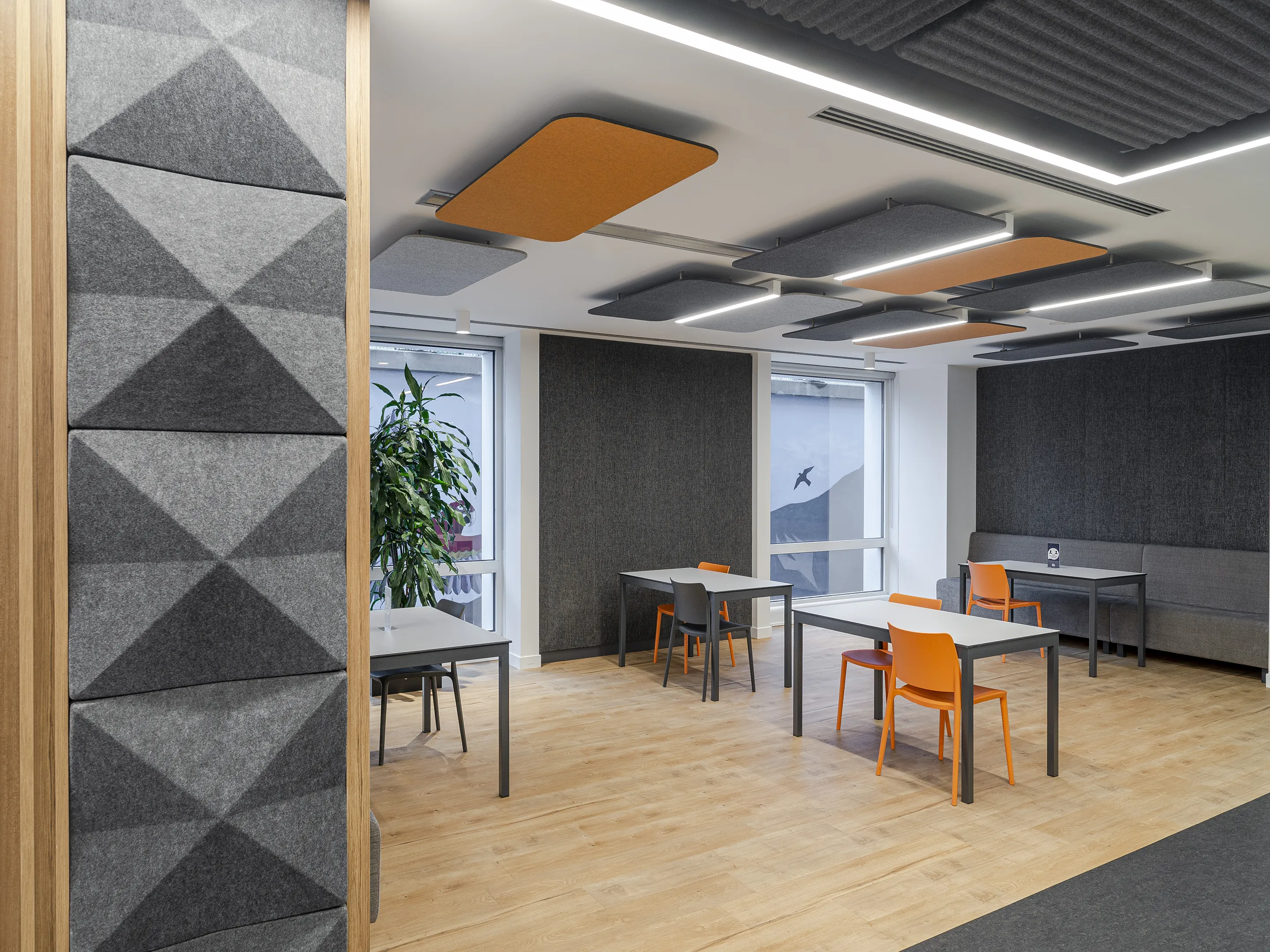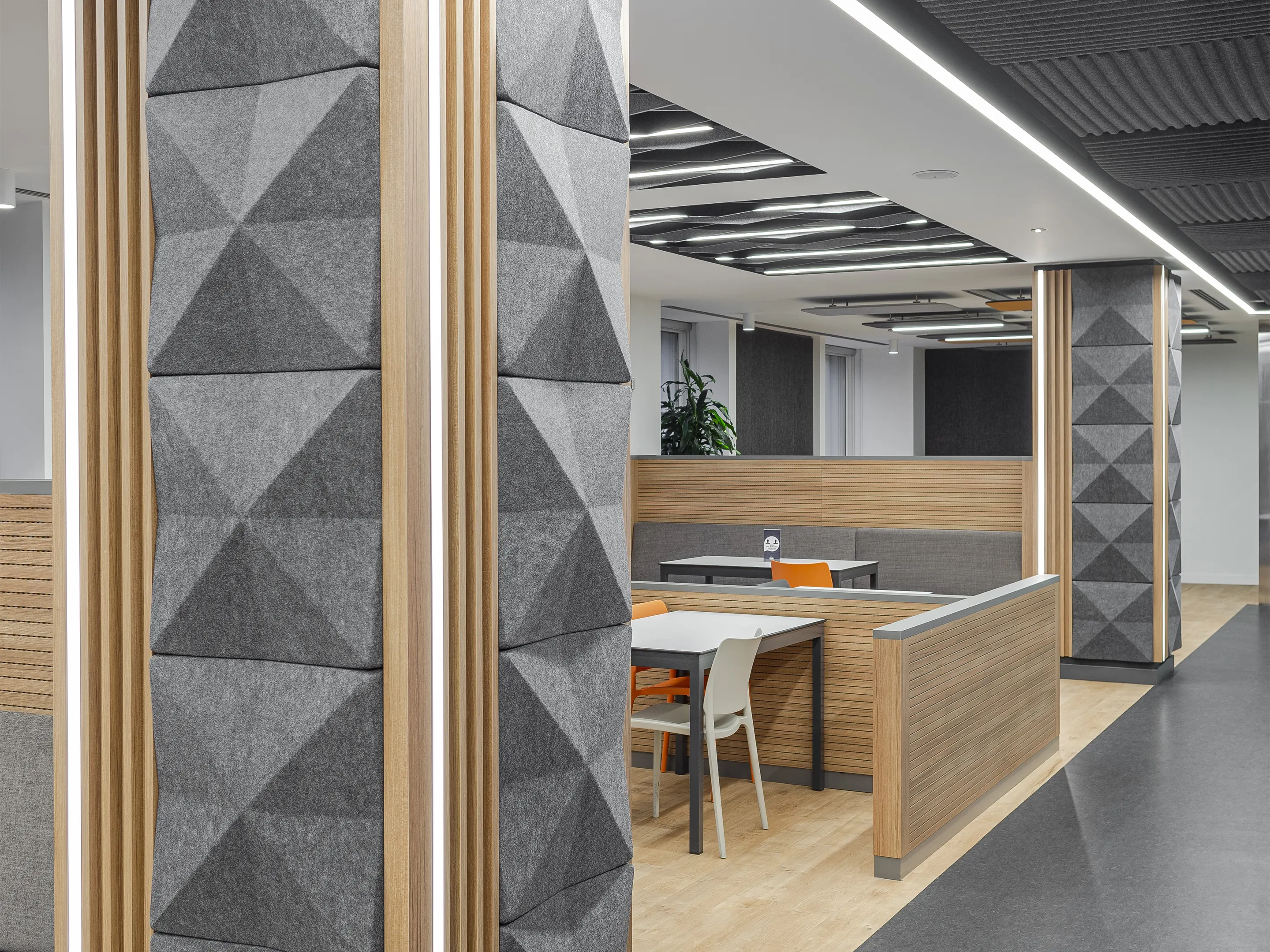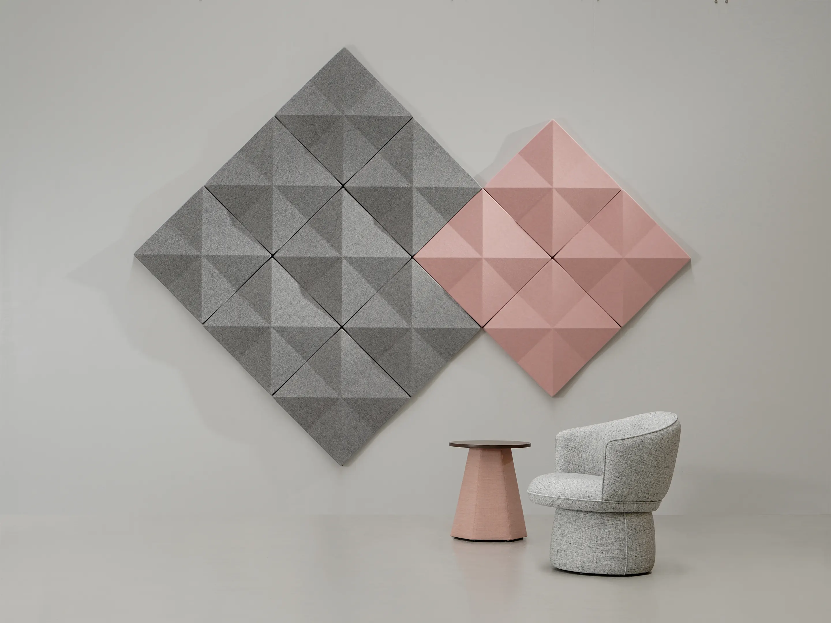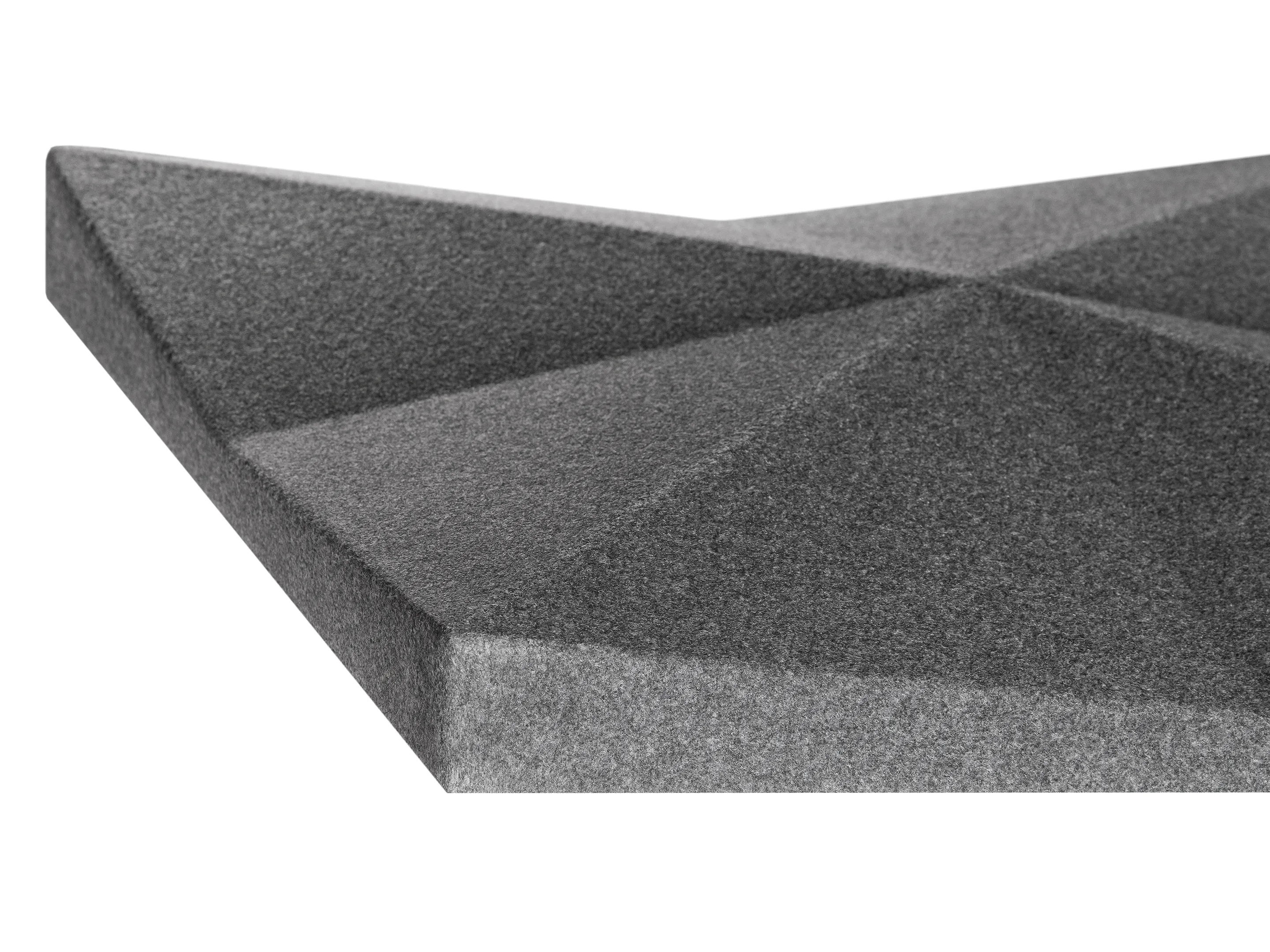 Vierkant akoestisch paneel met een driehoek patroon en een NRC Waarde van 0,80. Bevestiging d.m.v. magneetprofiel. Geschikt voor bevestiging aan een wand of plafond. Inclusief schroeven, pluggen en installatiehandleiding.