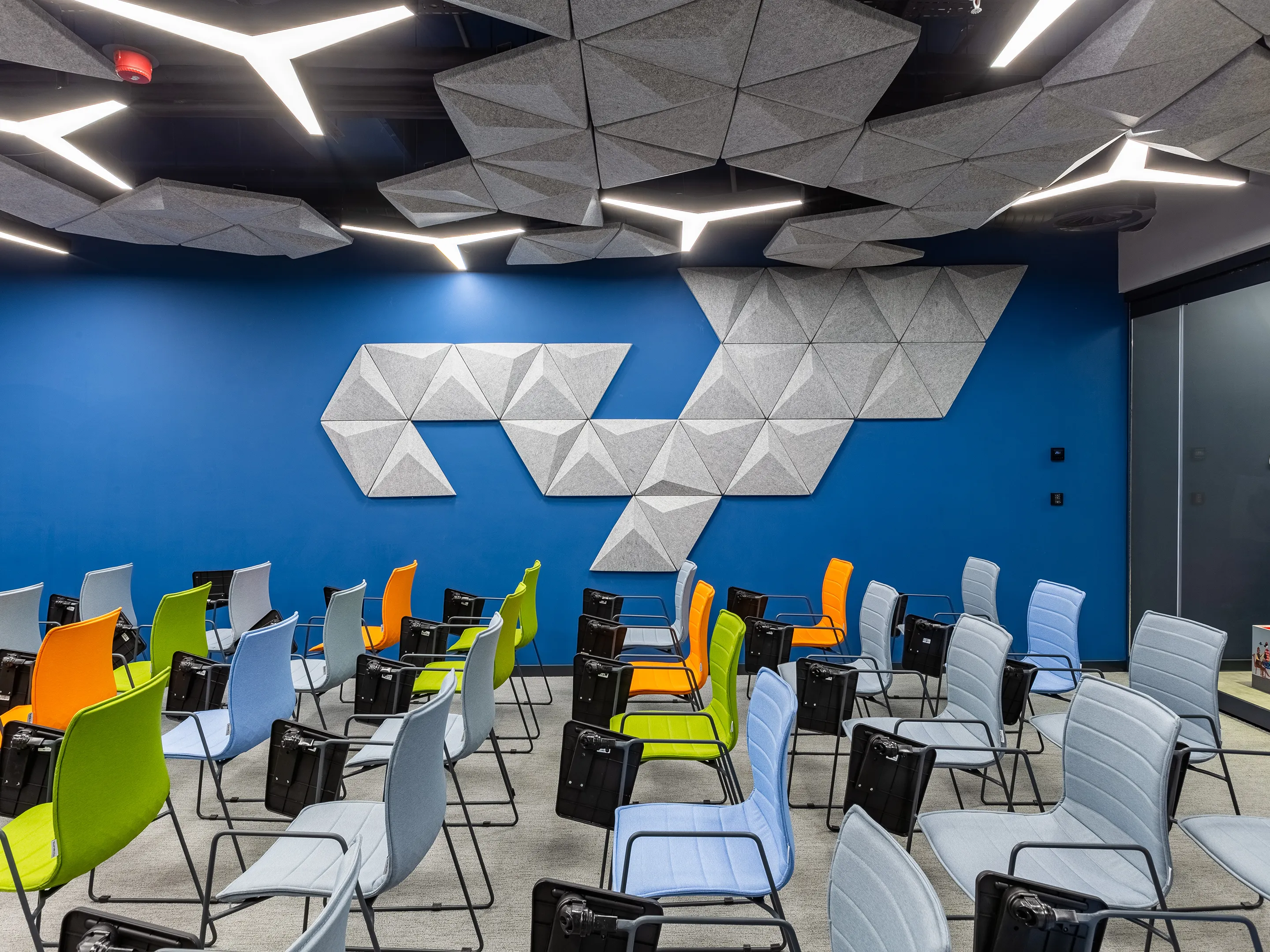 Driehoekig akoestisch paneel met een driehoek patroon en een NRC Waarde van 0,80. Bevestiging d.m.v. klittenbandprofiel. Geschikt voor bevestiging aan een wand. Inclusief schroeven, pluggen en installatiehandleiding.