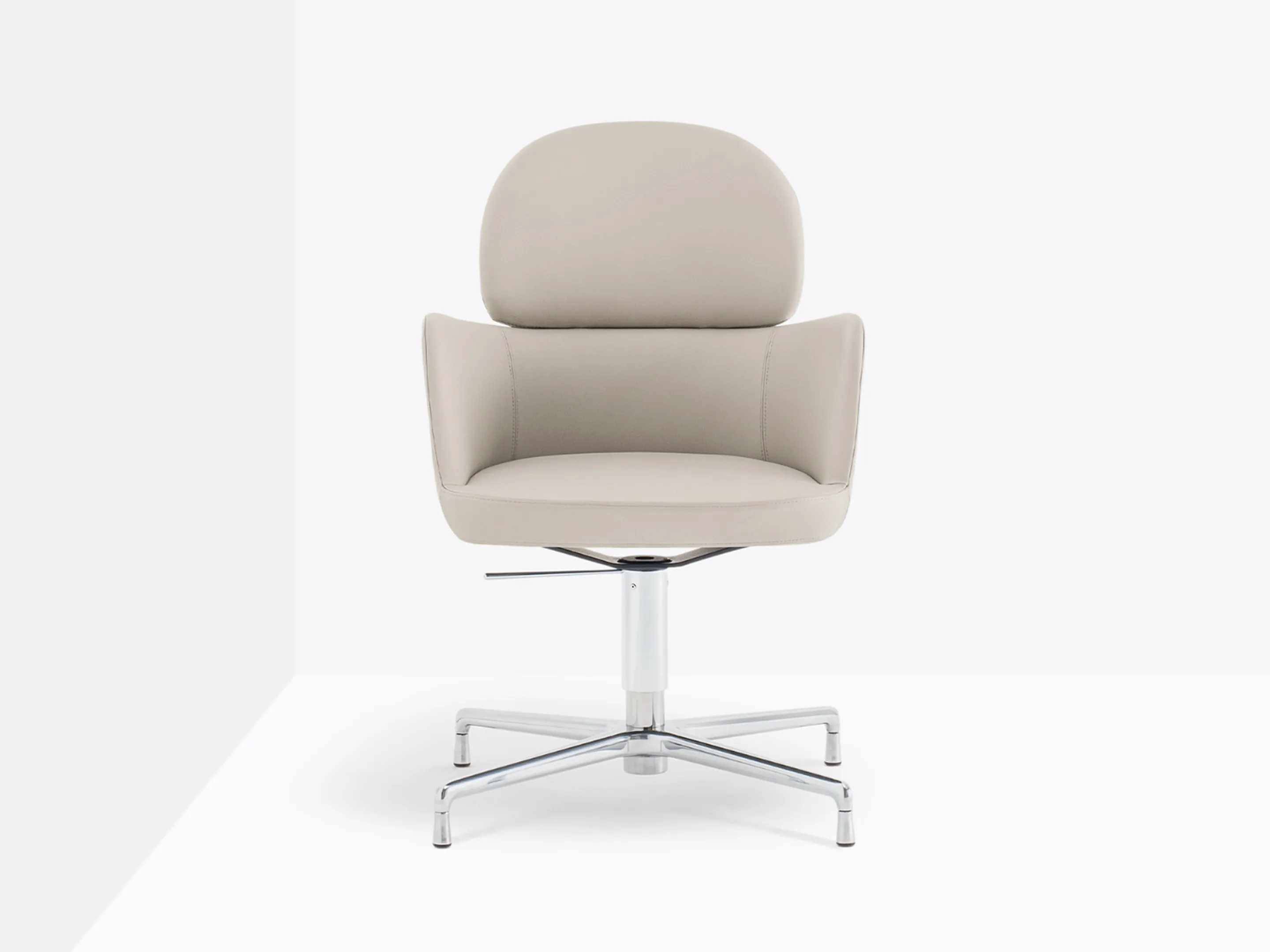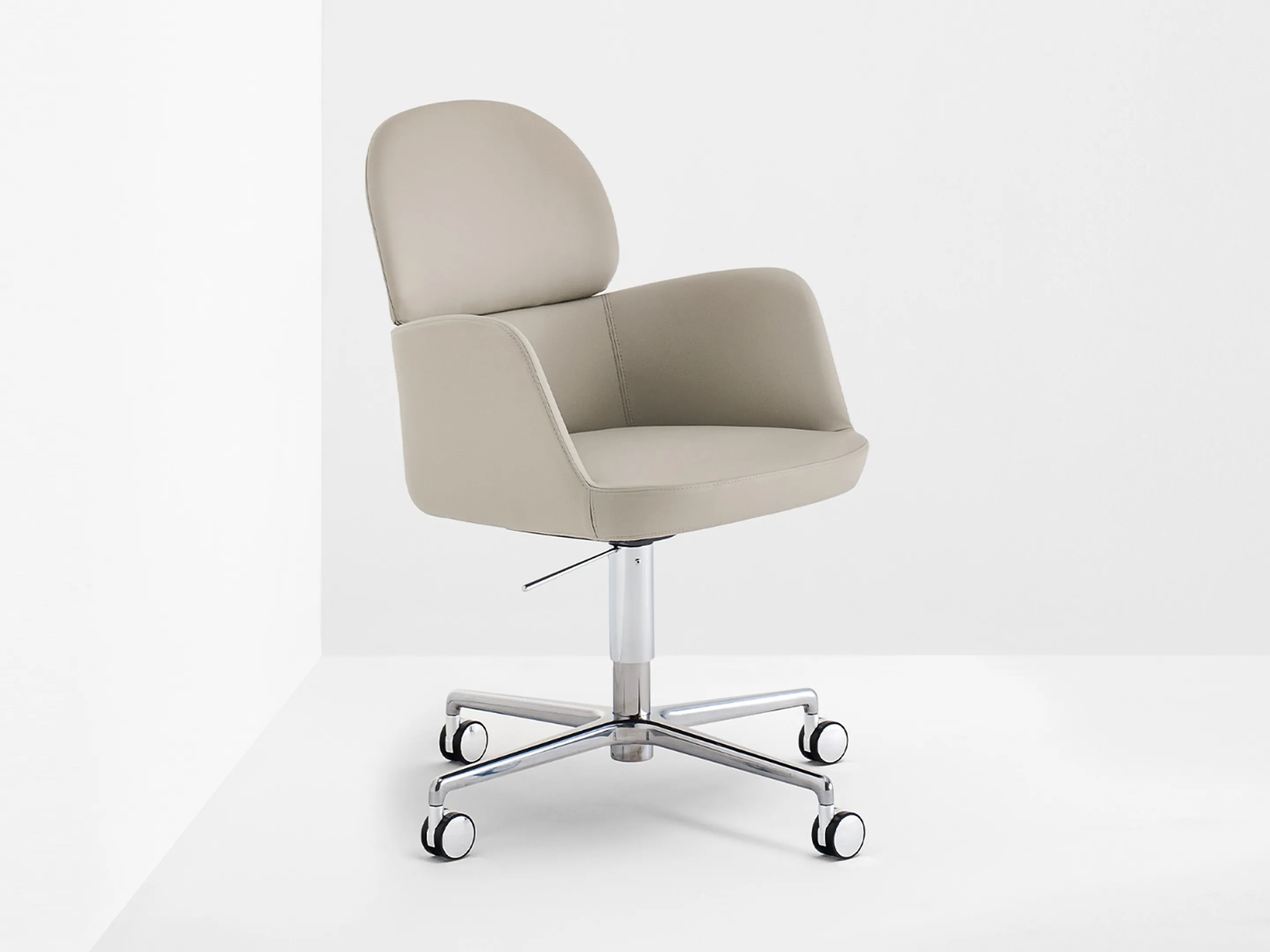 Volledig gestoffeerd op een 4-teens kruis met glijders. Hoogteinstelbaar en draaibaar.