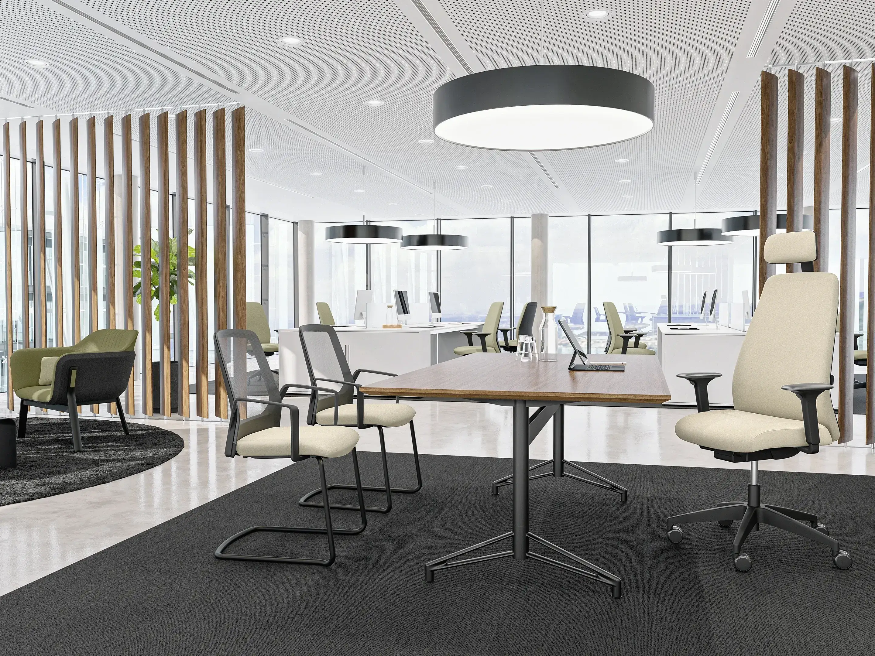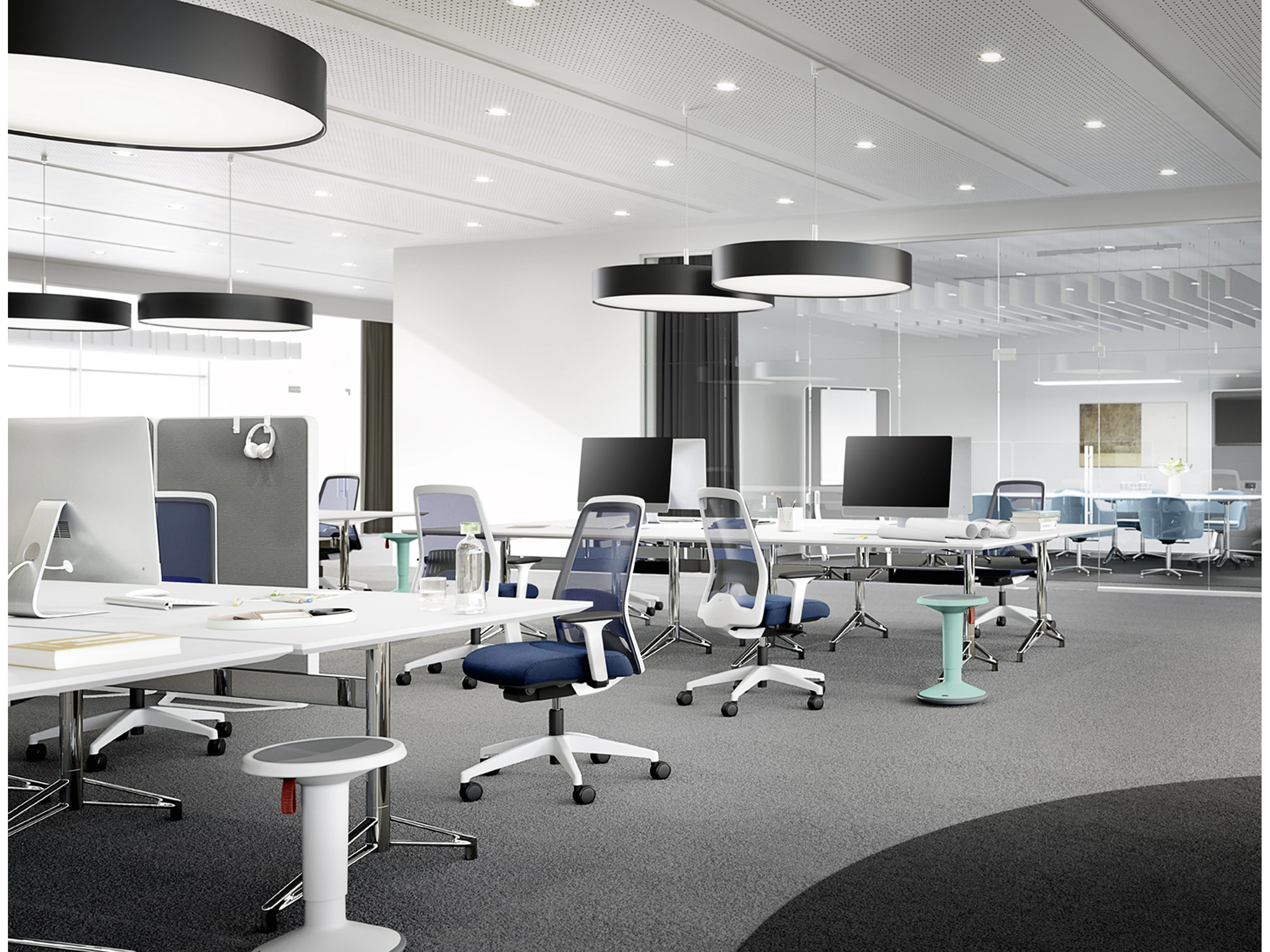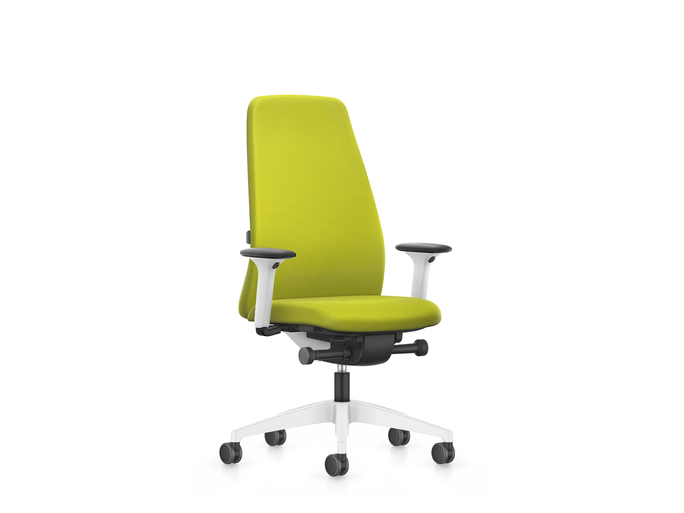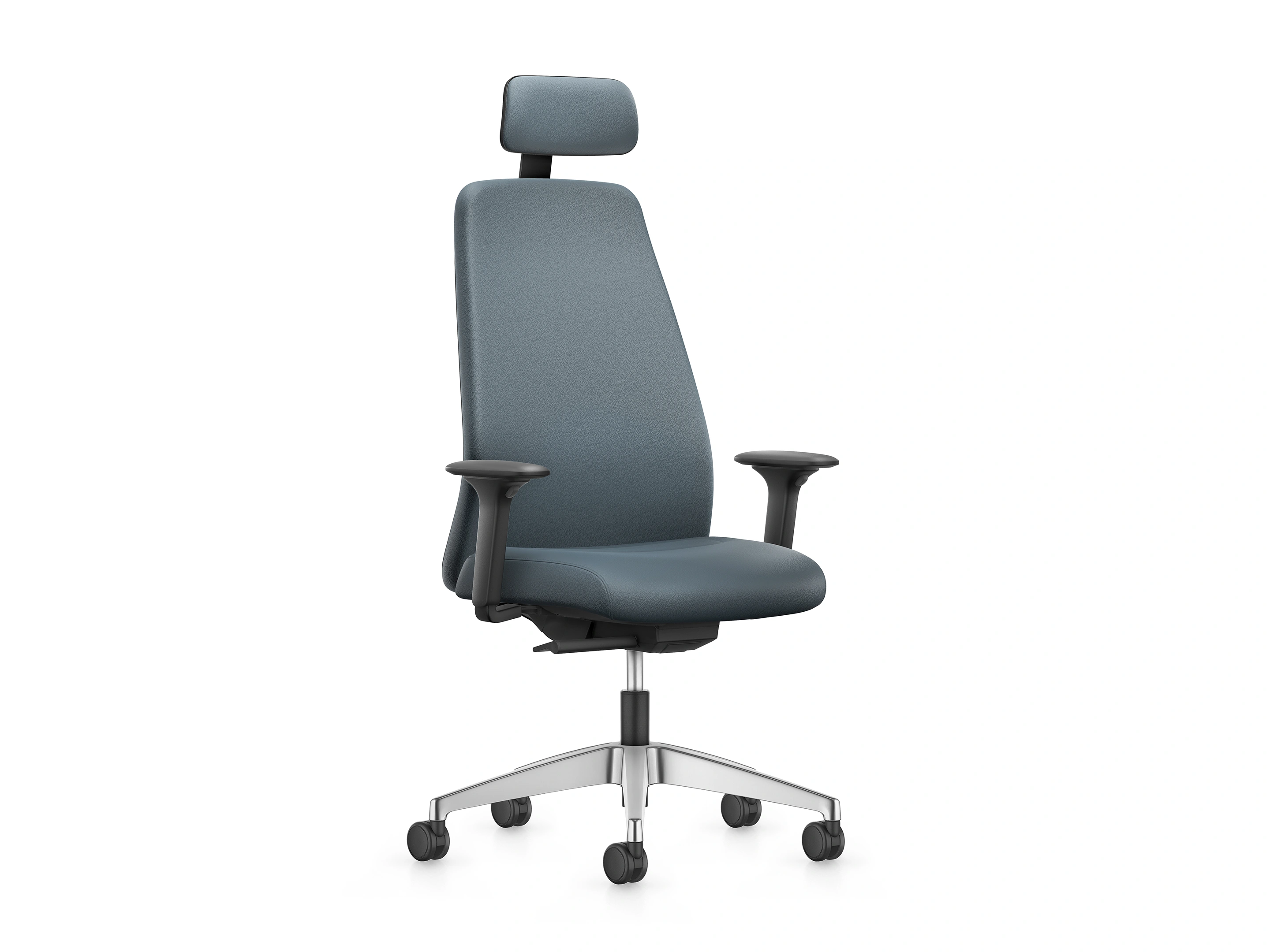 Standaard met: Synchroonmechaniek met gewichtsregeling, 4D armleggers (hoogte, 2x breedte, diepte verstebaar), Zithoogte-, Zitdiepte verstelling, hoogte verstelbare lendensteun, Universele wielen. Volledig zwart