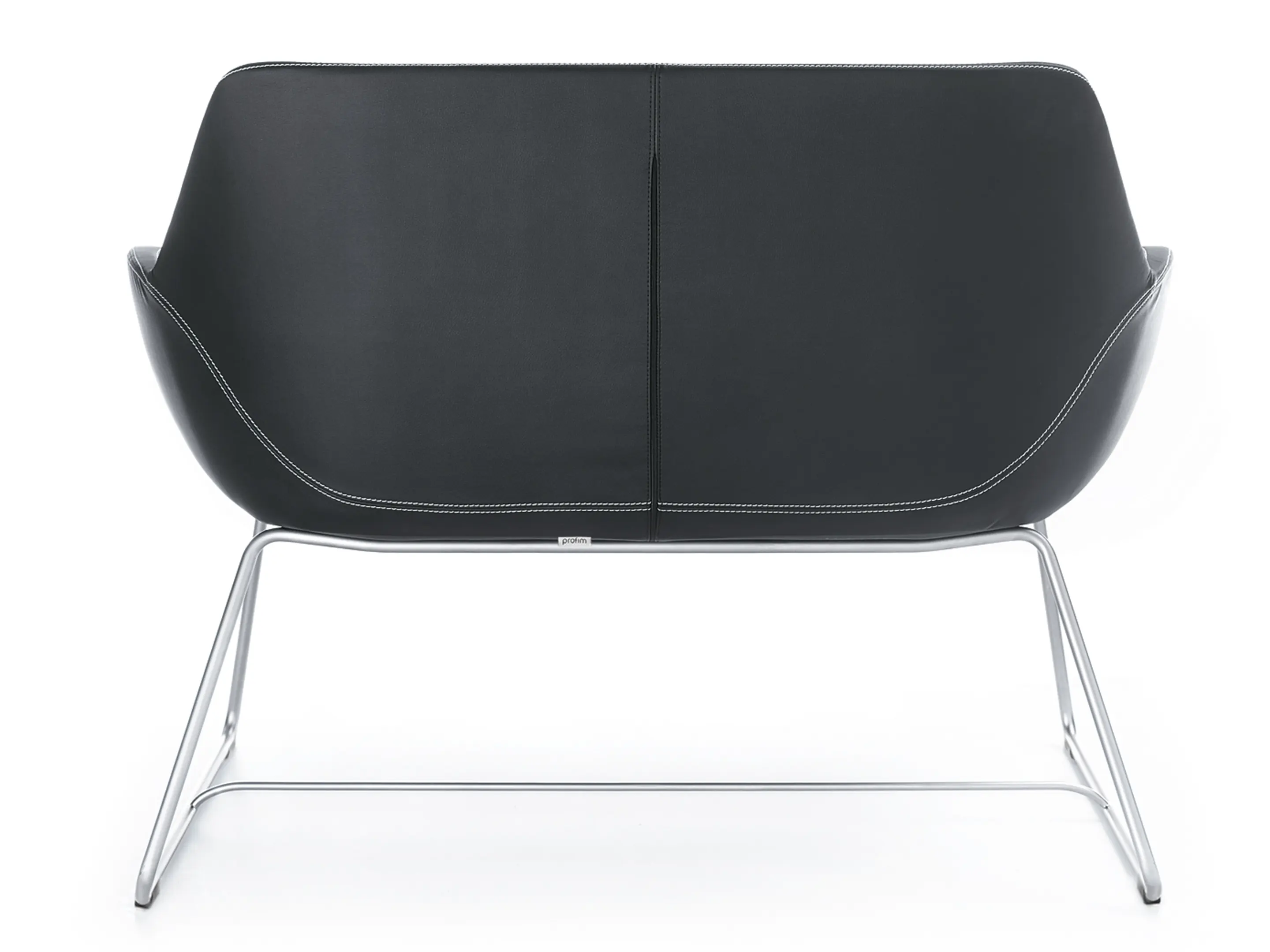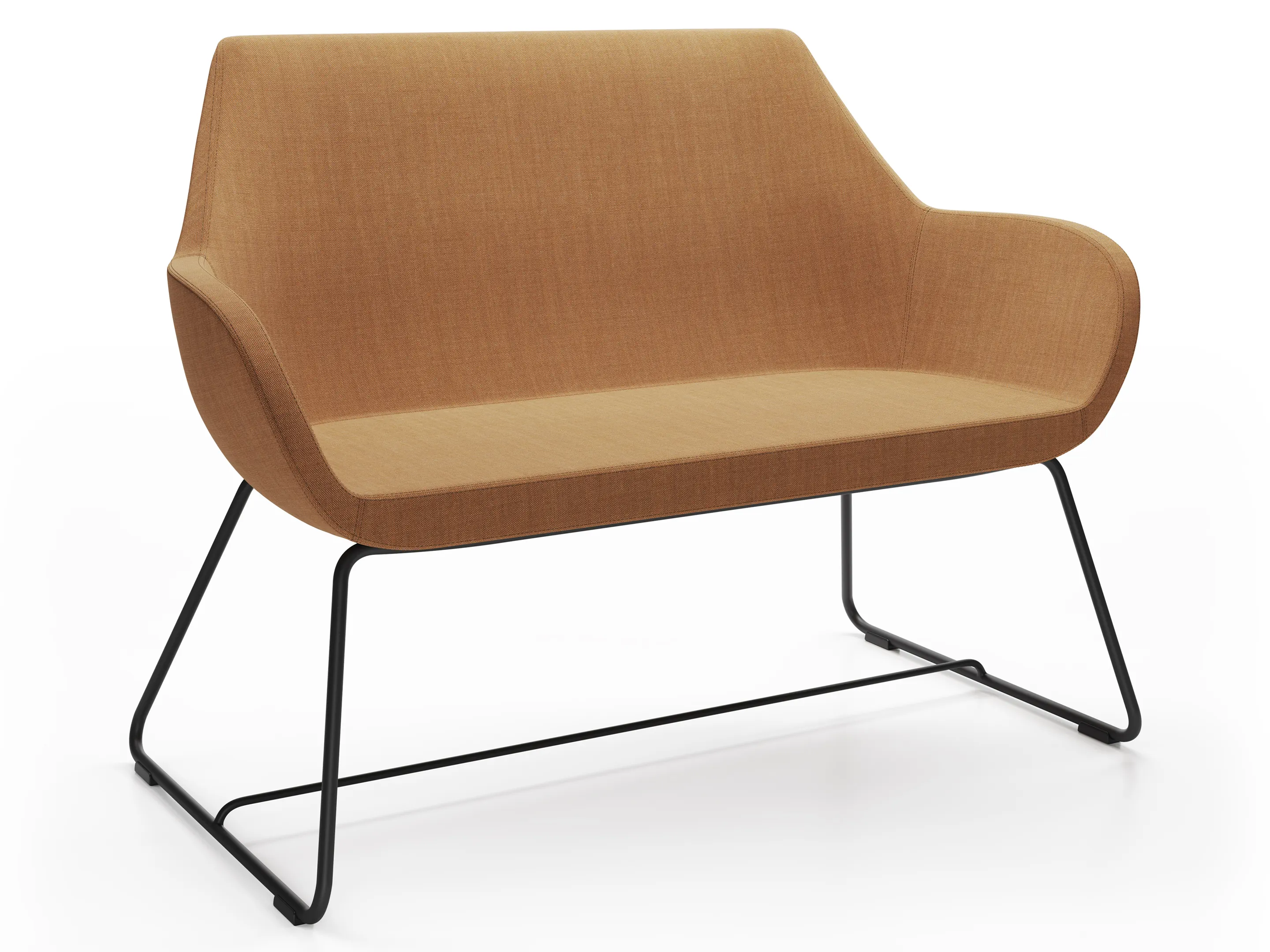 Volledig gestoffeerde 2-zits bank op een sledeframe.