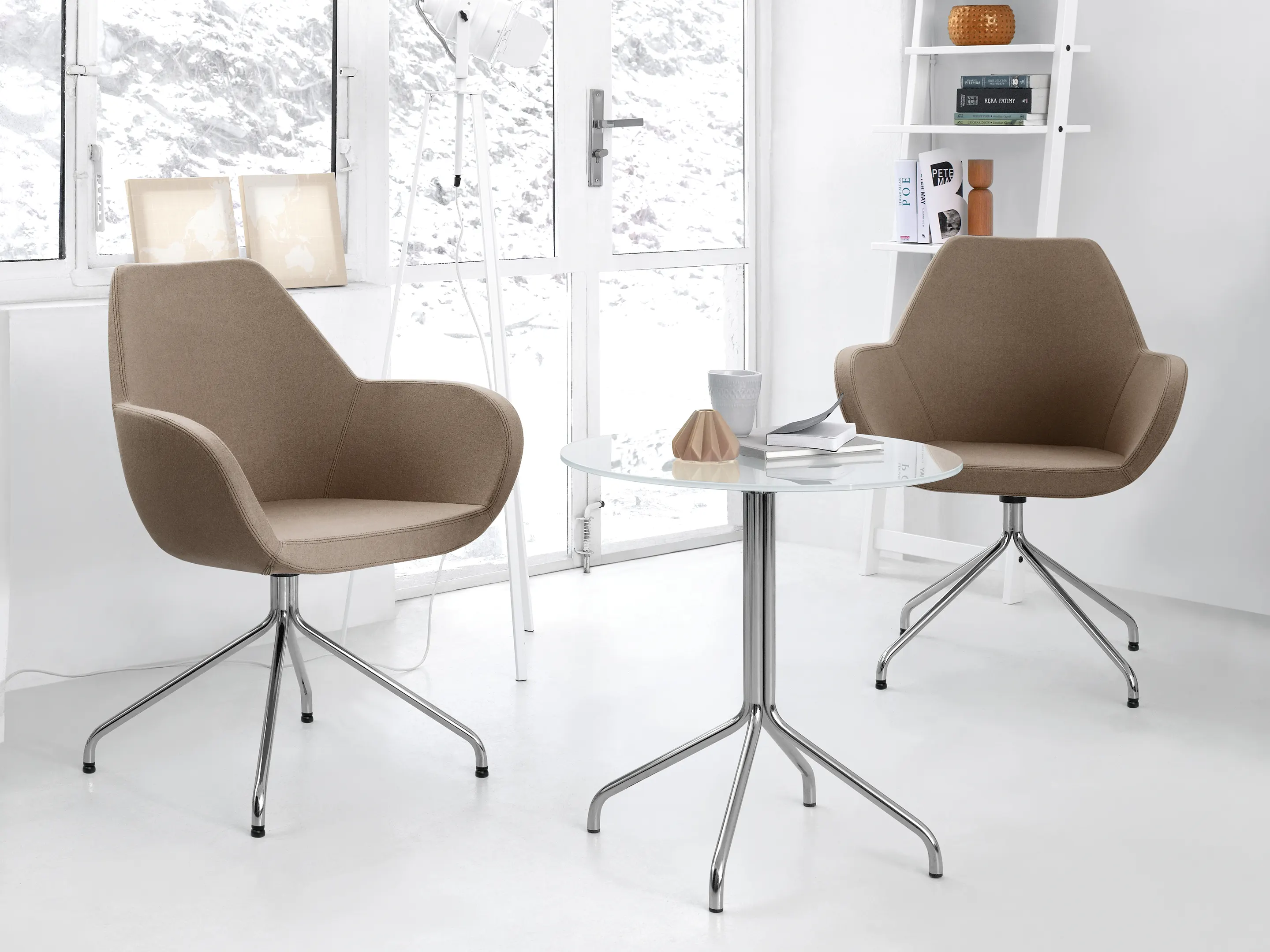 Volledig gestoffeerde fauteuil op een 5-teens kruis met economic mechanisme. Draaibaar.