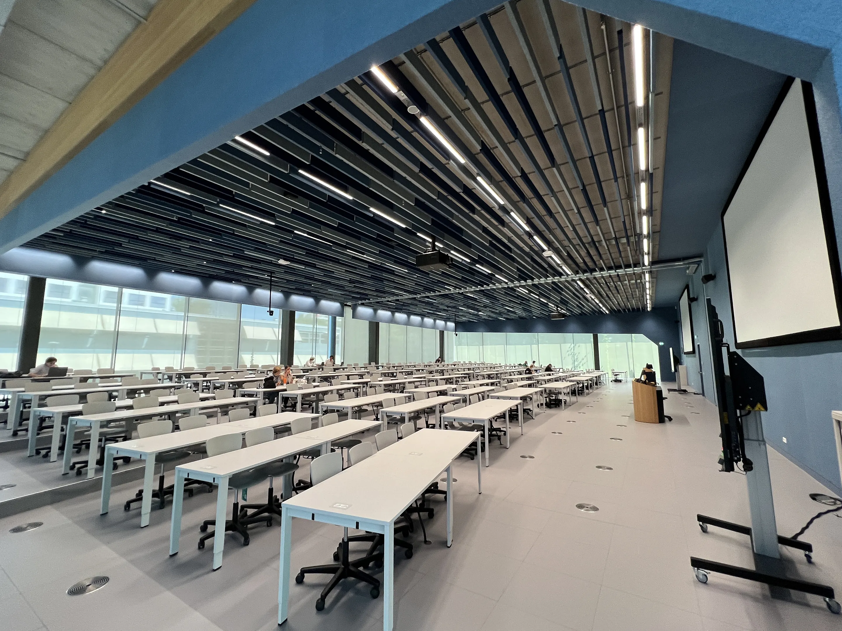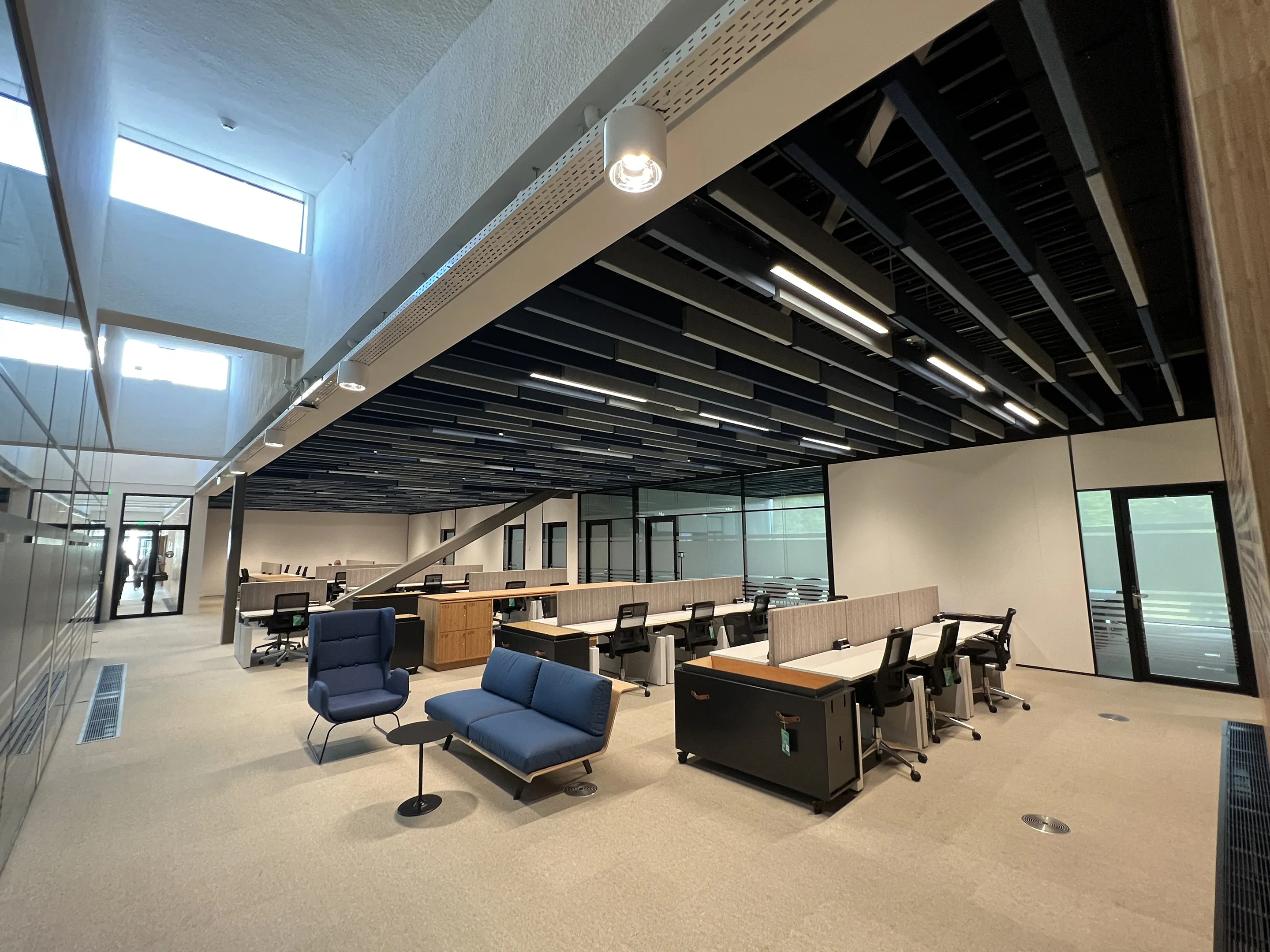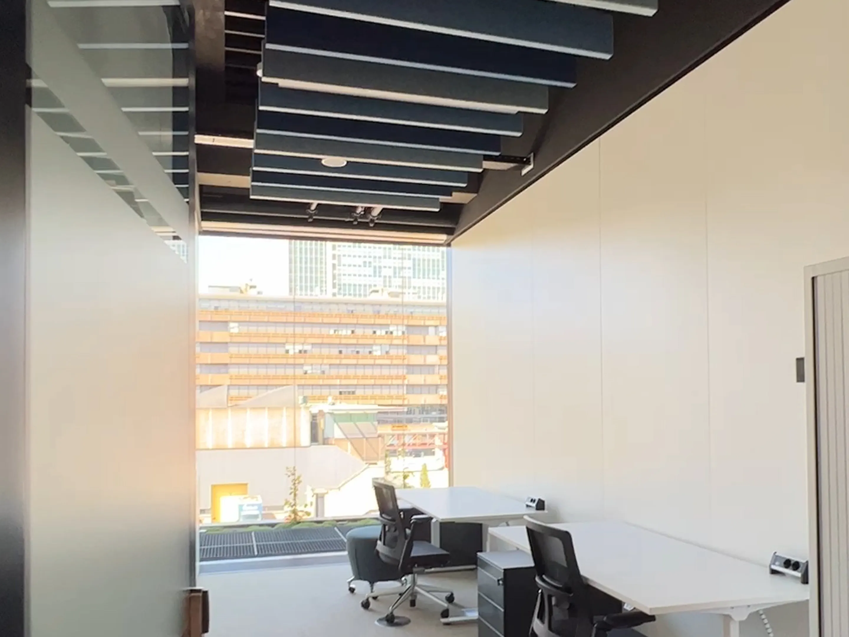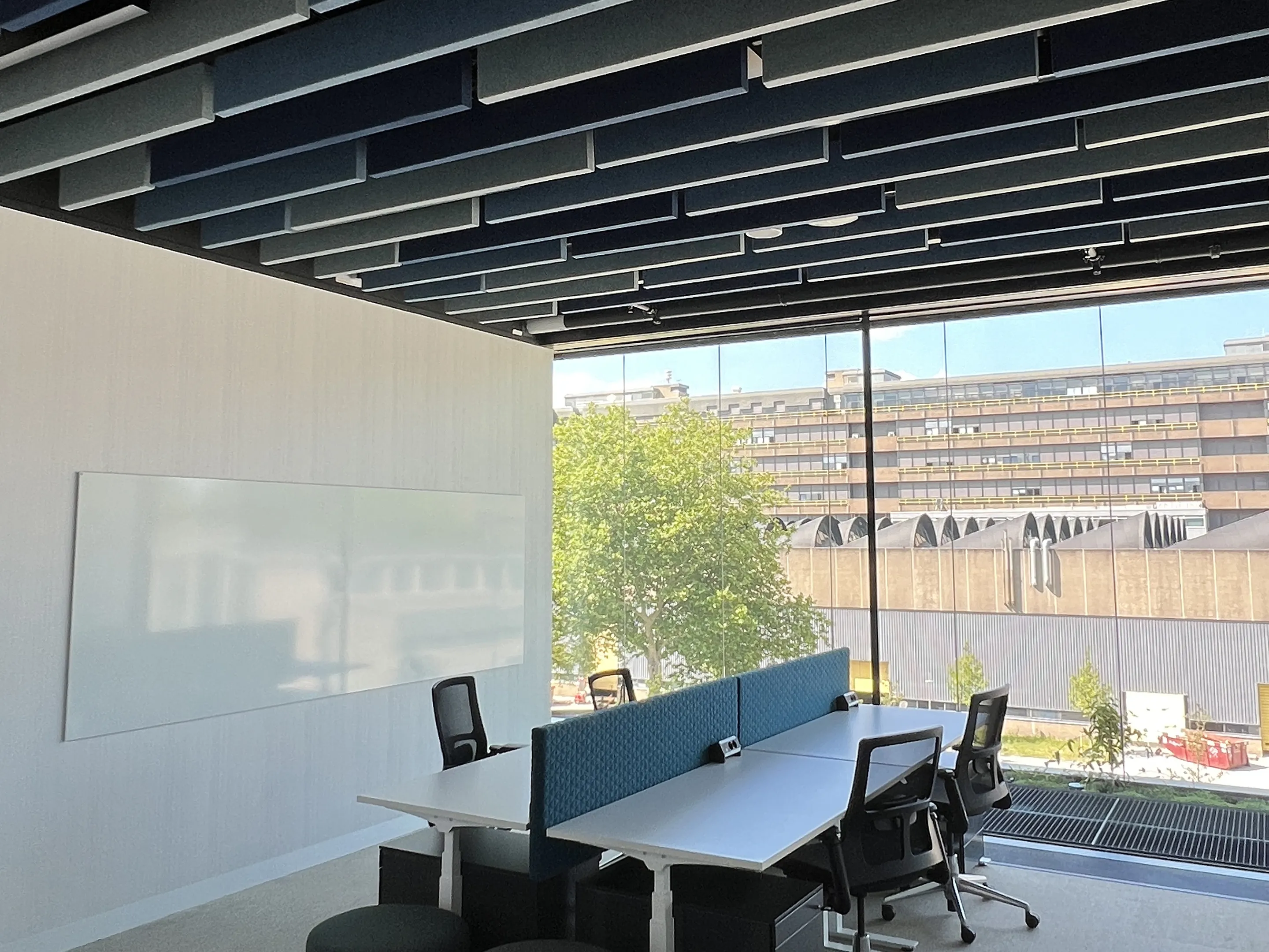Akoestisch plafondpaneel zonder patroon, verticaal hangend aan het plafond en een NRC Waarde van 0,6. Prijs is per stuk. Incl. frame, ophangset en installatiehandleiding.