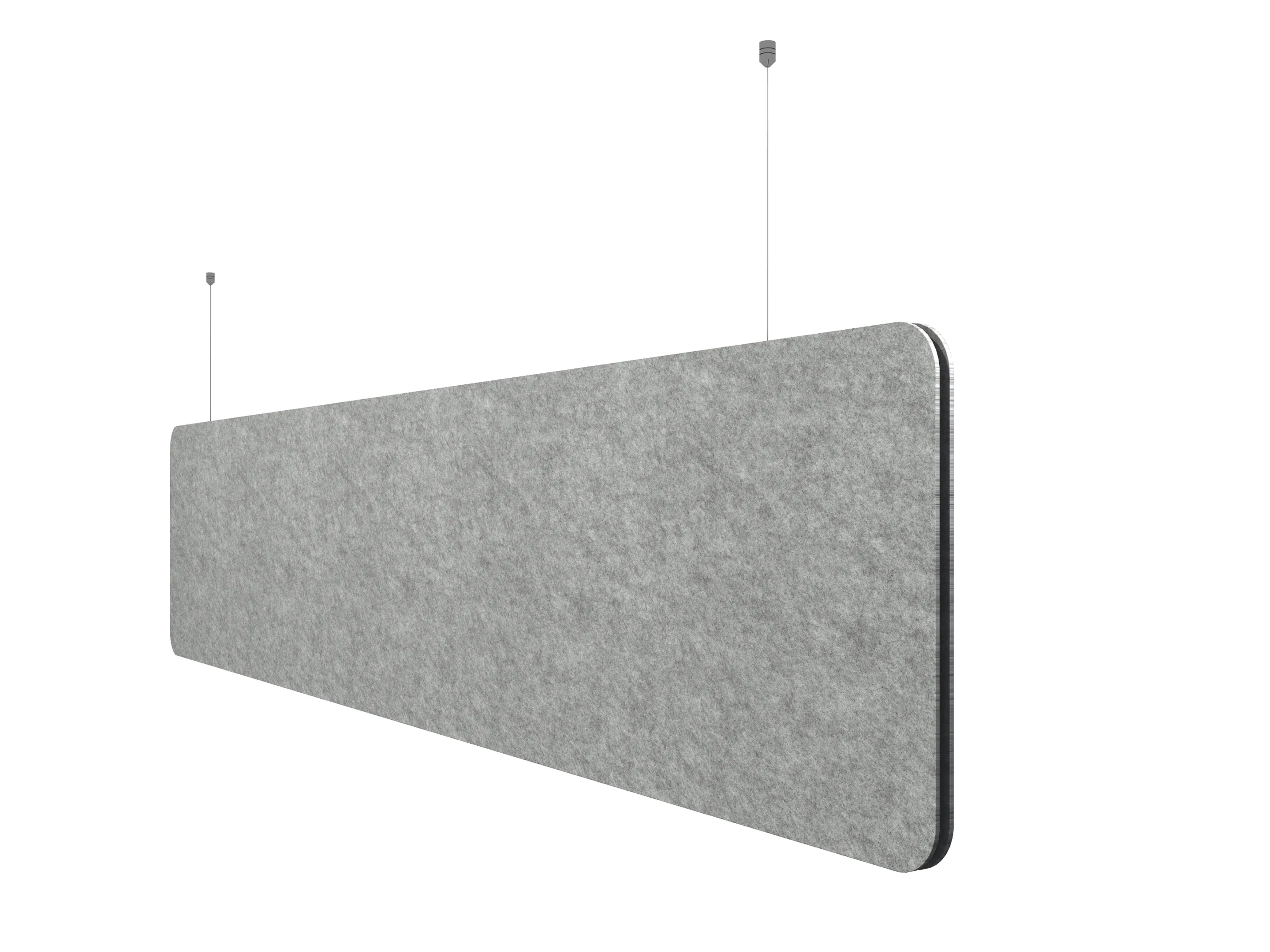 Akoestisch plafondpaneel zonder patroon, horizontaal hangend aan het plafond en een NRC Waarde van 0,6. Incl. frame, ophangset en installatiehandleiding.