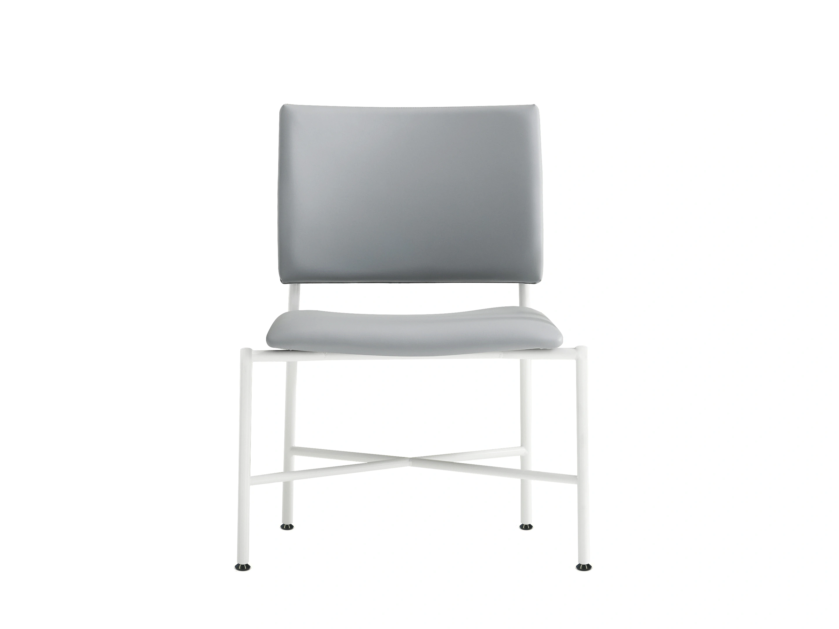 4-poots frame op kunststof glijders met een gestoffeerde zitting en rug. Exclusief armleggers. Niet stapelbaar.