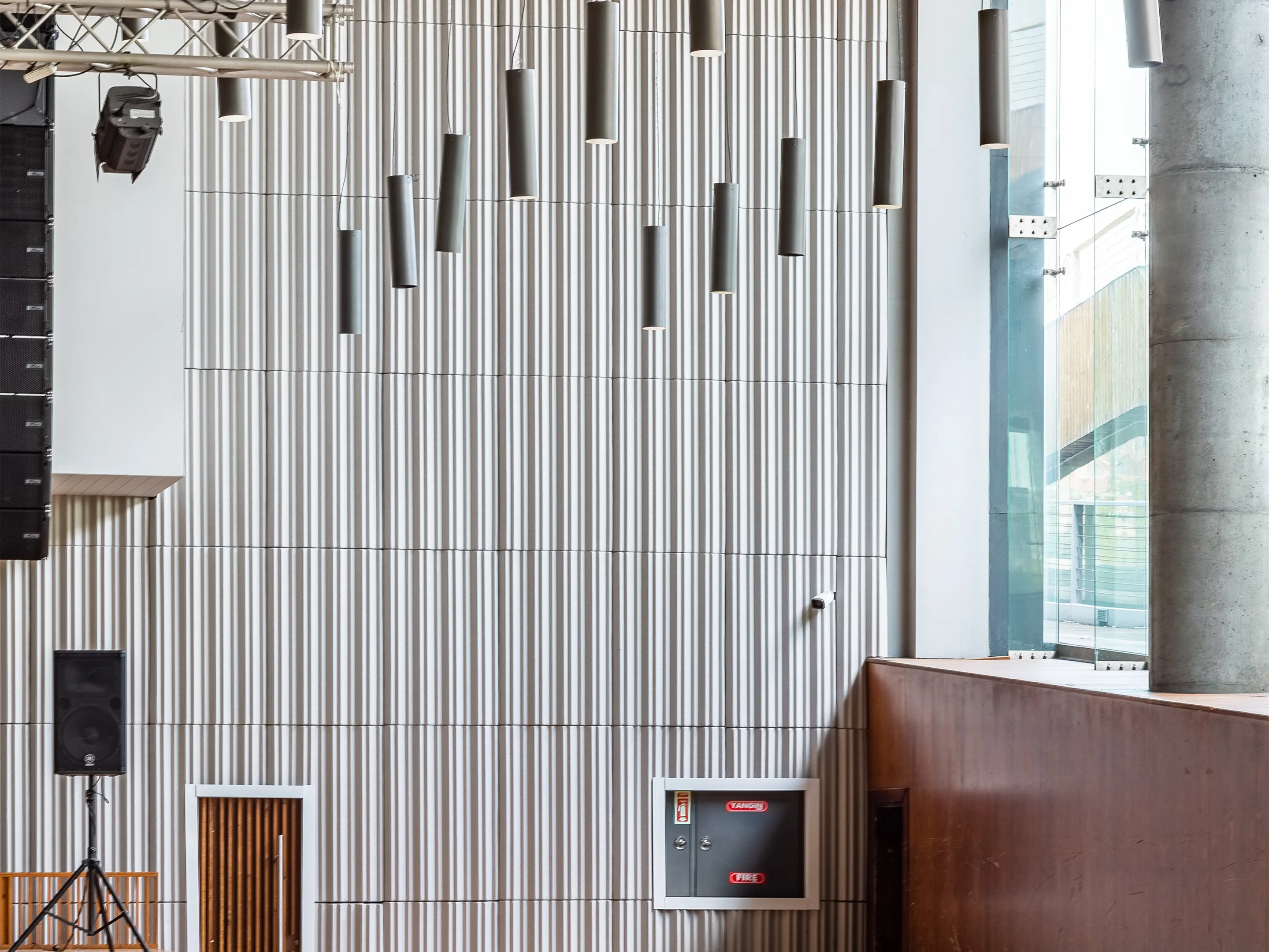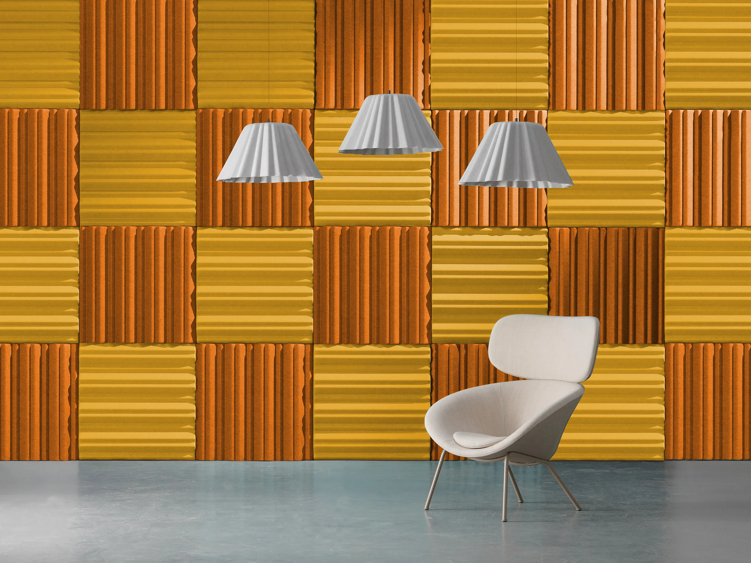 Rechthoekig en gerafeld akoestisch paneel met een vlakke achterwand en een NRC Waarde van 0,60. Bevestiging d.m.v. klittenbandprofiel. Geschikt voor bevestiging aan een wand. Inclusief schroeven, pluggen en installatiehandleiding.