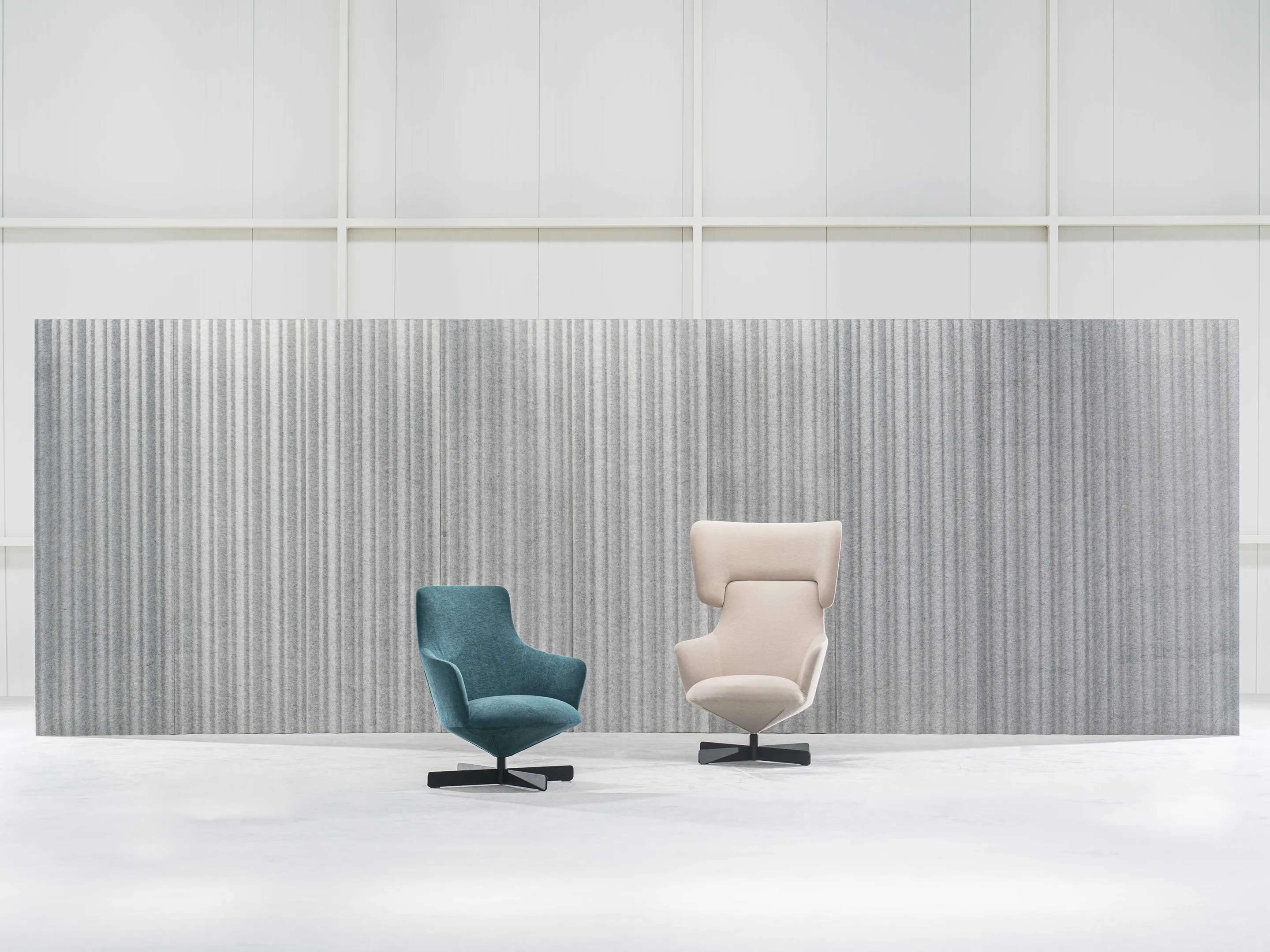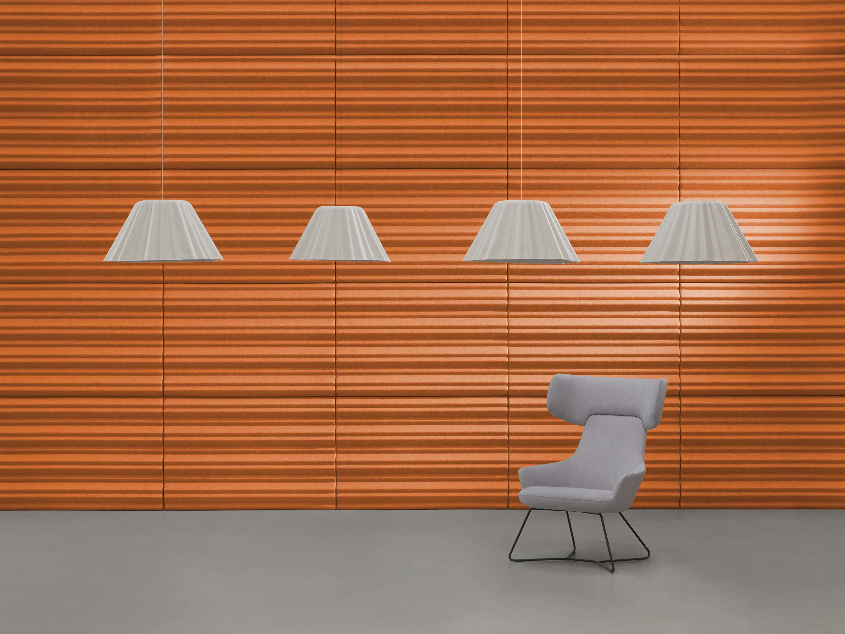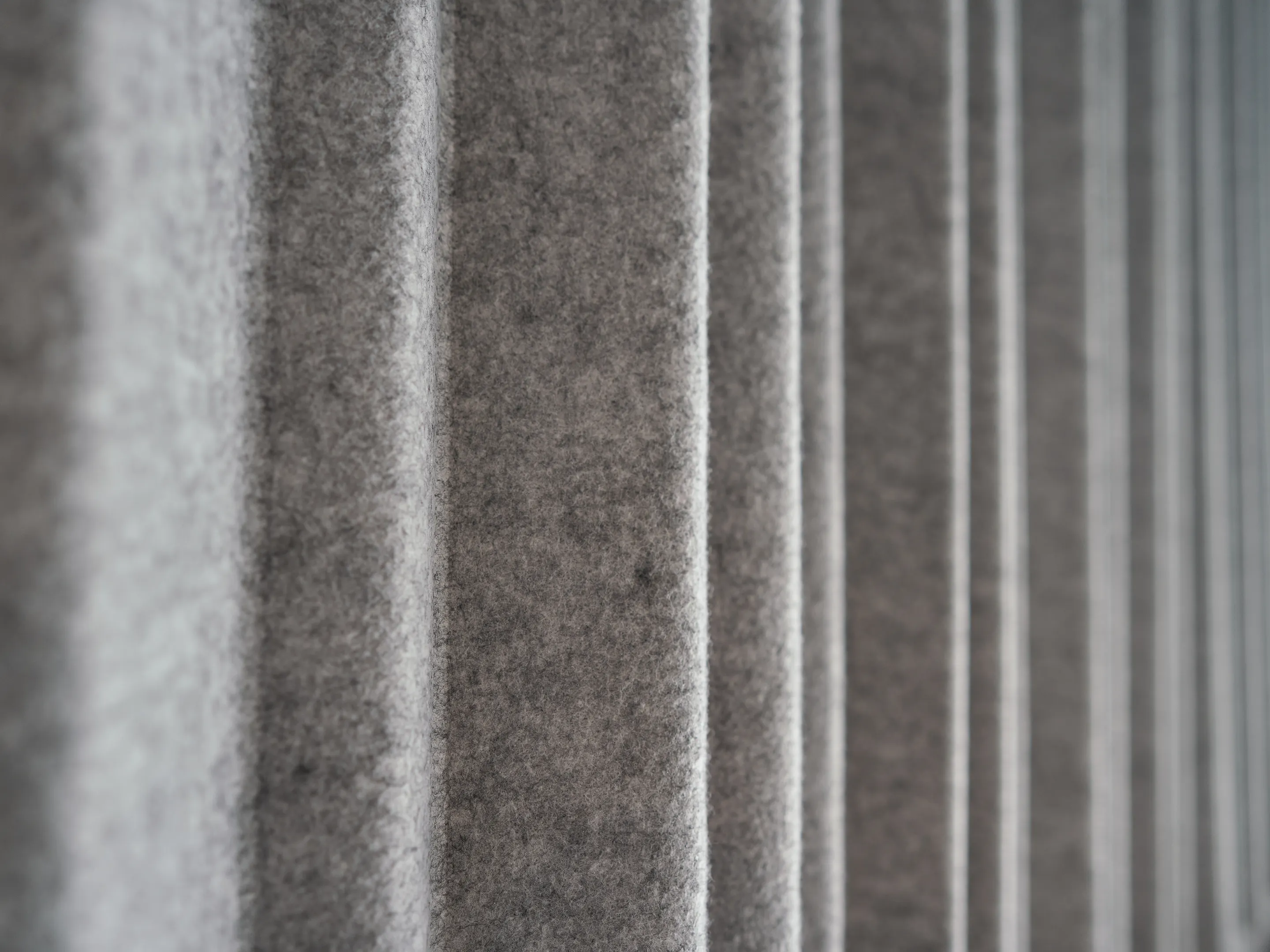 Rechthoekig en gerafeld akoestisch paneel zonder vlakke achterwand met een NRC Waarde van 0,55. Bevestiging d.m.v. klittenbandprofiel. Geschikt voor bevestiging aan een wand. Inclusief schroeven, pluggen en installatiehandleiding.