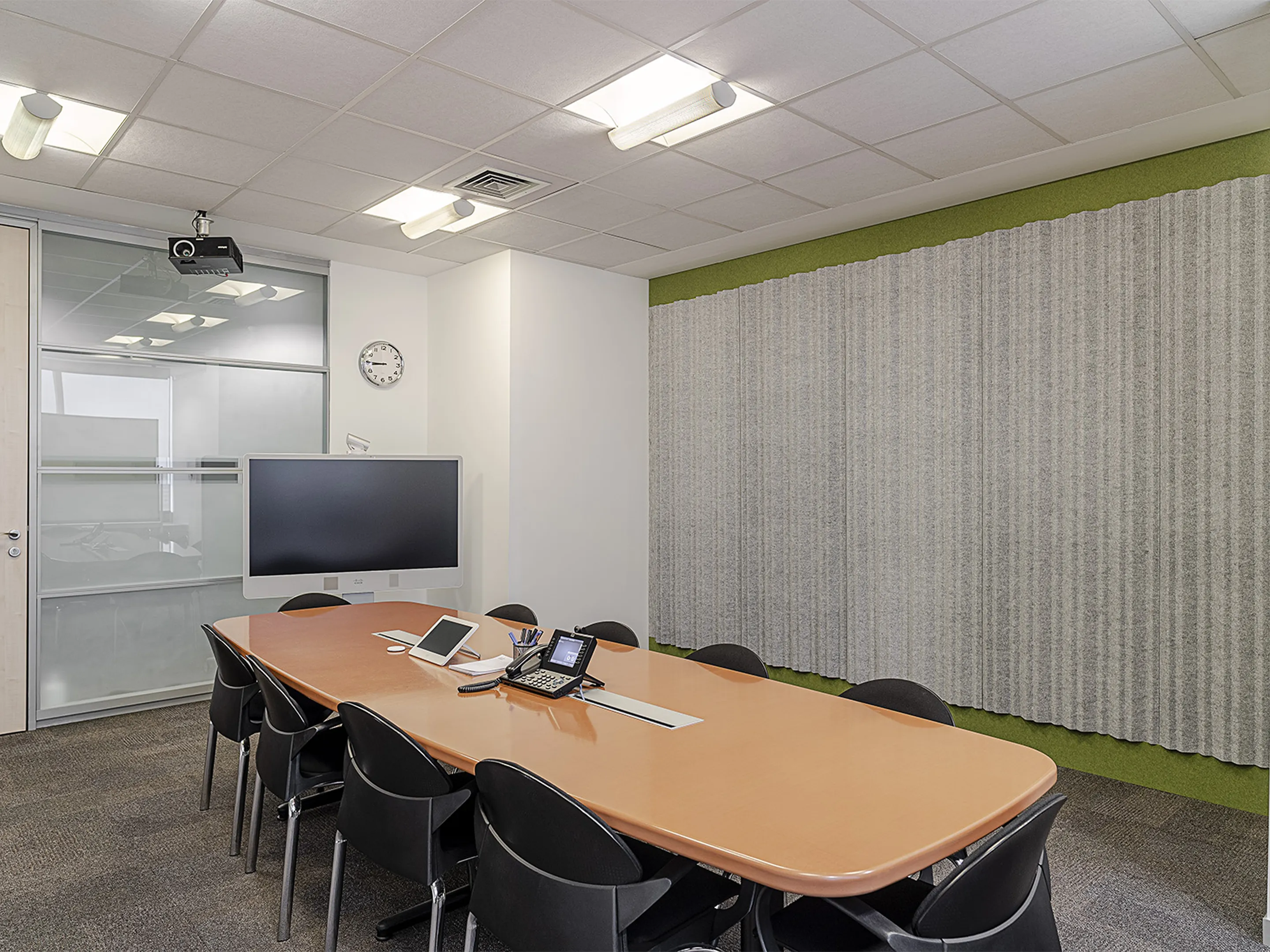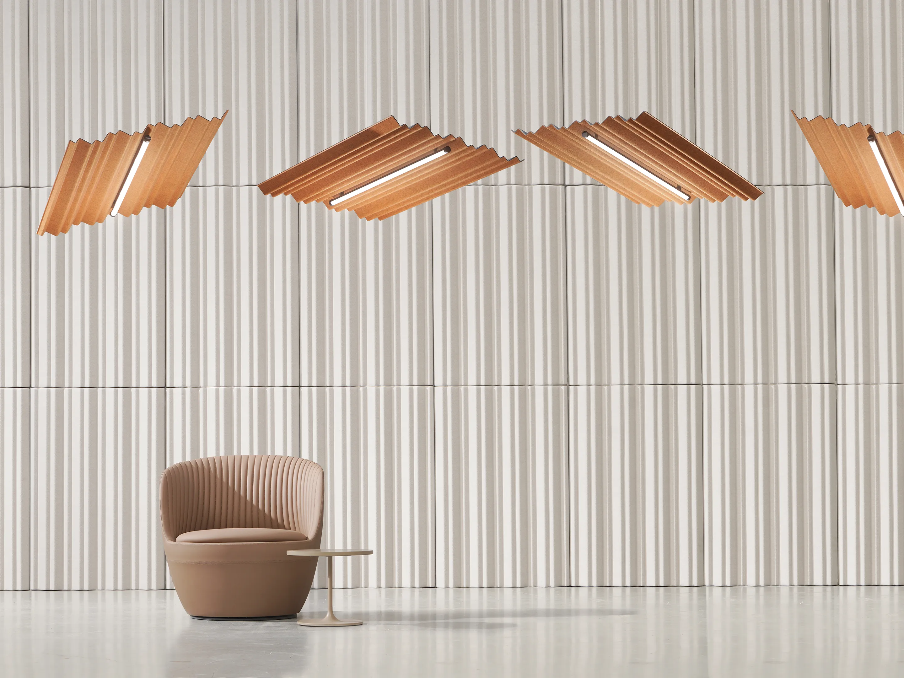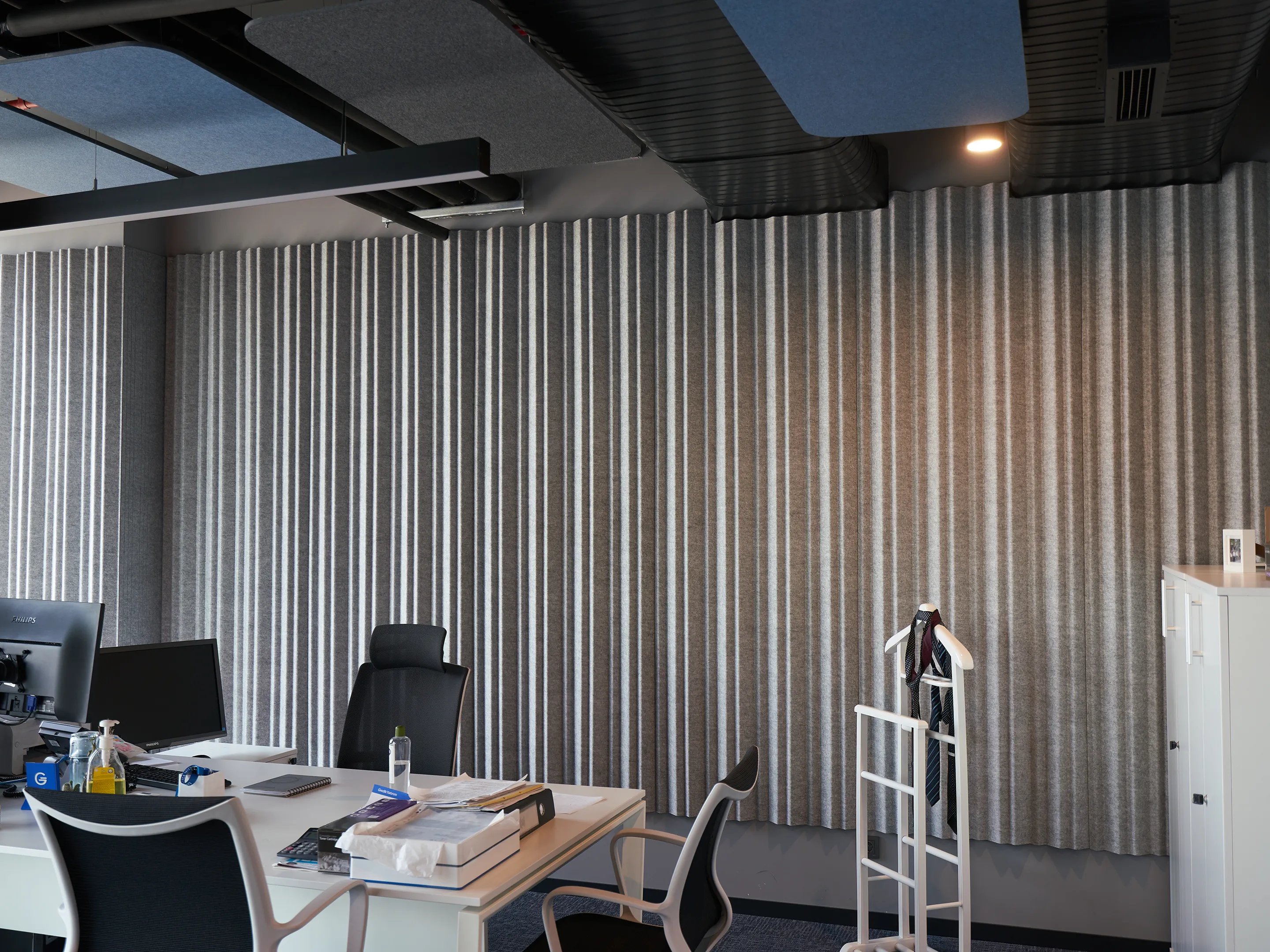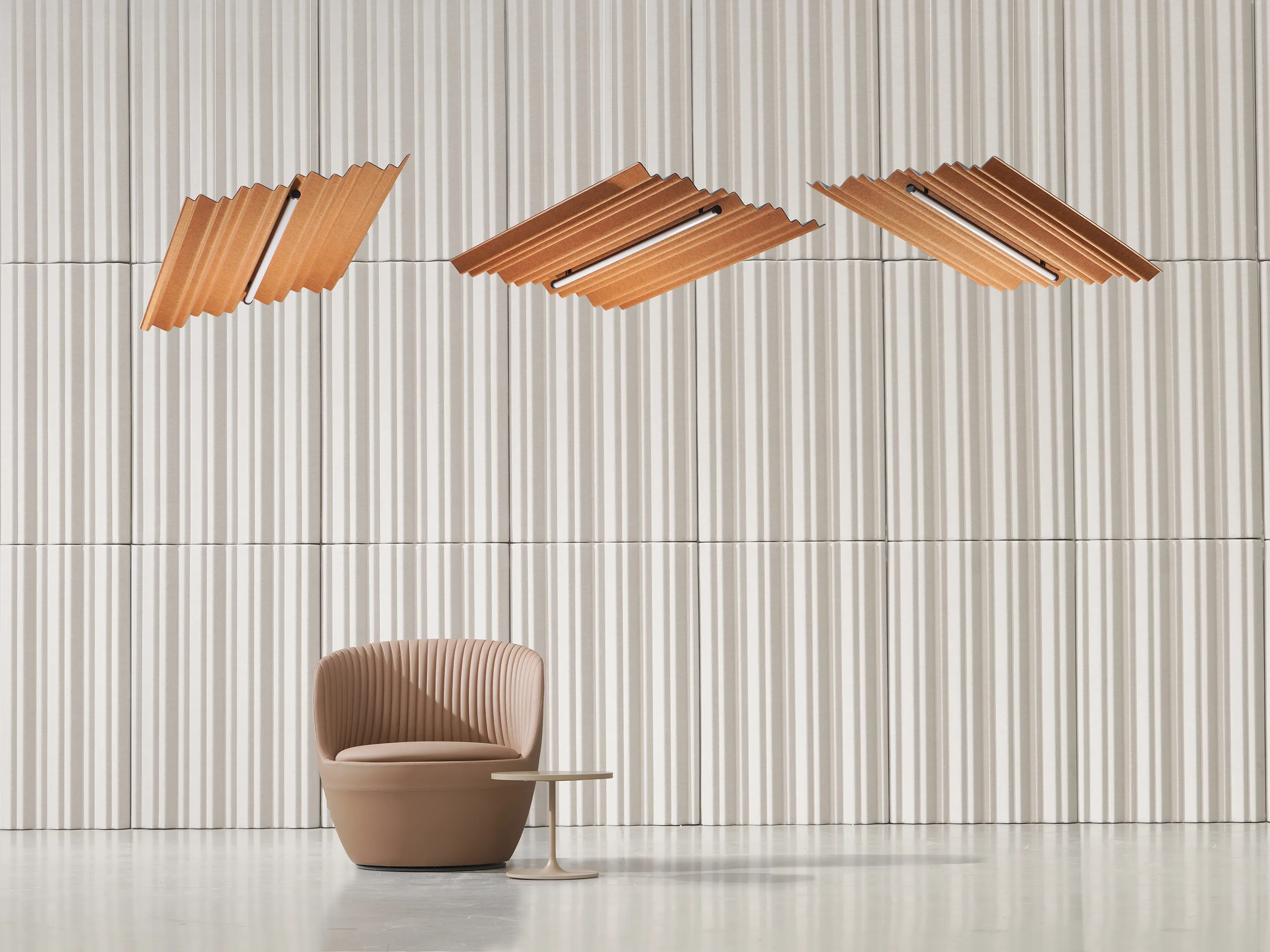 Rechthoekig en gerafeld akoestisch paneel zonder vlakke achterwand met een NRC Waarde van 0,55. Bevestiging d.m.v. klittenbandprofiel. Geschikt voor bevestiging aan een wand. Inclusief schroeven, pluggen en installatiehandleiding.