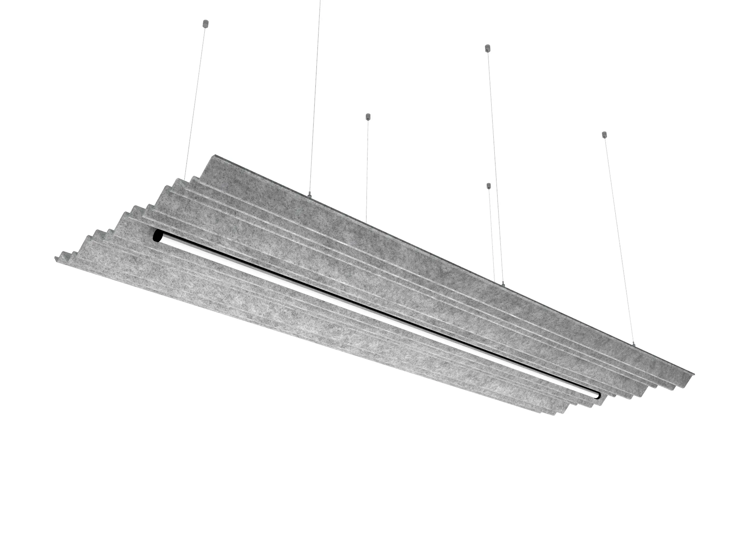 Rechthoekig en gerafeld akoestisch paneel zonder vlakke achterwand met een NRC Waarde van 0,55. Bevestiging d.m.v. magneetprofiel. Geschikt voor bevestiging aan een wand en plafond. Inclusief schroeven, pluggen en installatiehandleiding.