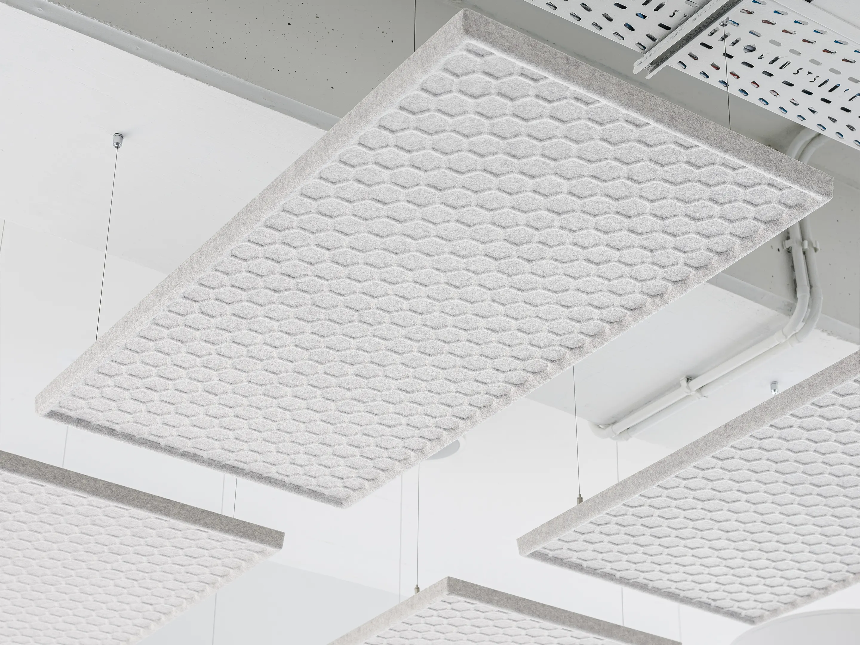 Rechthoekig akoestisch paneel met een honingraat patroon en een NRC Waarde van 0,60. Bevestiging d.m.v. magneetprofiel. Geschikt voor bevestiging aan een wand en plafond. Inclusief schroeven, pluggen en installatiehandleiding.