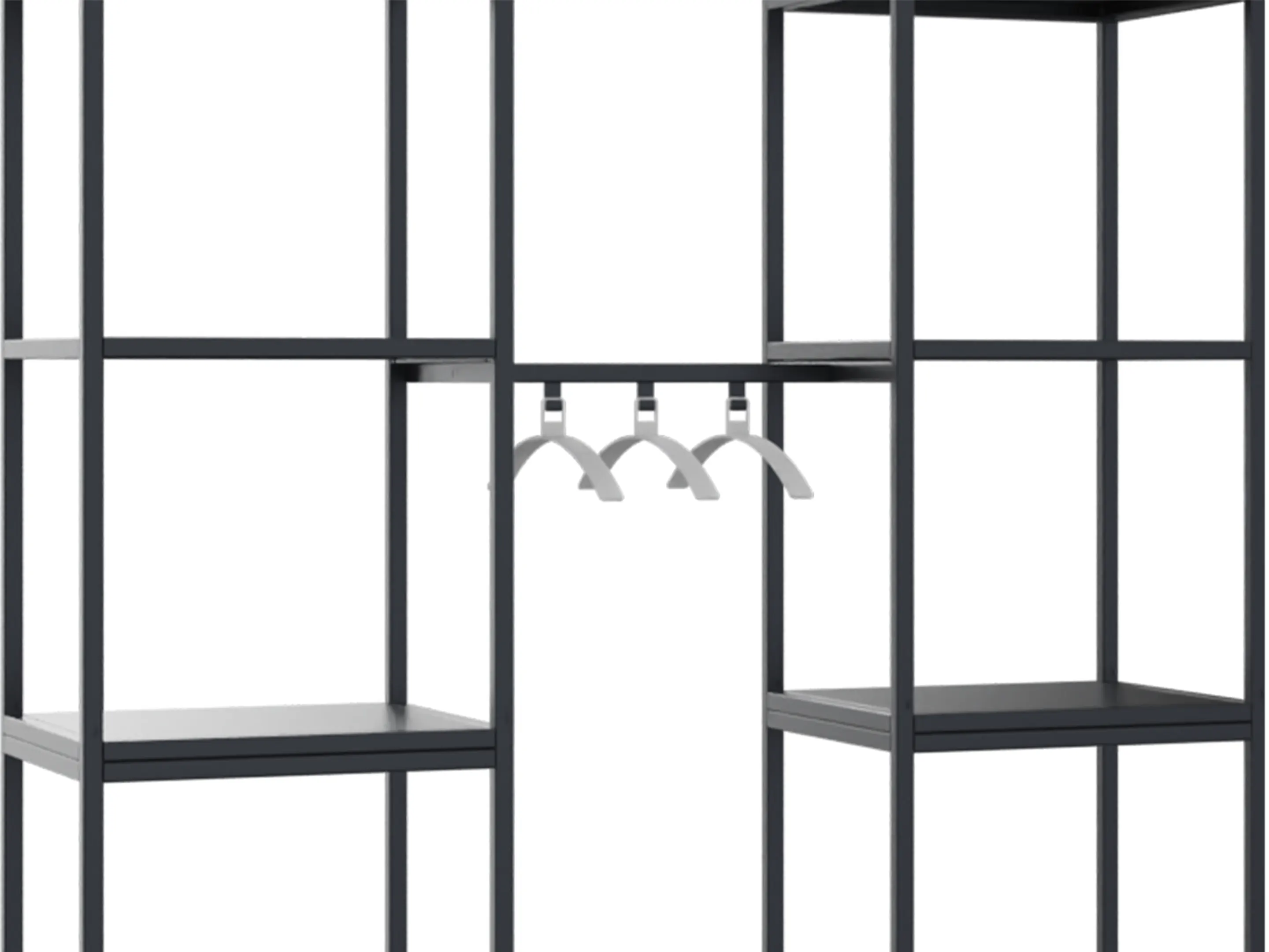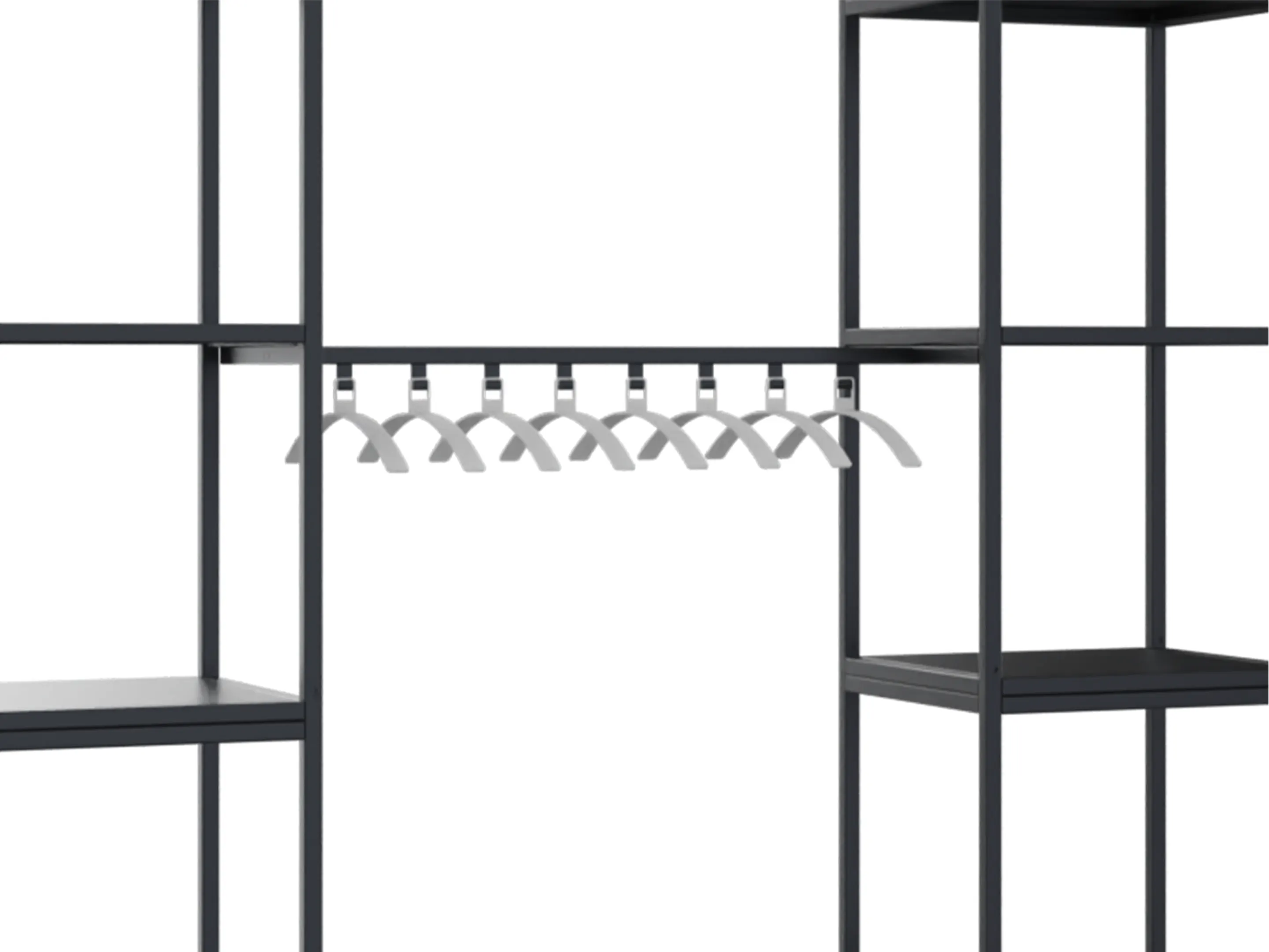 Incl 12 metalen hangers (zelfde kleur als het frame). Garderobestang wordt tussen twee FLEXWALL frames gemonteerd (niet in prijs inbegrepen)