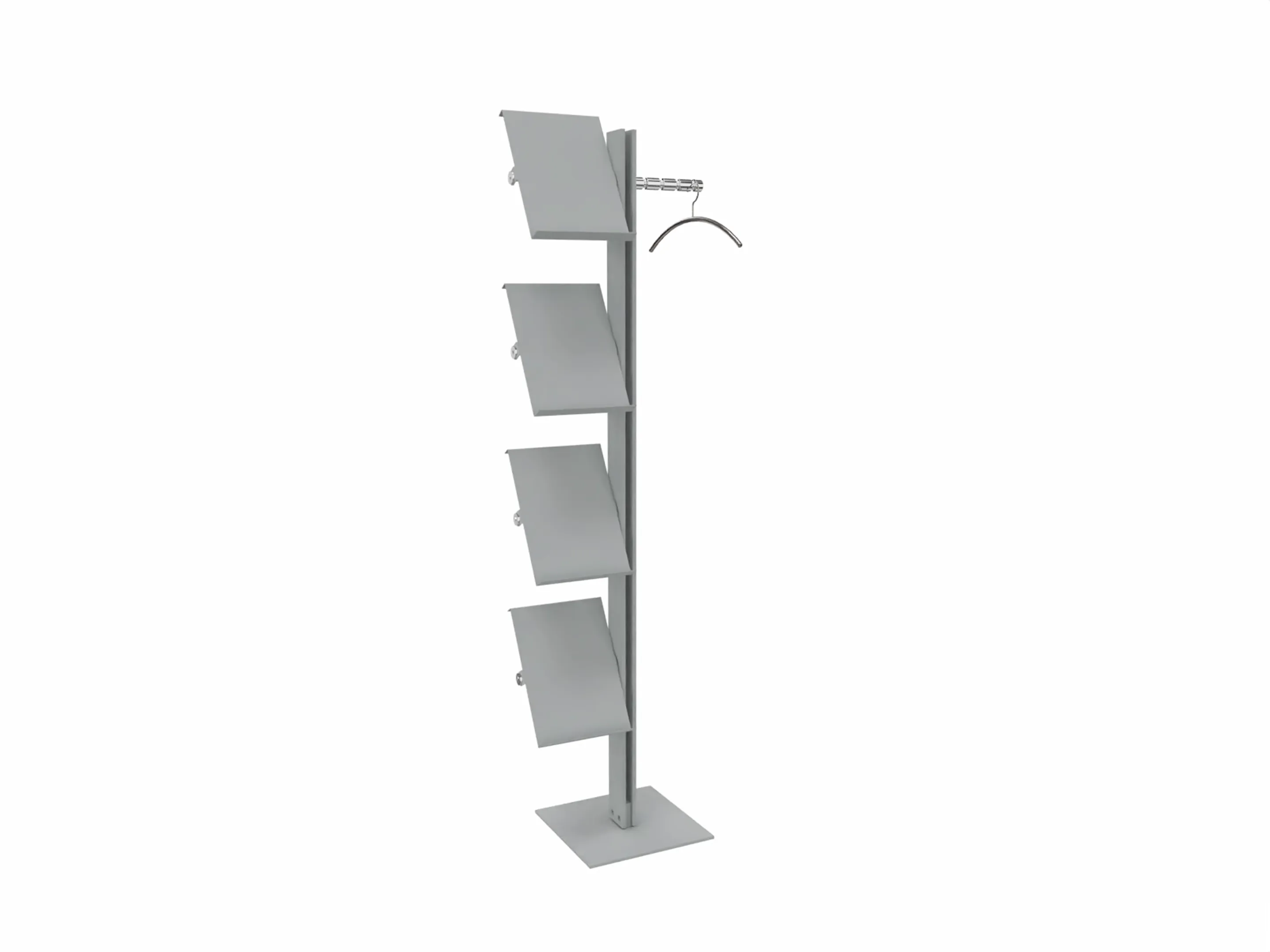 Staande brochurehouder met 4 kleine panelen. Afmeting: 300 x 1760 x 350mm (BxHxD)
