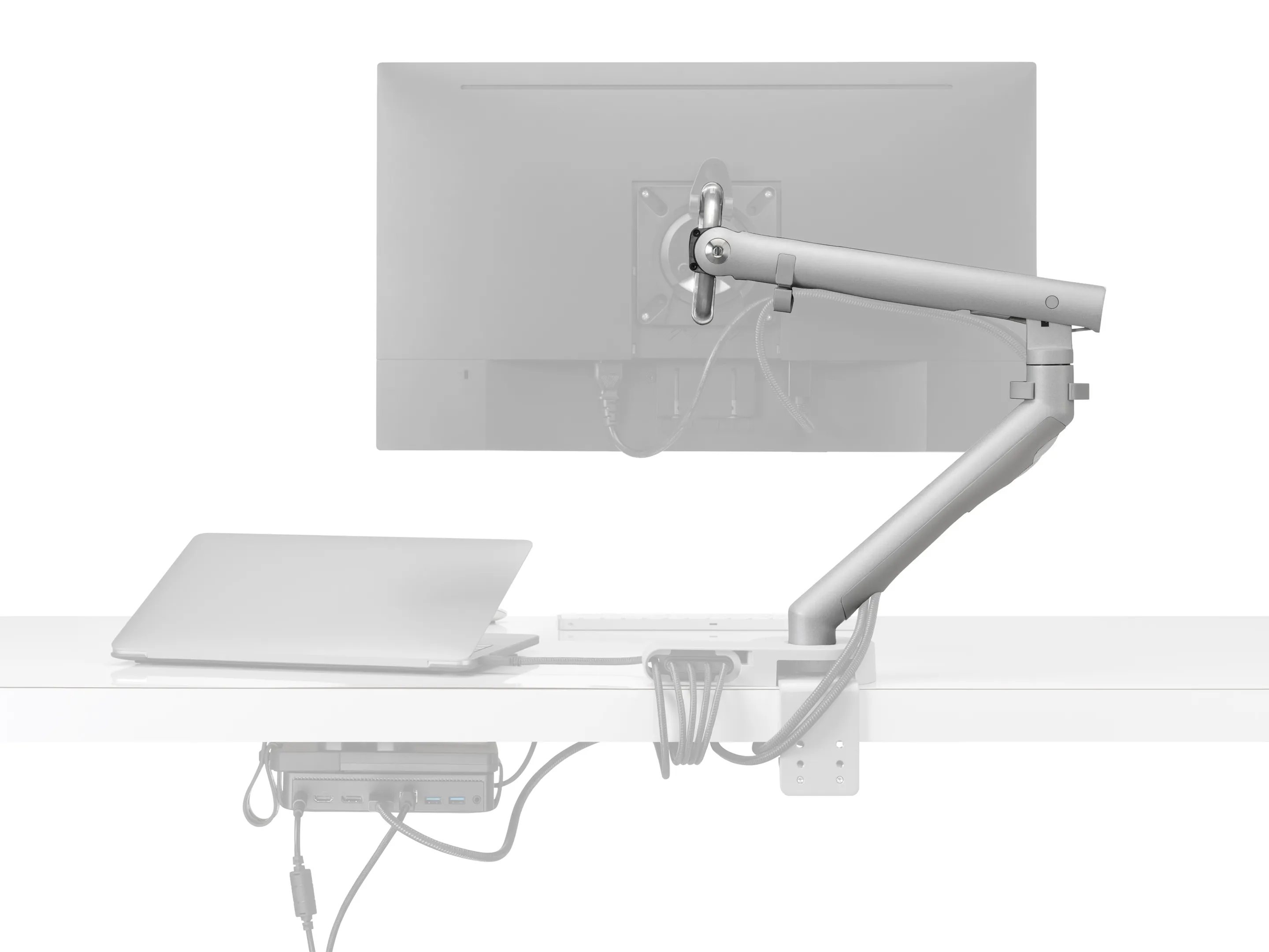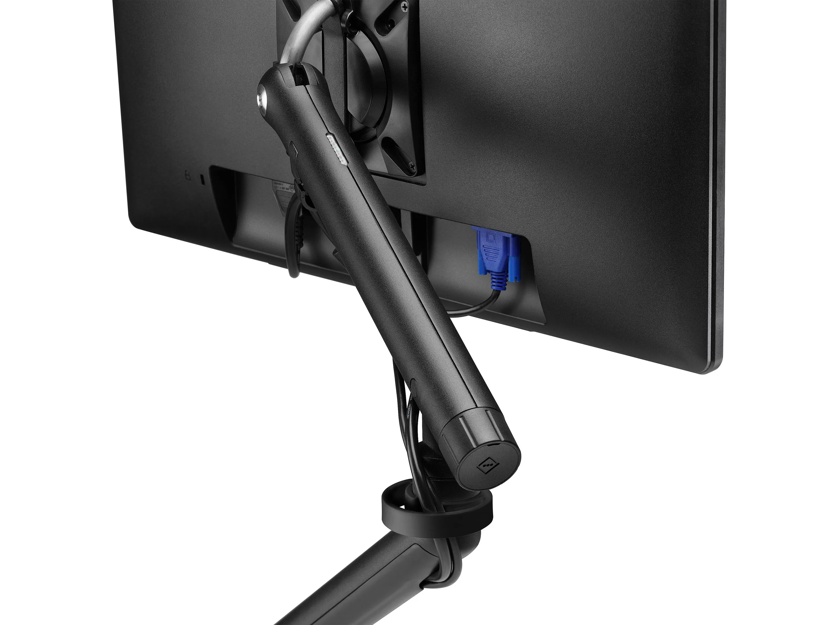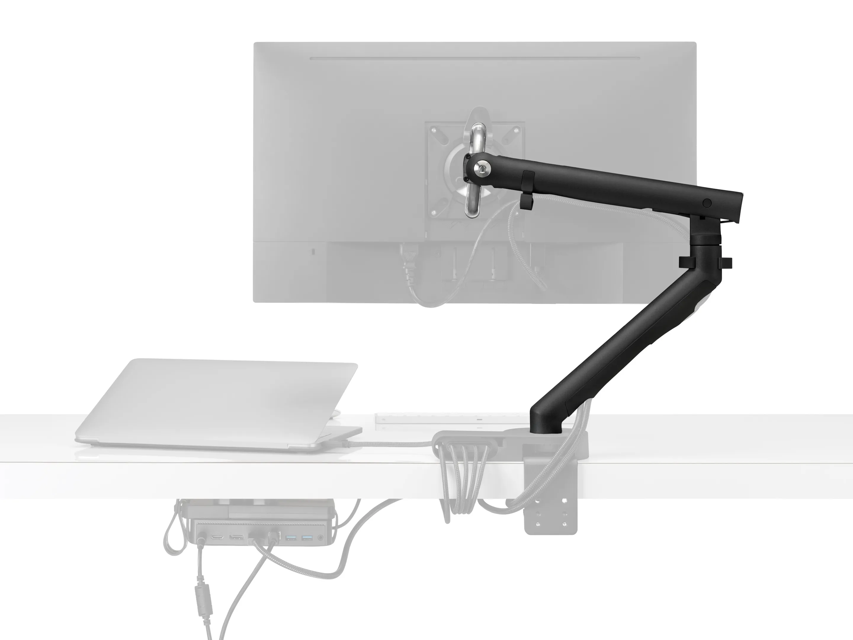 Gasveer gestuurde monitorarm, horizontaal bereik: 581mm, vertikaal bereik: 341mm, incl. kabelmanagement.